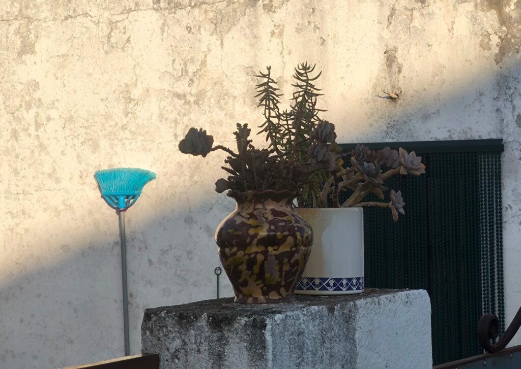 Hoy en día, eso solo tiene sentido en parte: Sí, todavía hay puestos de vendedores ambulantes de ropa y artículos para el hogar, como los que se ven por todas partes en los mercados semanales; sí, también hay algunos artesanos vendiendo sus productos artesanales, pero quizás fue el mal tiempo (Giselle trajo lluvia y ráfagas de viento), pero en cualquier caso, me cuesta imaginar que los puestos aquí realmente generen beneficios, cuando en la cercana Évora, en las grandes superficies está disponible a lo largo de todo el año todo lo que dicta la moda o las necesidades diarias.