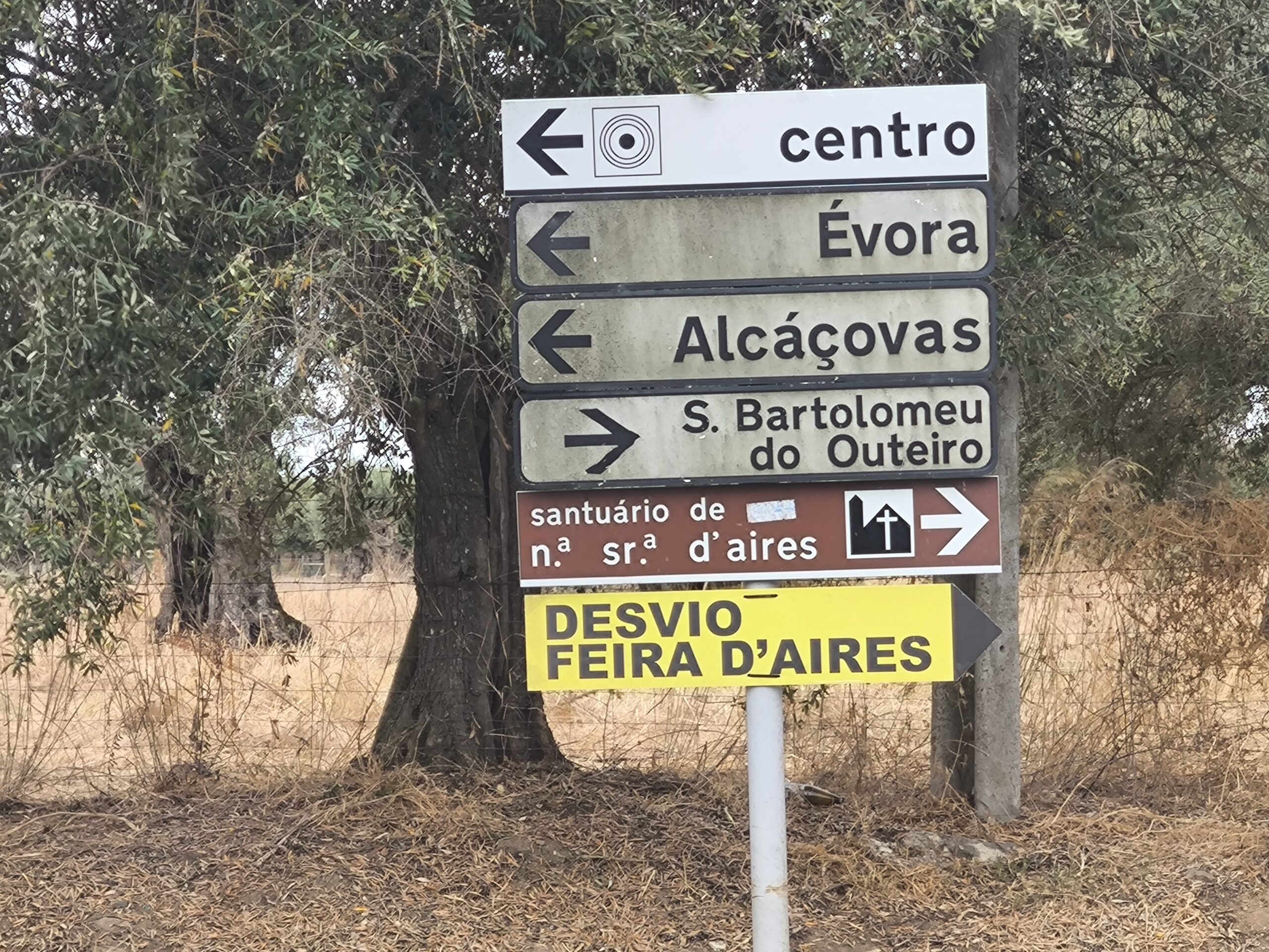 (de) Jedes letzte Wochenende im September findet um die Wallfahrtskirche de „Nossa Senhora d’Aires“ ein Jahrmarkt statt. Ursprünglich, in einer Welt ohne Social Media, ohne Internetportale, ohne Amazon, ohne Shopping Malls und Privatautos war es DAS Highlight und DIE Gelegenheit zum Ein- und zum Verkaufen von allem, was das Herz begehrt, von landwirtschaftlichen Maschinen bis zum Schlüpfer. Und natürlich auch zum Feiern, also, Essen, Trinken, Tanzen…..