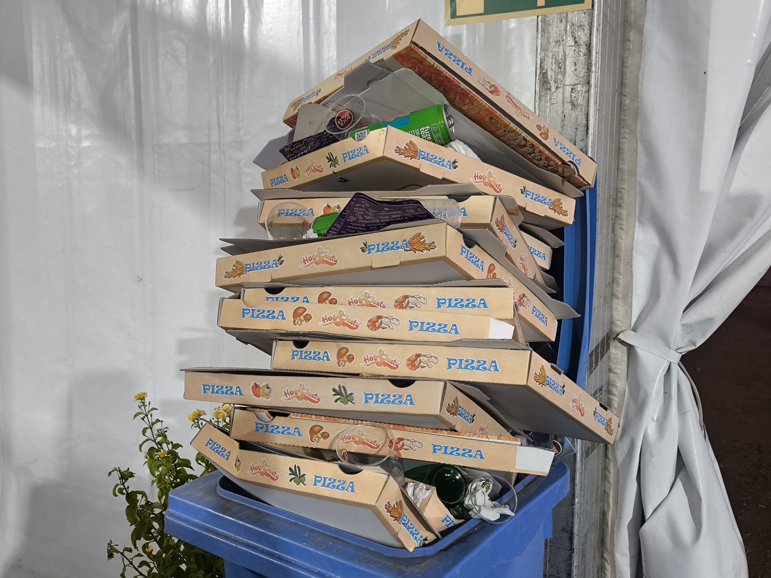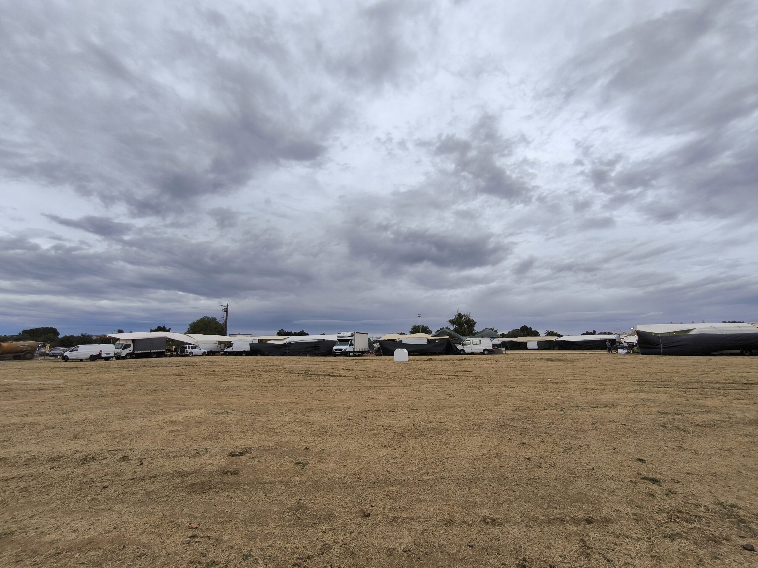 Casi agradecí el mal tiempo. Regresé en bicicleta al KUKUmobil antes del anochecer, es decir, antes de los grandes conciertos y la discoteca posterior (no habría querido hacerlo a oscuras porque ya me basta con lo que experimento en bici a plena luz de día). Y mientras preparaba la cena y me debatía si tomar el trenecito de vuelta al recinto ferial para al menos escuchar uno de los conciertos, el viento se hacía cada vez más presente, el tiempo más húmedo y el KUKUmobil más acogedor, y el ruido que el viento traía del recinto del festival al parque no me tentaba lo suficiente como para recomponerme, así que me consolé con lo que había visto y lo que me esperaba al día siguiente.