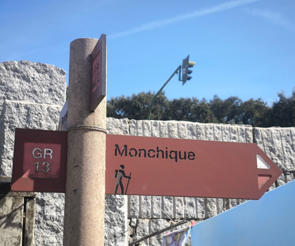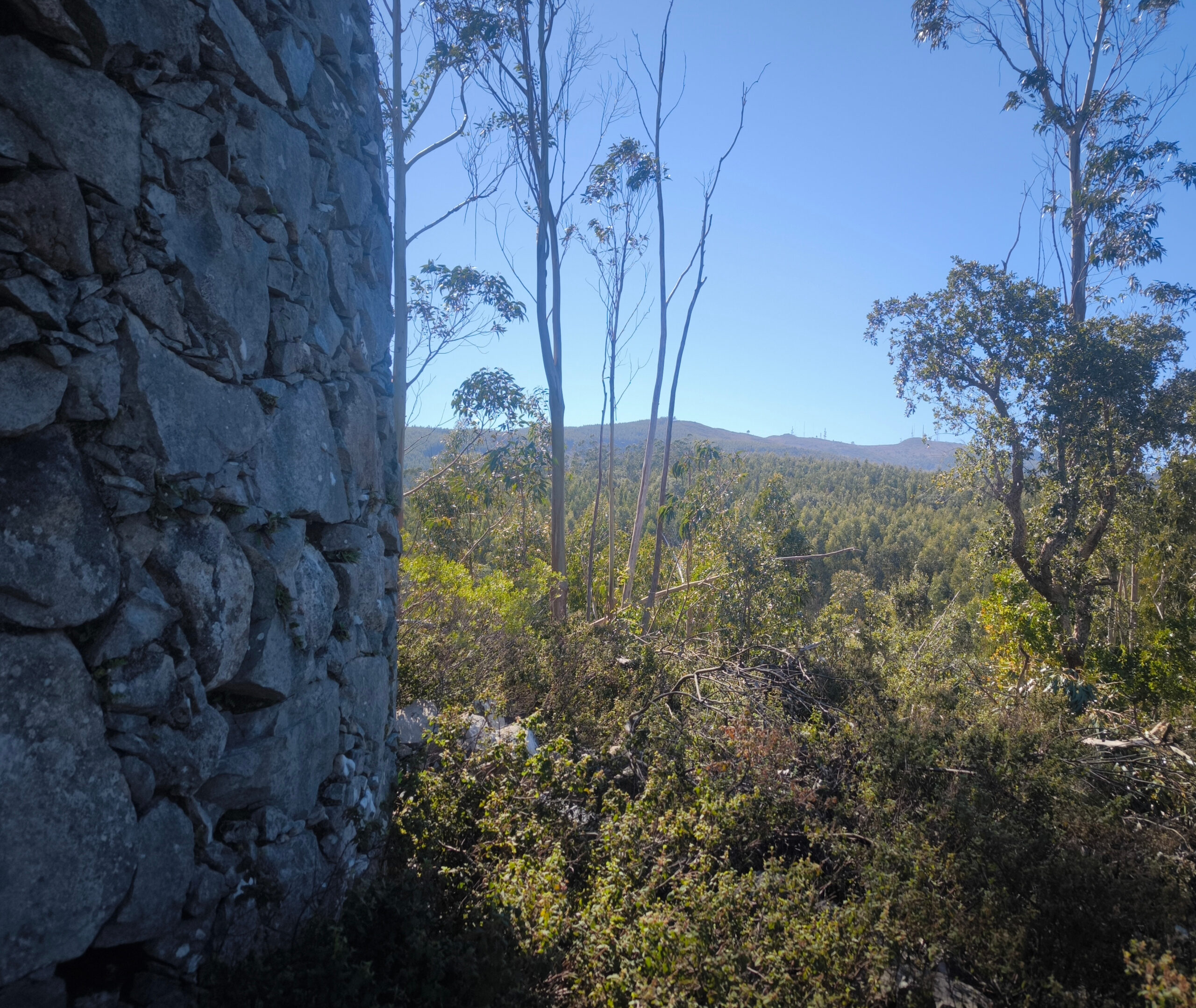 (es) Una de las numerosas rutas de senderismo que parten de Monchique, o al menos pasan por allí, se llama la ruta de los molinos. Su destino: el molino de agua restaurado «Poucochinho», en la Ribeira de Seixe. De hecho, una de mis primeras excursiones me llevó hasta allí. De paso descubrí de lejos en una colina unas ruinas que parecían un antiguo molino de viento. Al principio estaba convencida de que el camino que seguía pasaría por allí. Pero no fue así. No encontré ningún acceso evidente.