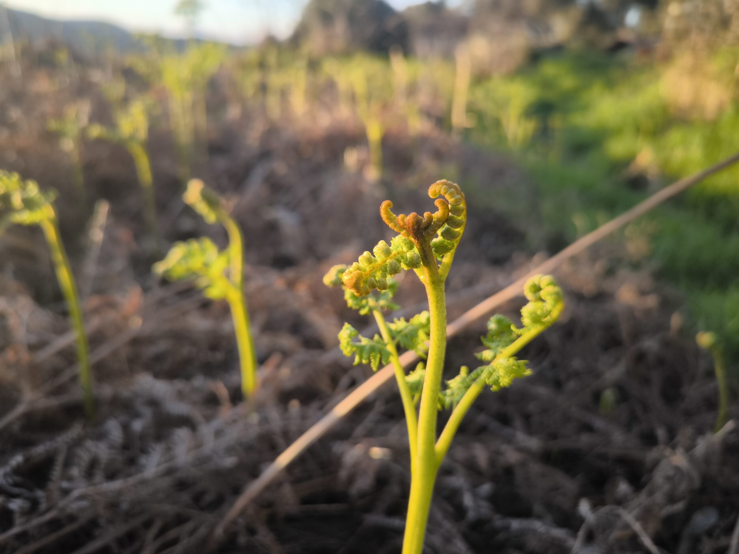 (es) En varios puntos de nuestra ruta, pudimos observar los esfuerzos de reforestación realizados tras los incendios forestales de los ultimos años. En los terrenos públicos, se está intentando sustituir los eucaliptos por bosque mixto nativo. Esta es una iniciativa muy loable; sin embargo, dado que las áreas más extensas son de propiedad privada, un cambio real solo será posible si la población local también modifica su relación con el bosque y se adapta a las exigencias del cambio climático en el futuro.