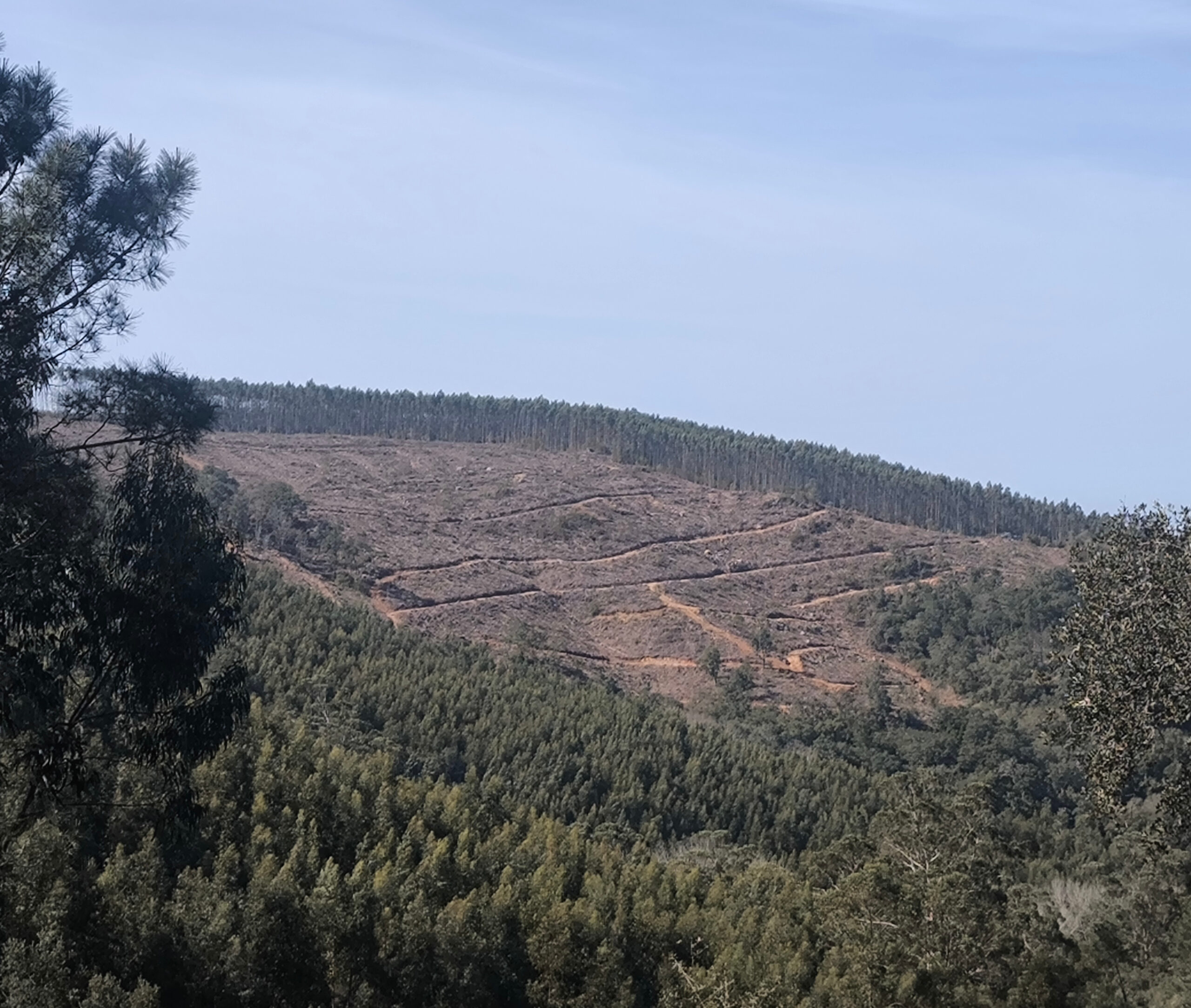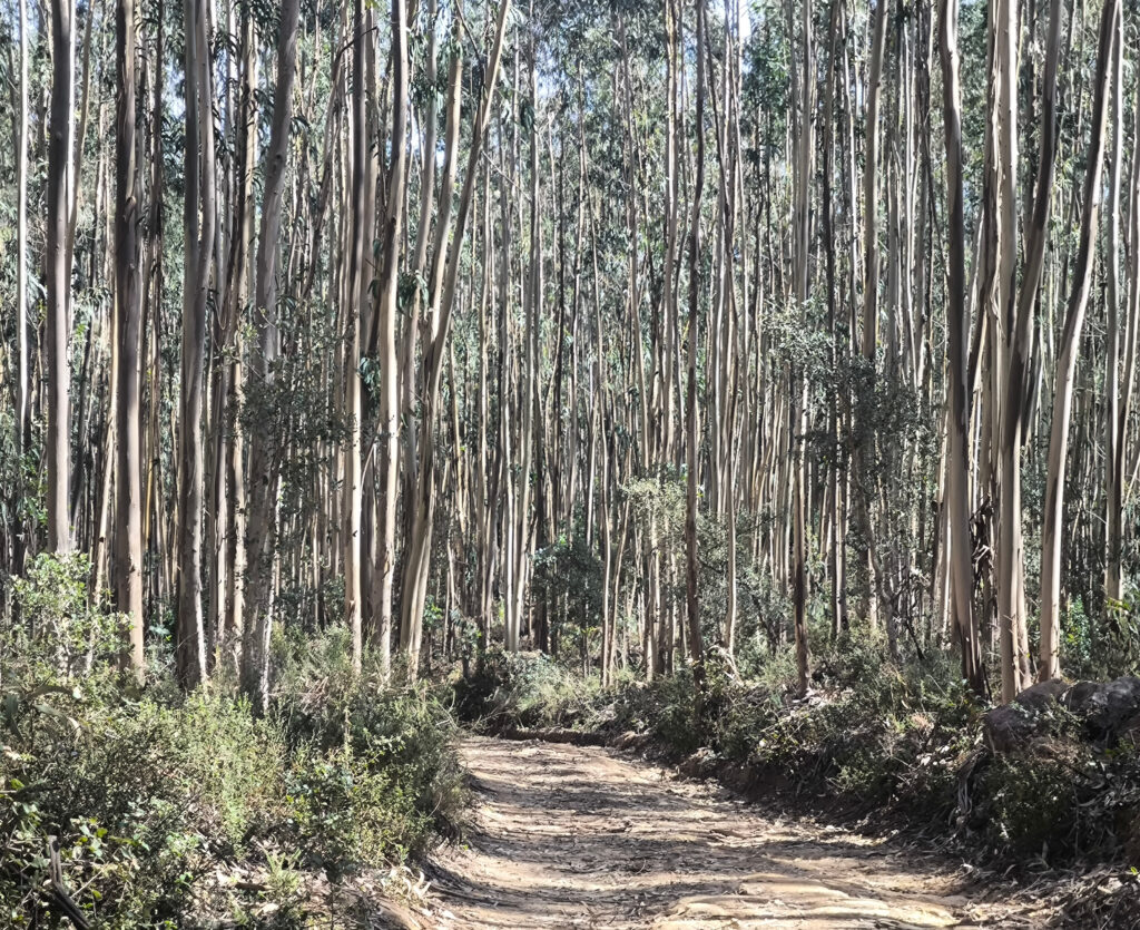 (de) Vorweg: Ich BIN hoch gekommen. Wahrscheinlich war das, was ich als meinen Weg auserkoren habe letztendlich nur ein Wildschweintrampelpfad. Und er hat mich durch eine Art von Eukalyptuswald geführt, der eins der großen Waldbrand-Probleme darstellt, nämlich jene Wälder die nicht gepflegt, die nicht sauber gehalten werden….