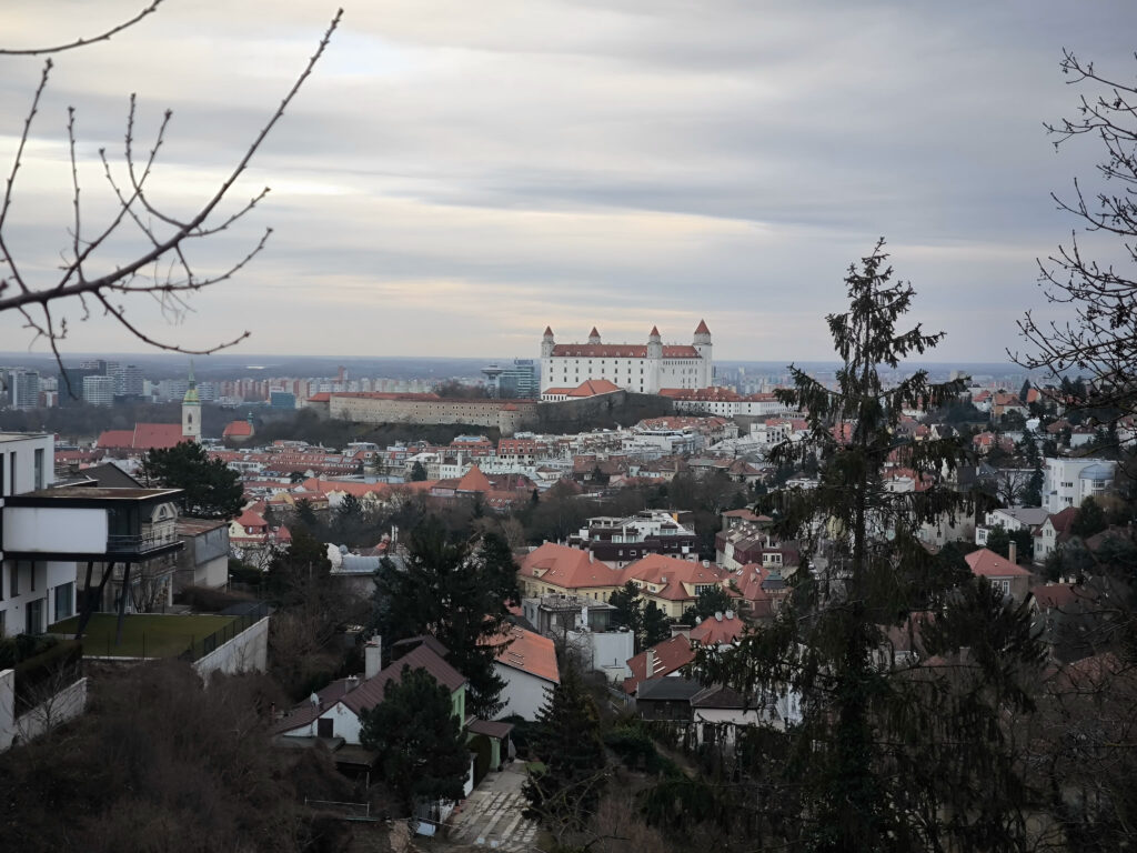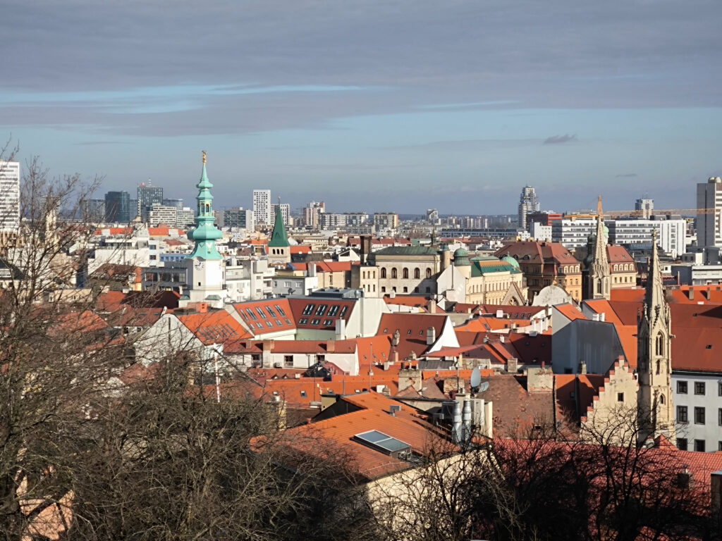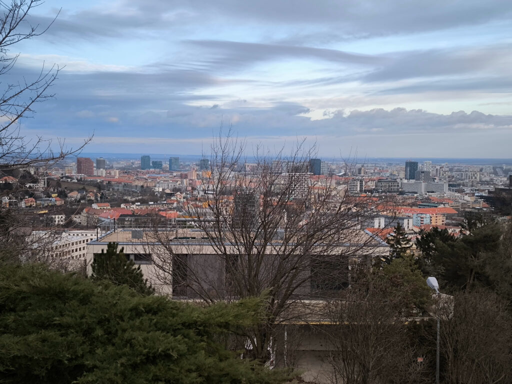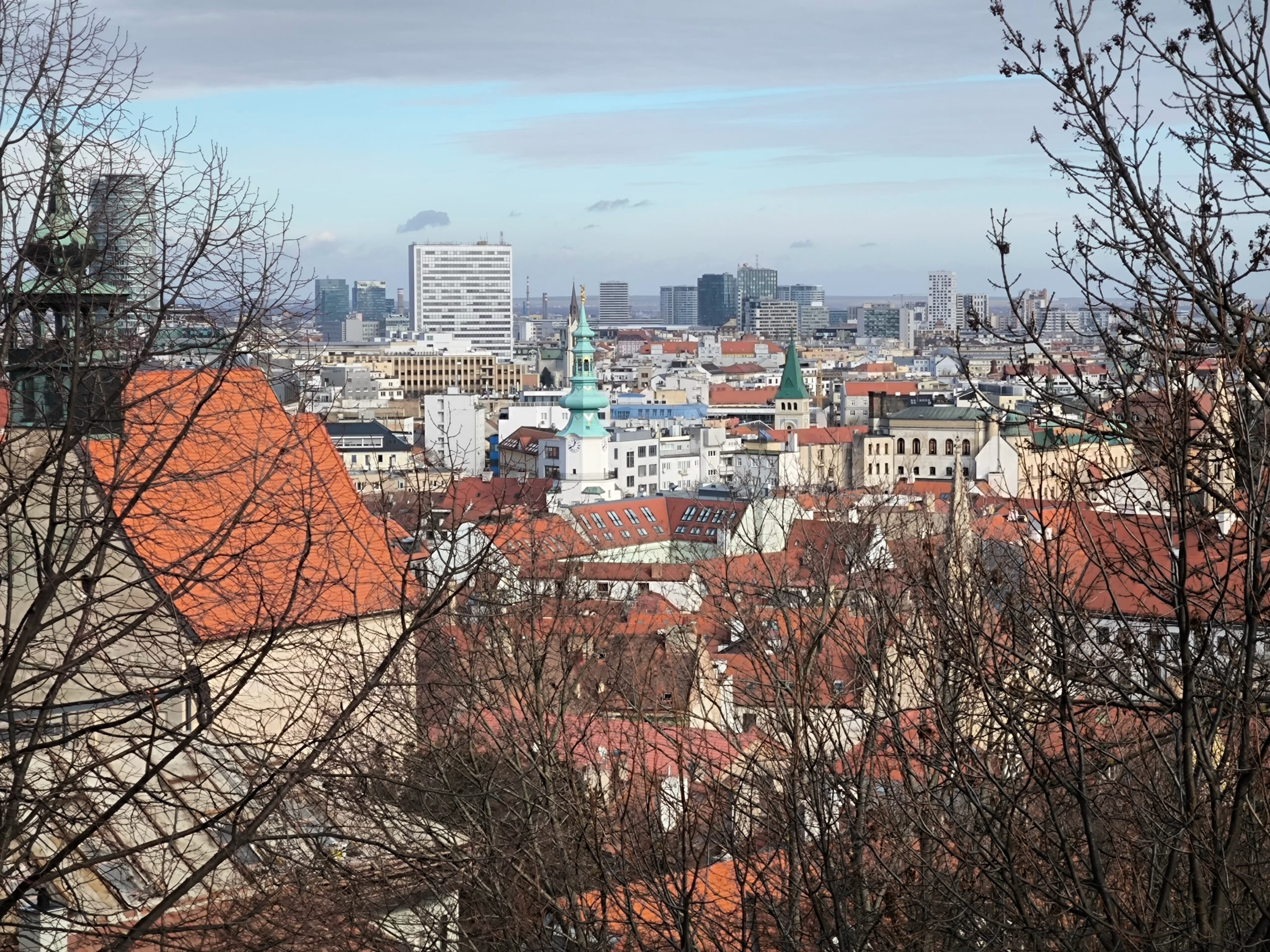 Im Hintergrund der Fernsehturm und die Anfänge der Kleinen Karpaten, meinem Wanderziel am Sonntag.