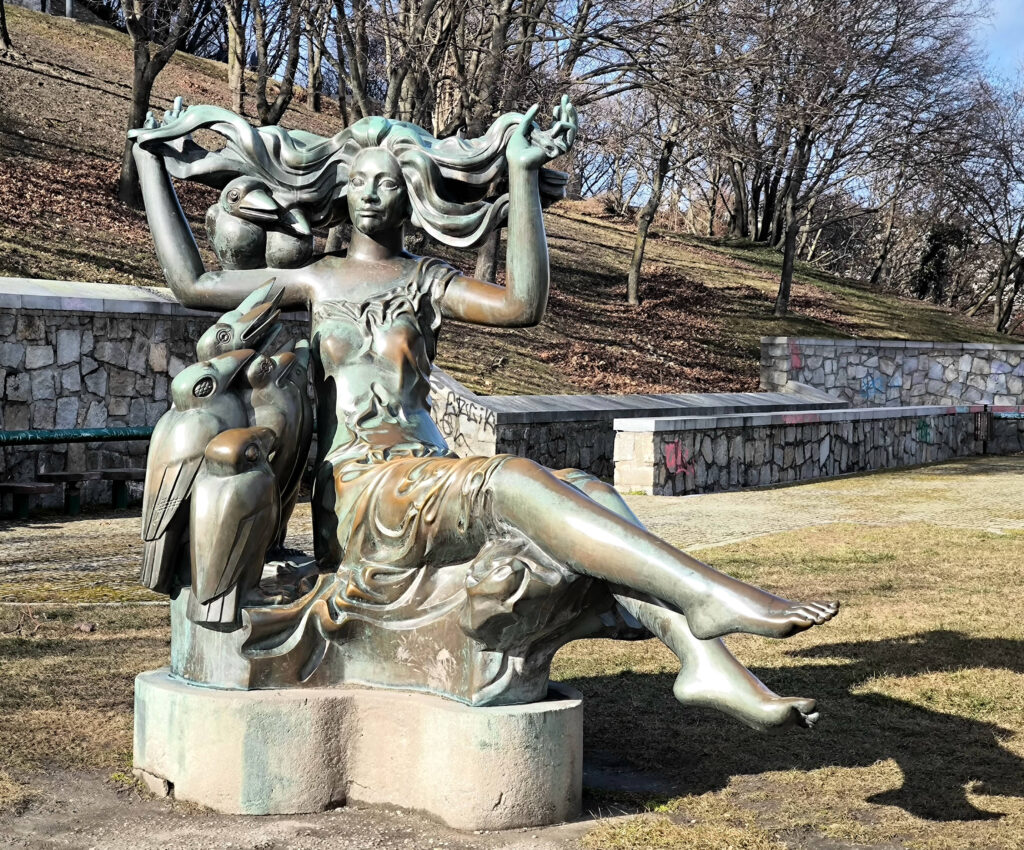 Slowakische Hexe Bosorka – allegorische Bronzeskulptur, geschaffen im Jahre 1989 von Tibor Bartfay