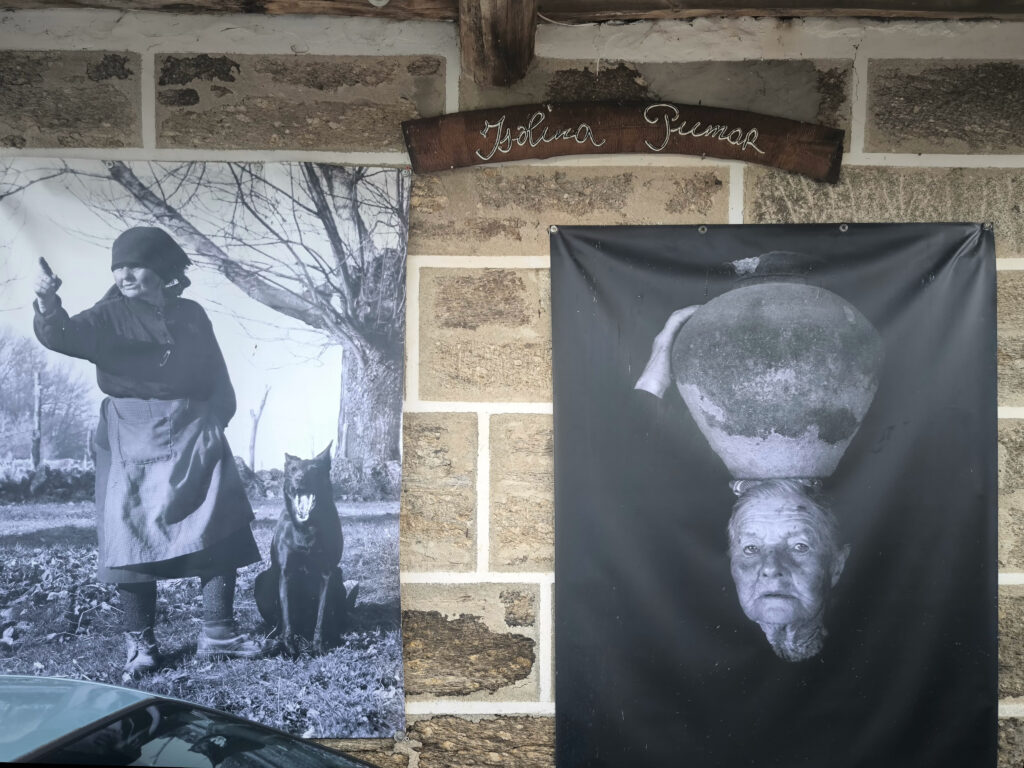 (es) Y ya que hablamos de mujeres: en Vidueira, un pueblo pequeño camino de Xunqueira a Lugo, nos paramos porque una casa pintada de turquesa despertó nuestra curiosidad. En su fachada había unas cuantas ampliaciones de fotografías de mujeres…
