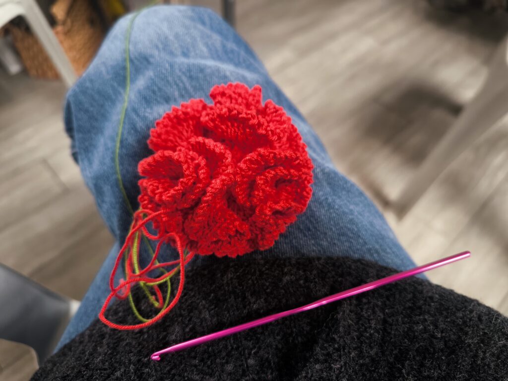 Fue muy bonito ver cada vez más claveles en chaquetas, jerseys, bolsos, como collares, pendientes y cintas para el pelo muchos días antes de la fiesta en sí. Y muchos de ellos hechos a ganchillo.