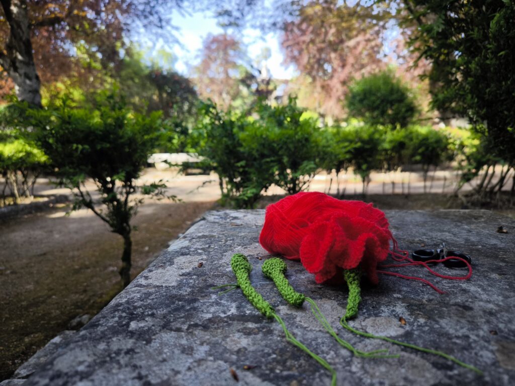 (es) Hice 12, 9 claveles de ganchillo en las dos semanas anteriores al 25 de abril. 3 claveles después para gastar el ovillo de lana que había empezado, porque el próximo 25 de abril seguro que llega, y si, aún quedan muchos claveles por florecer.