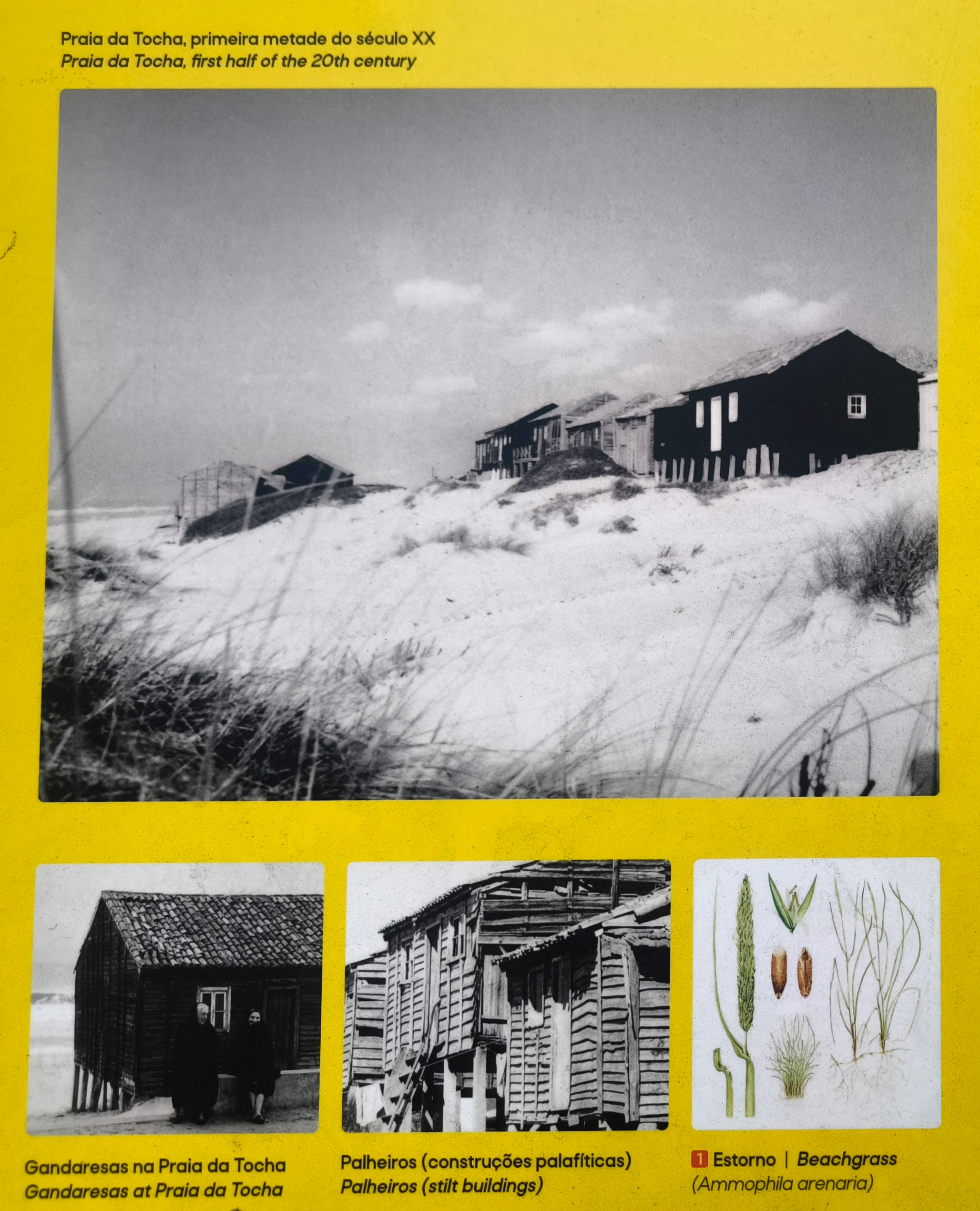 Antes había muchos „palheiros“, casitas de pescadores de madera sobre „zancos“ que se parecen un poco al KUKUmobil. En aquella época, se construían sobre pilotes no tanto por las posibles mareas altas o temporales, sino para evitar que la arena que debido al viento estaba en constante movimiento, «inundara» la casa.