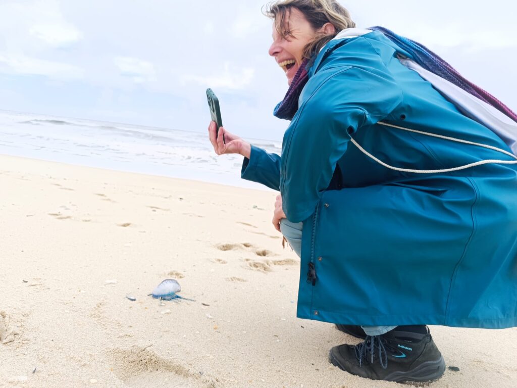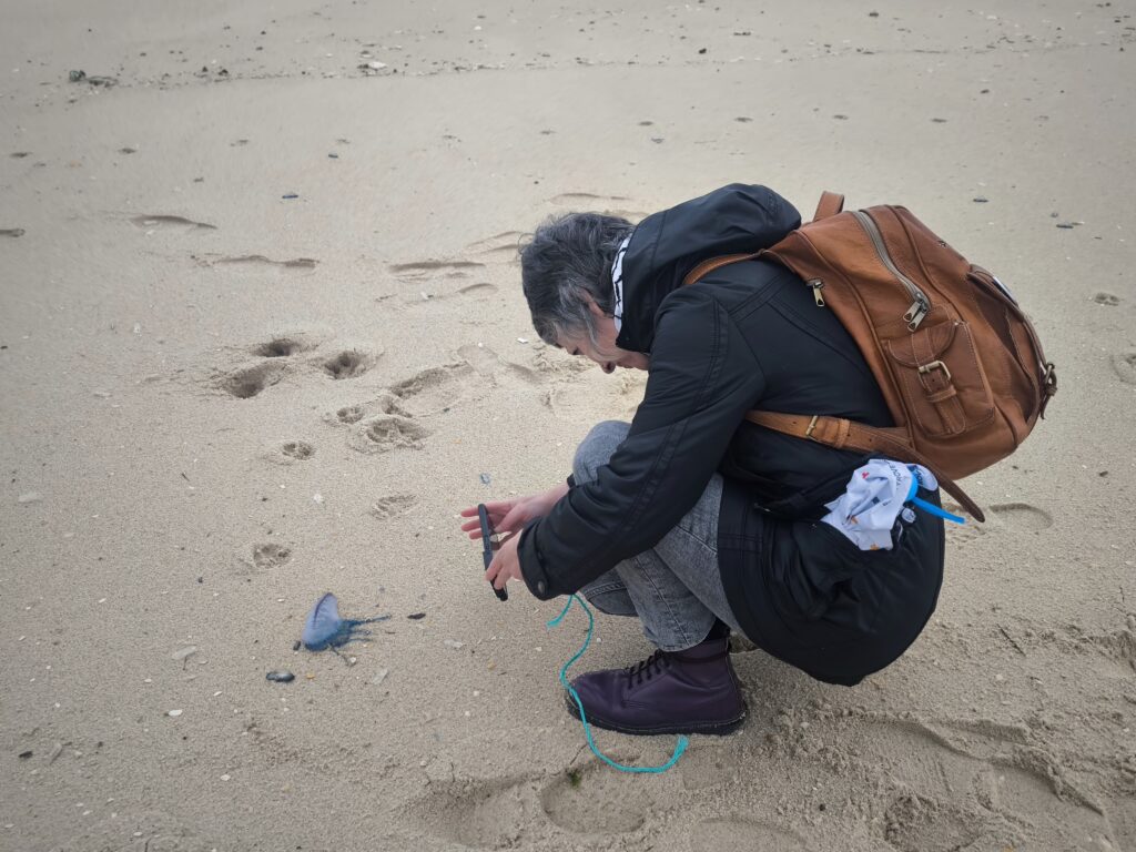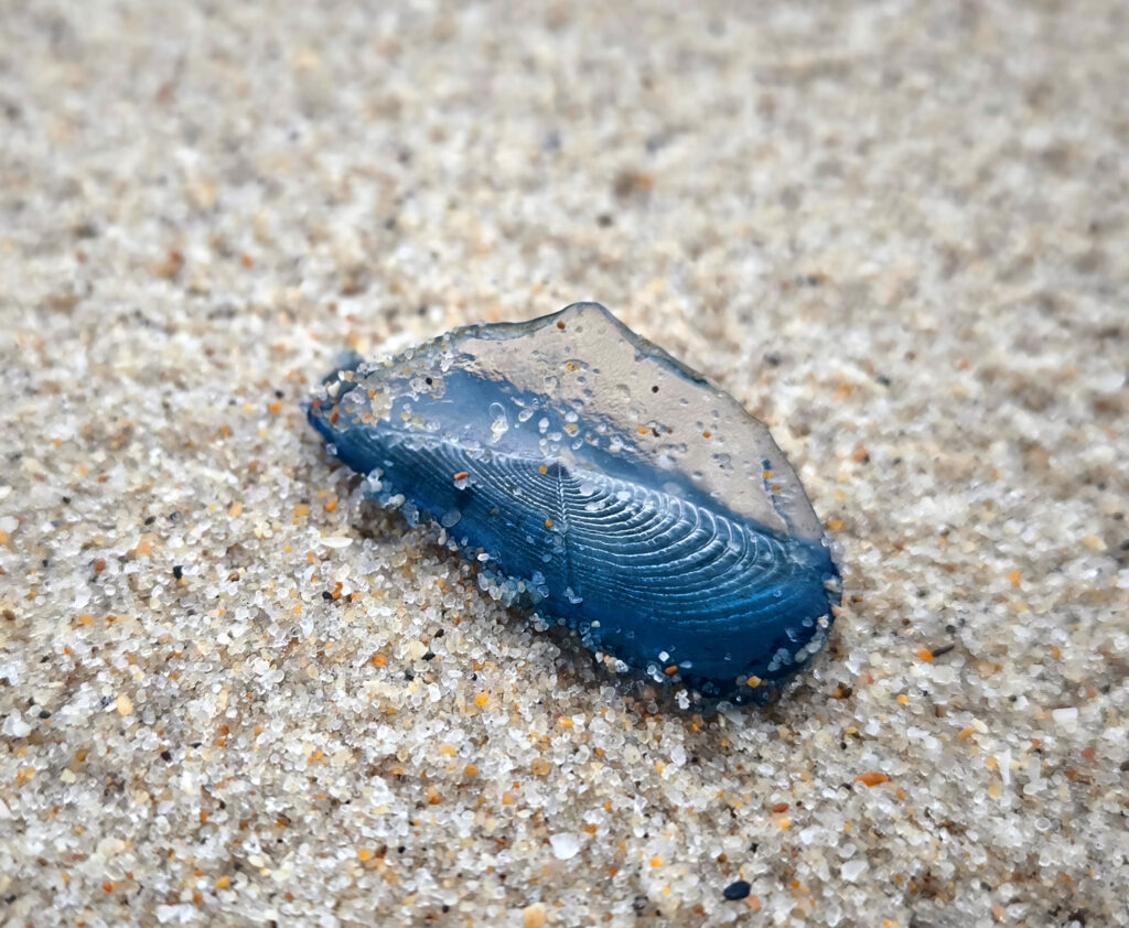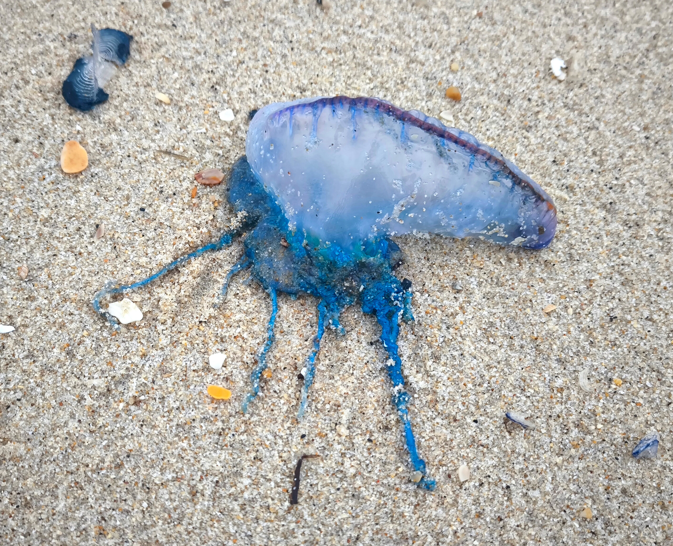 (de) Wir beschränkten uns darauf, Fotos zu machen. Eine Frage des Platzes, eine Frage des Gewichts. Und eine Frage dessen, was wir gefunden haben: mein erster portugiesische Galeere, so gefährlich sie auch ist, an sich ist sie wunderschön. Die Segelquallen, ein Walknochen….. kurz gesagt…