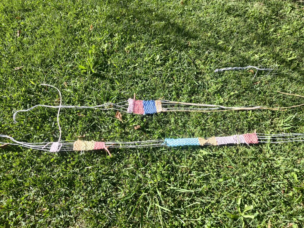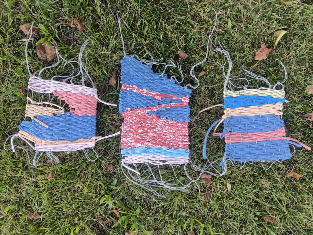 So ist es geschehen.Vorsichtig, denn die Webstücke sind fragil und ich weiss nicht, was mit ihnen geschehen soll. Daher habe ich mich bemüht, ihre Auflösung zu verhindern und bin sehr gespannt, wie es mit ihnen weitergehen wird. Was ich tun konnte ist, sie im Bild festzuhalten: