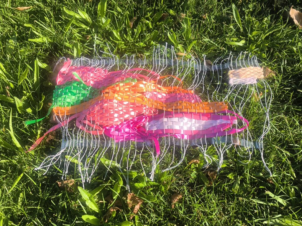 (de) Wie versprochen, habe ich die Webereien von den Bäumen genommen, nachdem wir sie mit den Schulkindern begonnen und den Parkbesuchern abgeschlossen haben. Vielleicht hätten sie noch ein paar Wochen ausgehalten, vielleicht sogar einen Winter. Aber ich persönlich mag es nicht, wenn solche Interventionen im öffentlichen Raum nicht betreut werden, und diese Betreuung kann ich nur solange garantieren, wie das KUKUmobil in Viana ist. Daher schien es mir sinnvoll, einen konkreten Tag für die Abnahme anzusetzen.