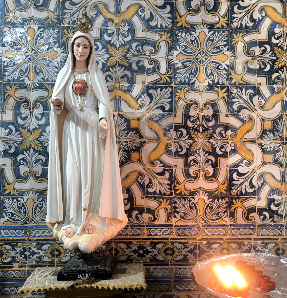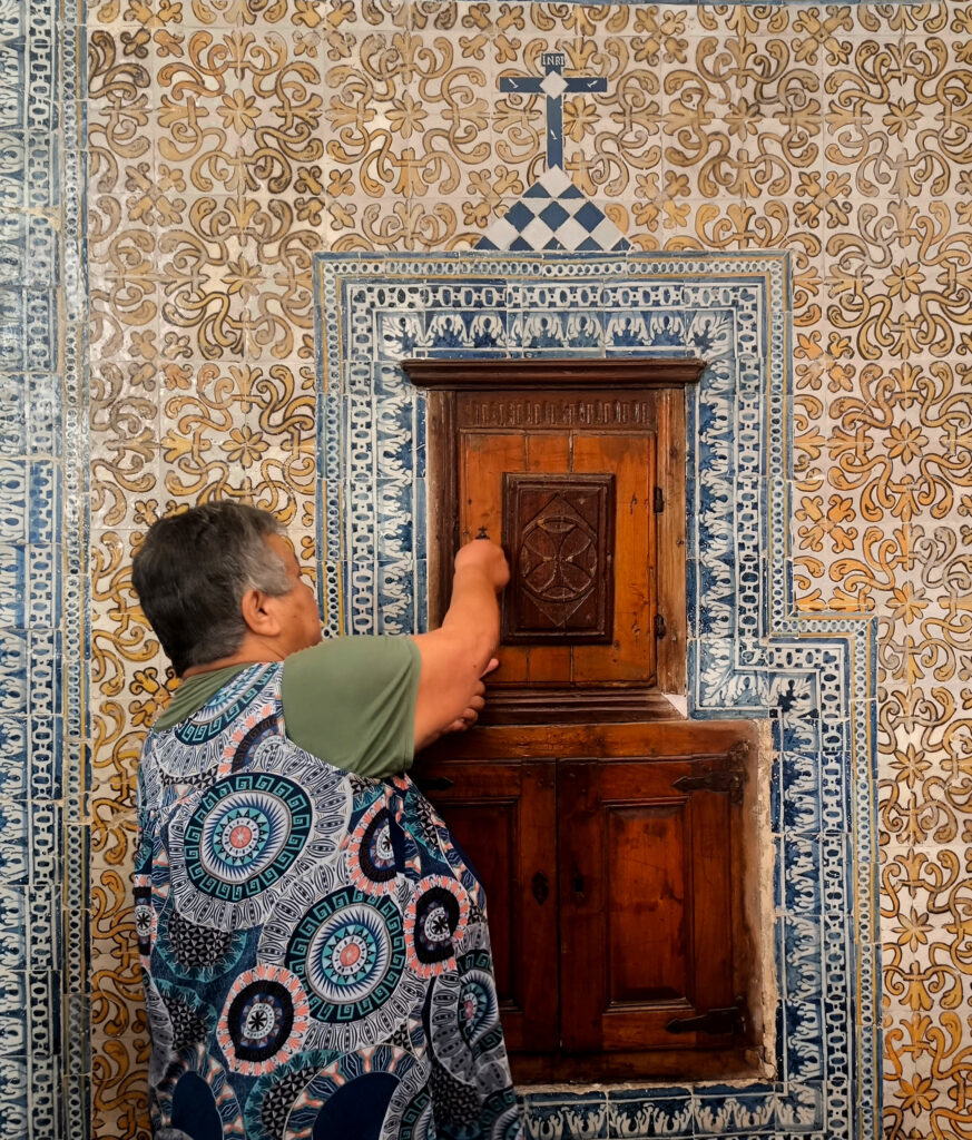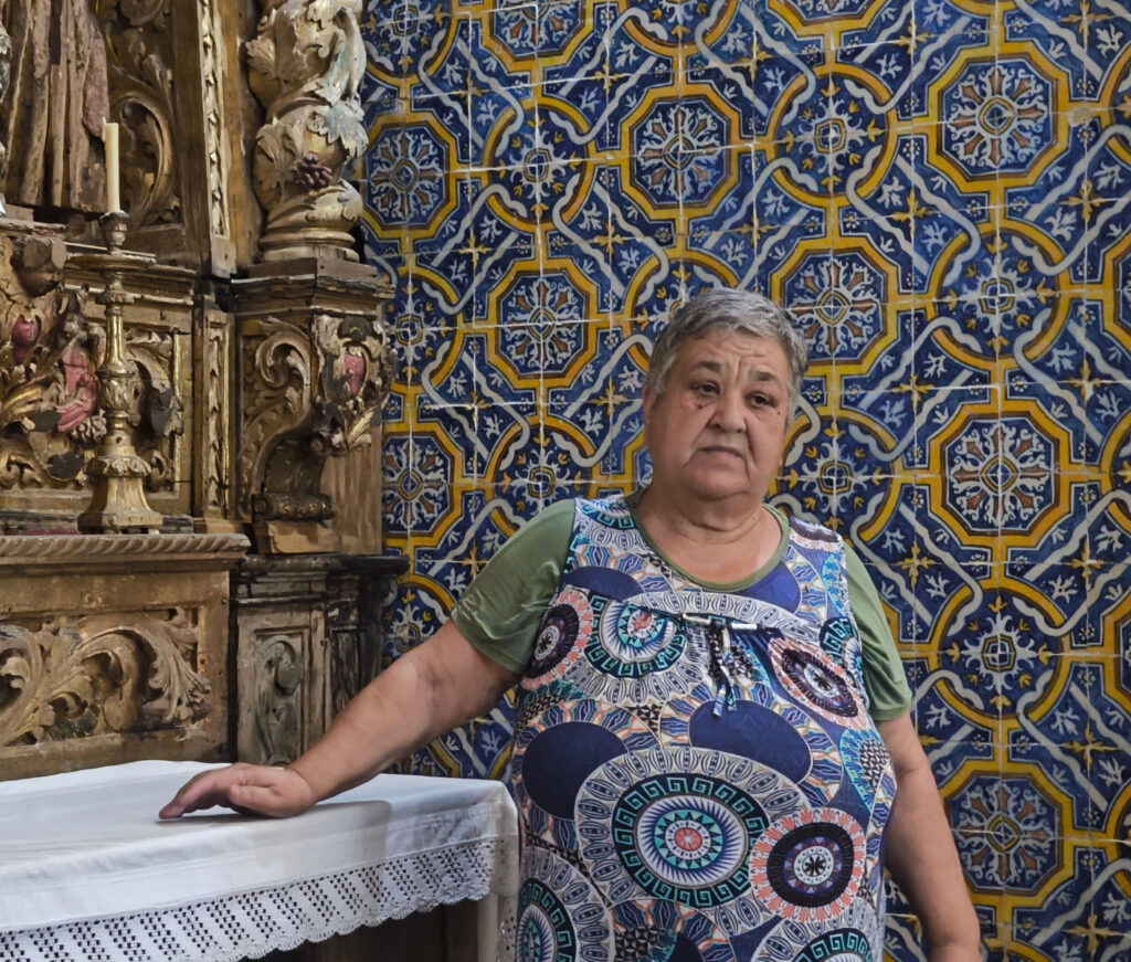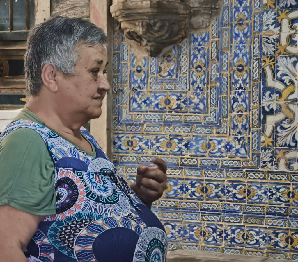 Doña Amalia führt Besucher:innen ehrenamtlich durch die Kirche von Alvito und tut dies auf eine ganz eigene, wie ich finde sehr authentische und jedenfalls unterhaltsame Art und Weise. Sie scheint jeden Stein und jede Kachel dieser Kirche zu kennen und nicht nur das, wenn man sie fragt, dann ist sie mit ihren etwas über siebzig Jahren ein unerschöpflicher Quell von Anekdoten und Geschichten.
