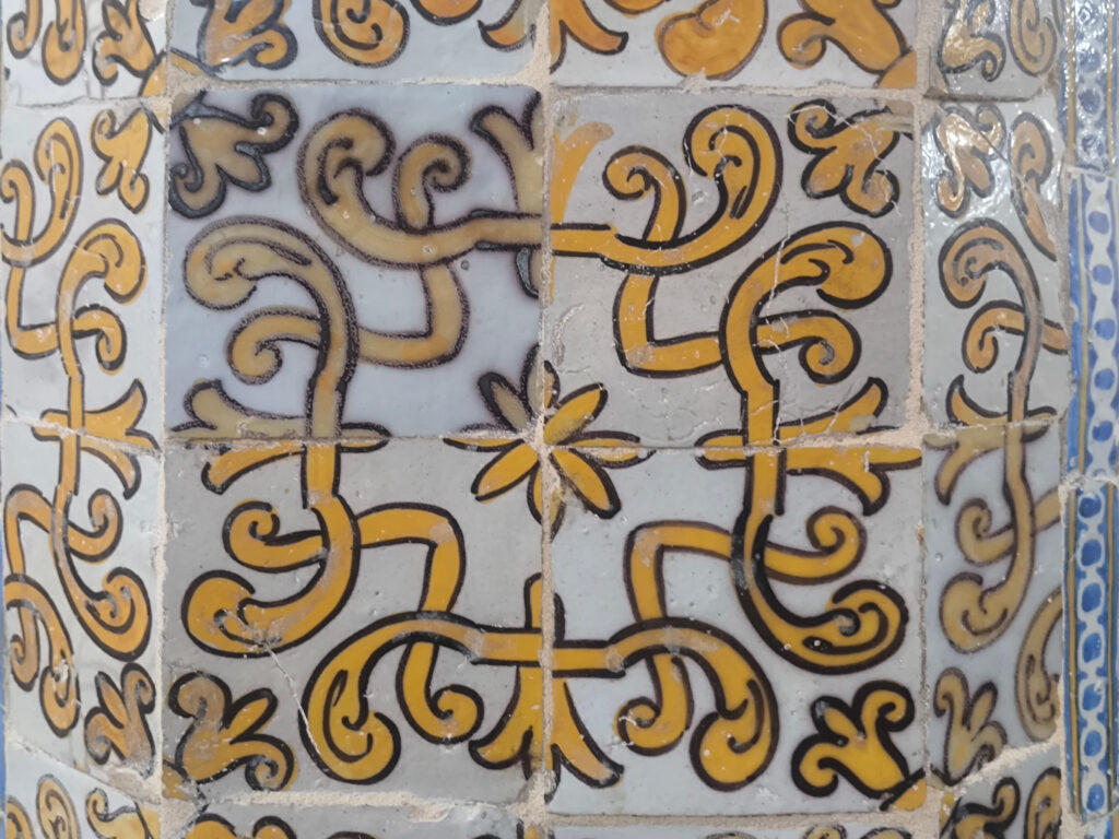 (de) Por cierto, esta es otra fusión: un fresco que simula un patrón de azulejos.