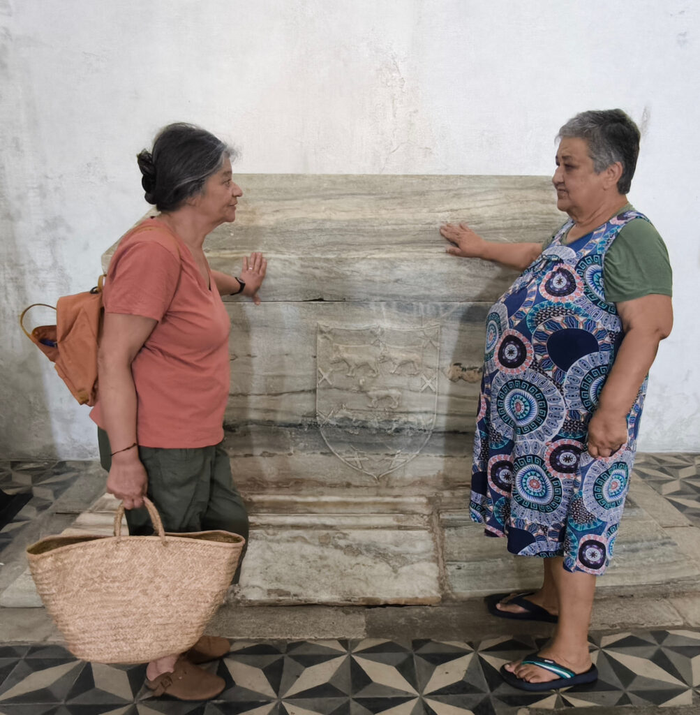(es) Así fue, después de lo que parecieron tres horas, que en realidad fue una, solo quedábamos nosotras tres. Nosotras tres y quienquiera que estuviera allí tumbado en ese sarcófago. Probablemente uno de los barones de Alvito. Eso se me escapó. Gracias, Doña Amalia.