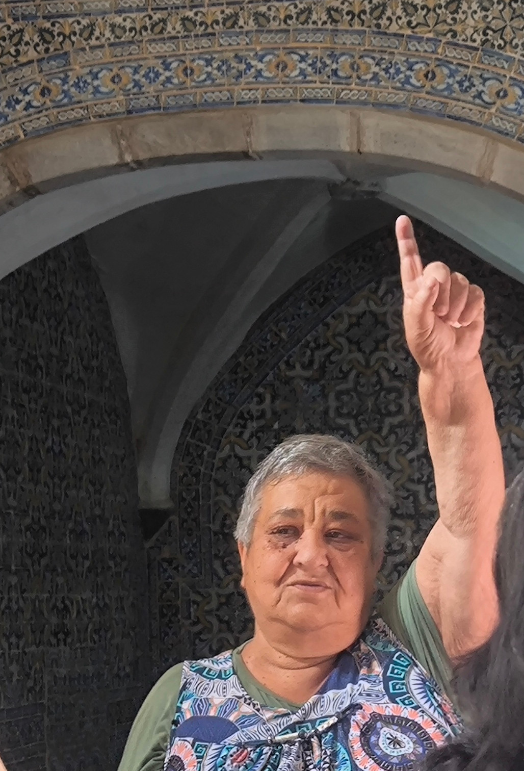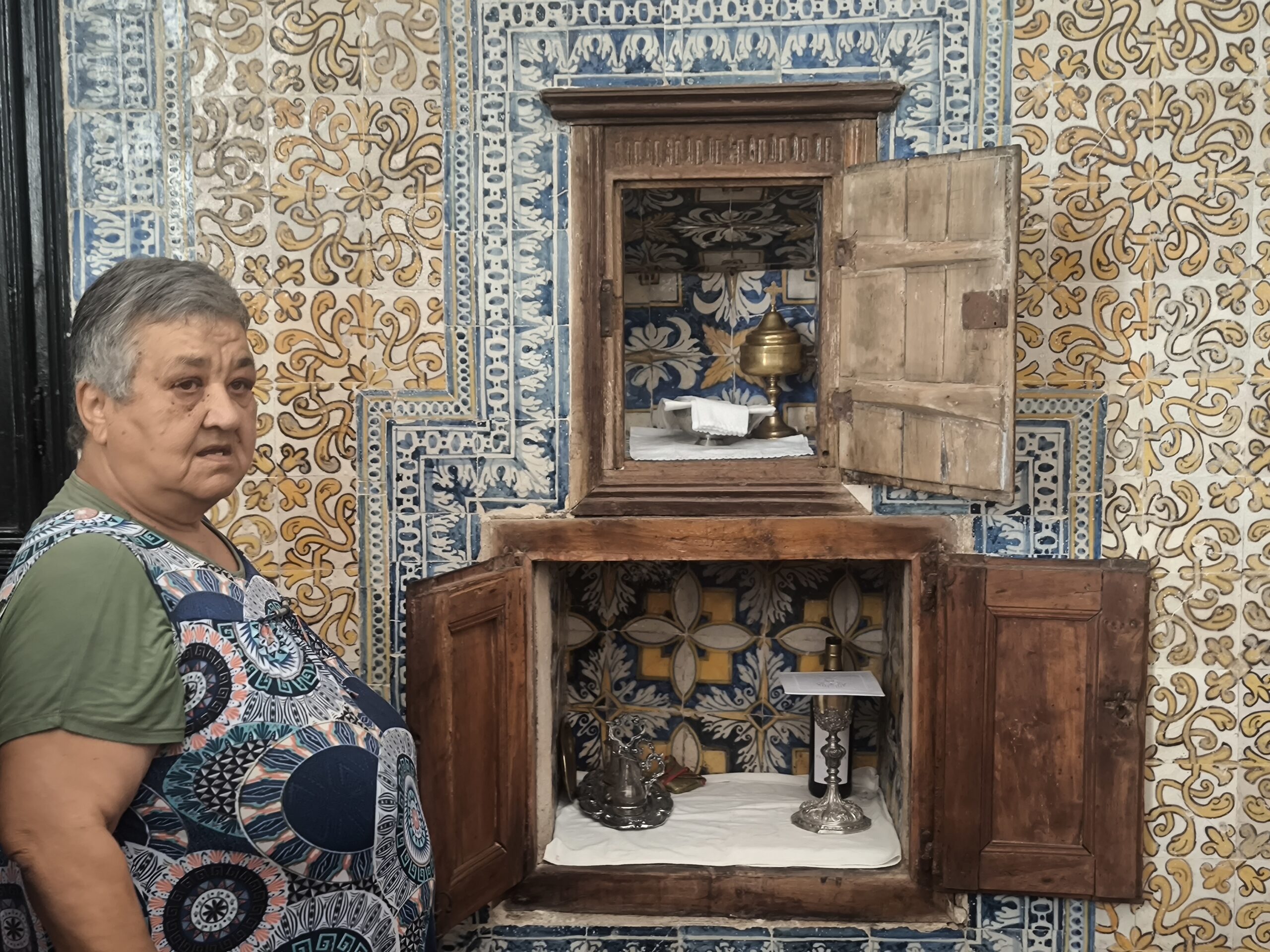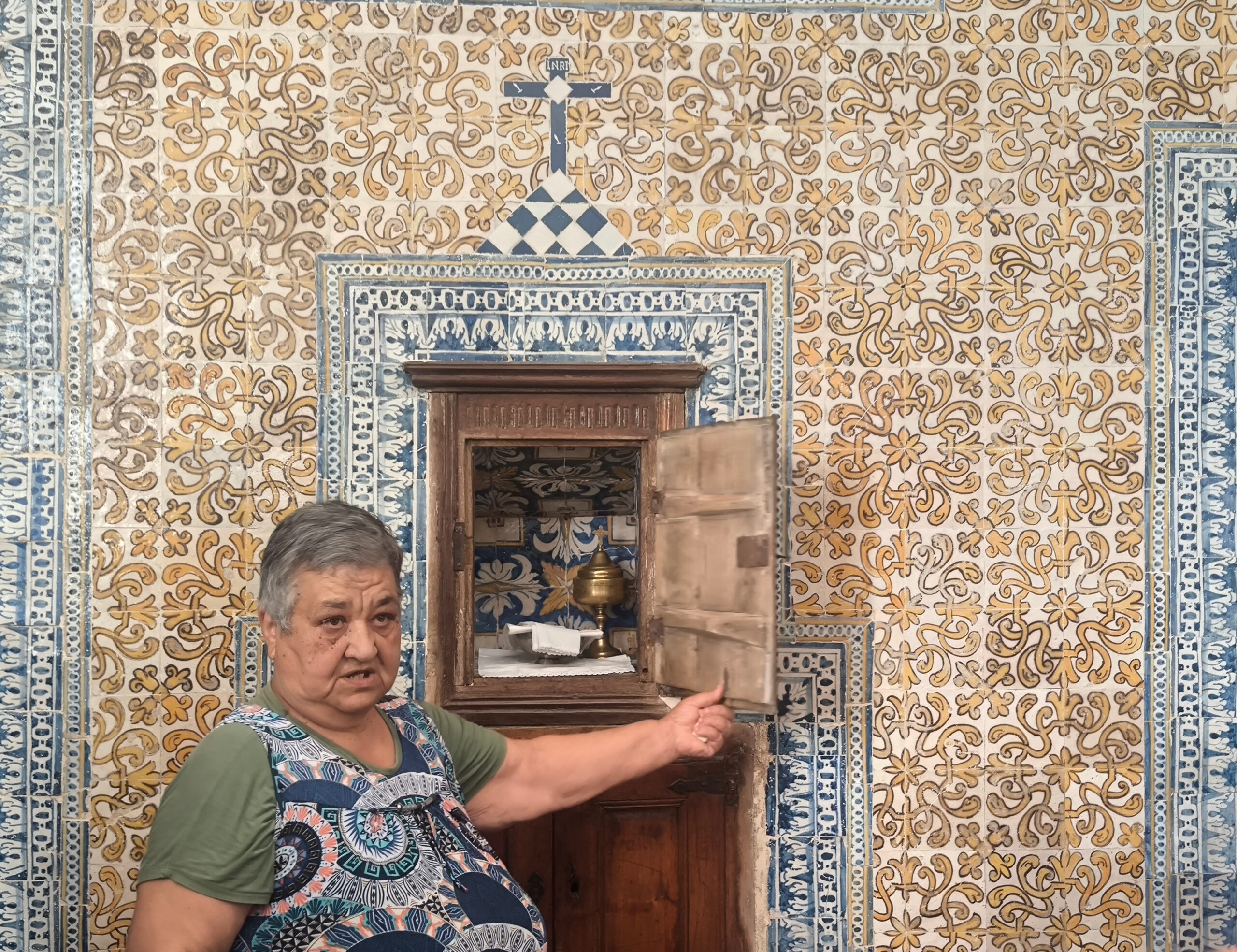 Doña Amalia führt Besucher:innen ehrenamtlich durch die Kirche von Alvito und tut dies auf eine ganz eigene, wie ich finde sehr authentische und jedenfalls unterhaltsame Art und Weise. Sie scheint jeden Stein und jede Kachel dieser Kirche zu kennen und nicht nur das, wenn man sie fragt, dann ist sie mit ihren etwas über siebzig Jahren ein unerschöpflicher Quell von Anekdoten und Geschichten.