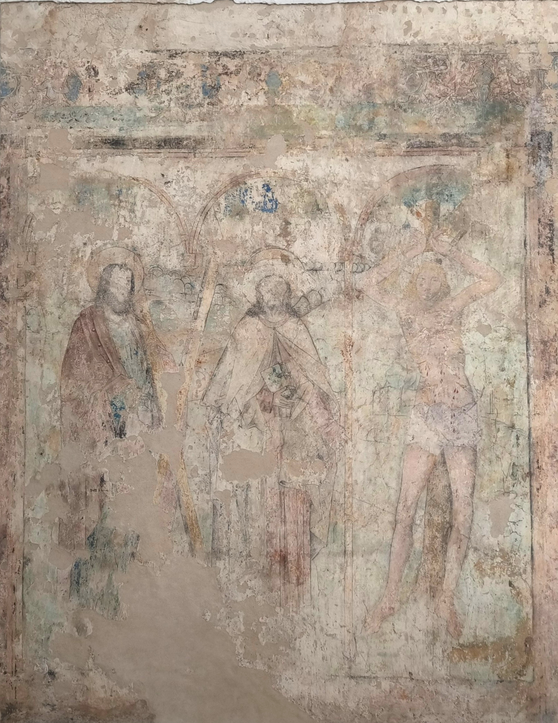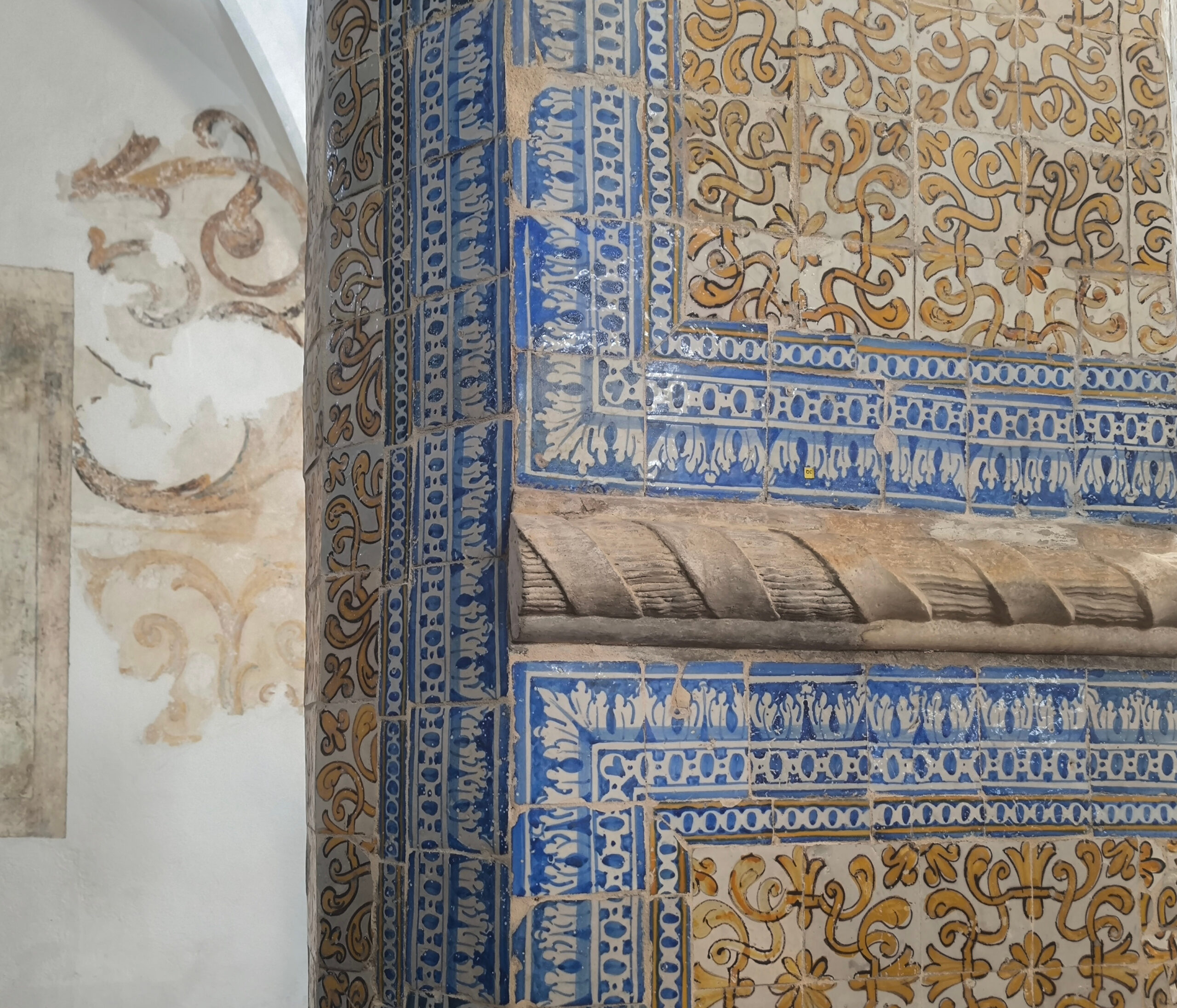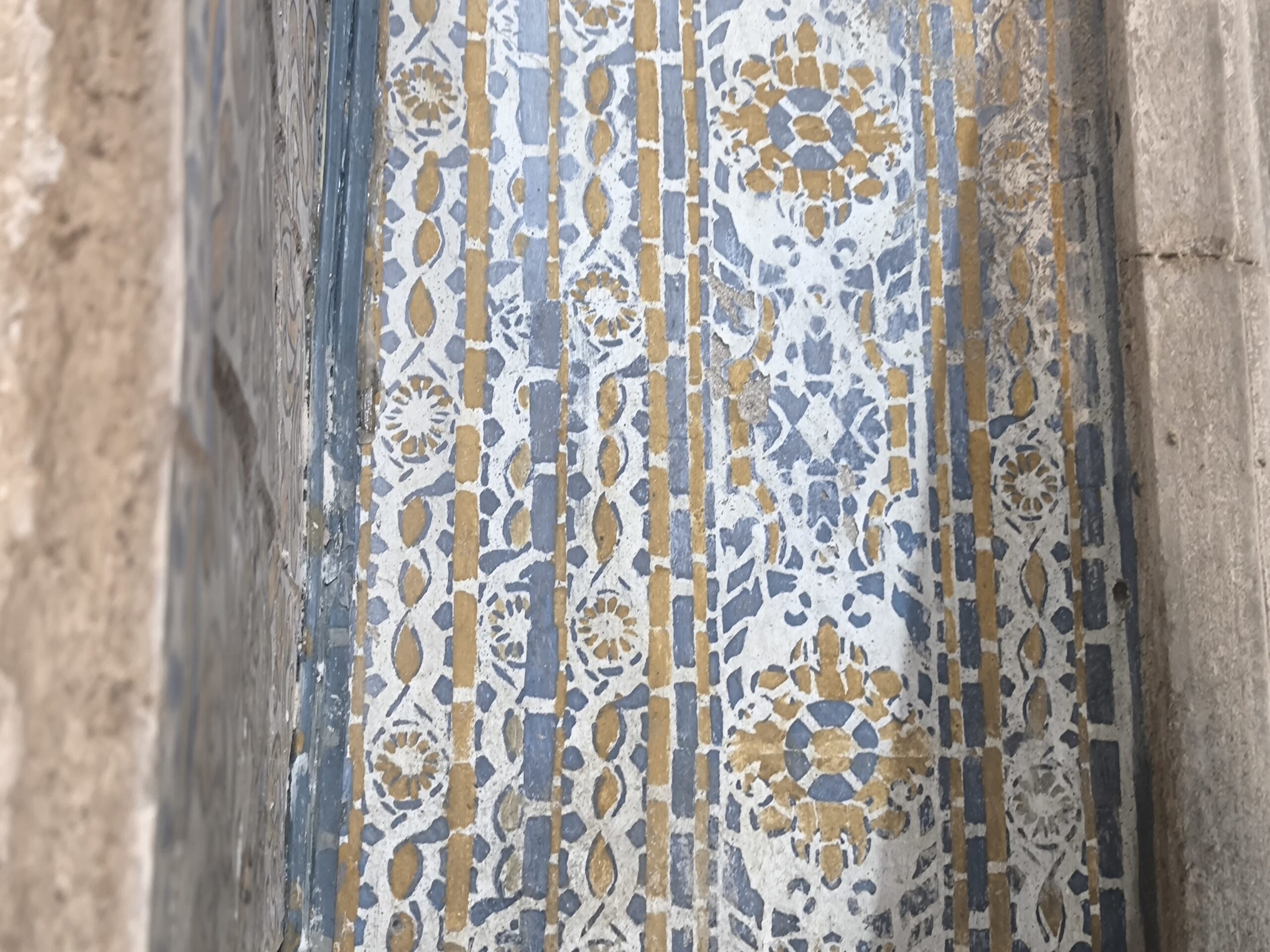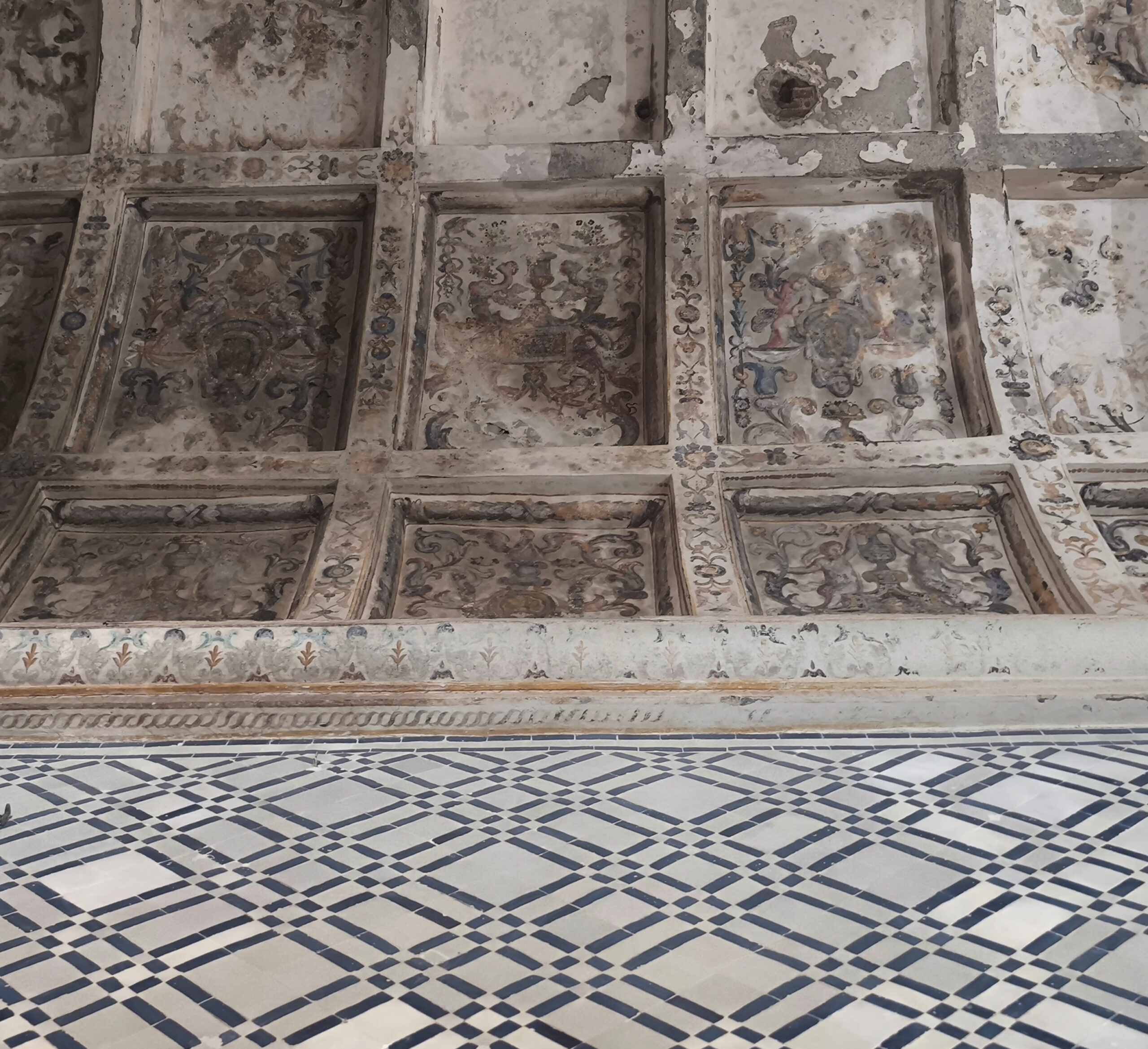 (de) Por cierto, esta es otra fusión: un fresco que simula un patrón de azulejos.