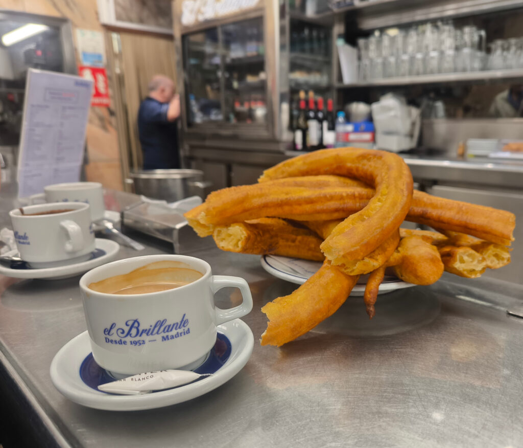 Y la forma seca, que roza el malhumor, en la que se atiende al cliente en la cadena «El Brillante», donde hay mucho movimiento, todo tiene que ir rápido, por ambas partes, y te ponen los platos delante con tanta prisa que se produce cierto estrépito… Solo que, y en esto todos estuvimos de acuerdo, los churros y las porras estaban un poco mejores en «El Brillante». Así que, si lo que te importa es solo o principalmente el placer del paladar y el ambiente no importa tanto, «El Brillante» no está nada mal. Si se prefiere un trato más humano y cálido, recomendaría desayunar en «Formula Nieto’s».