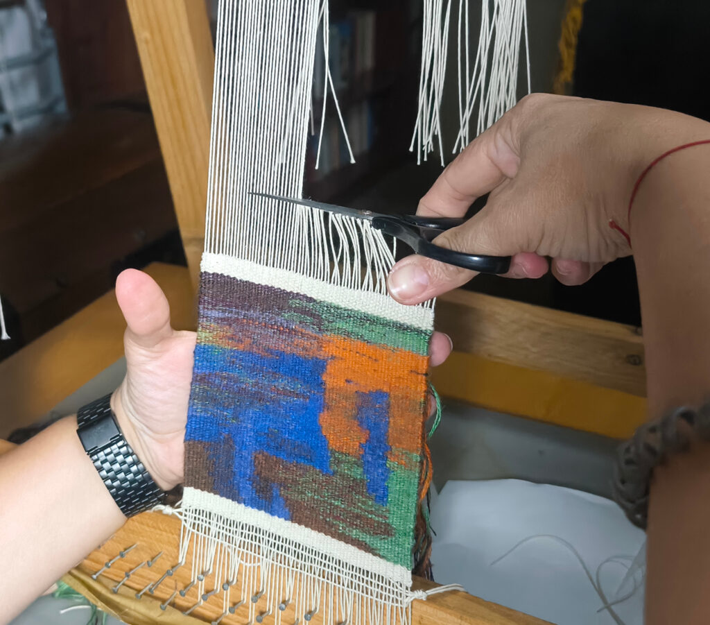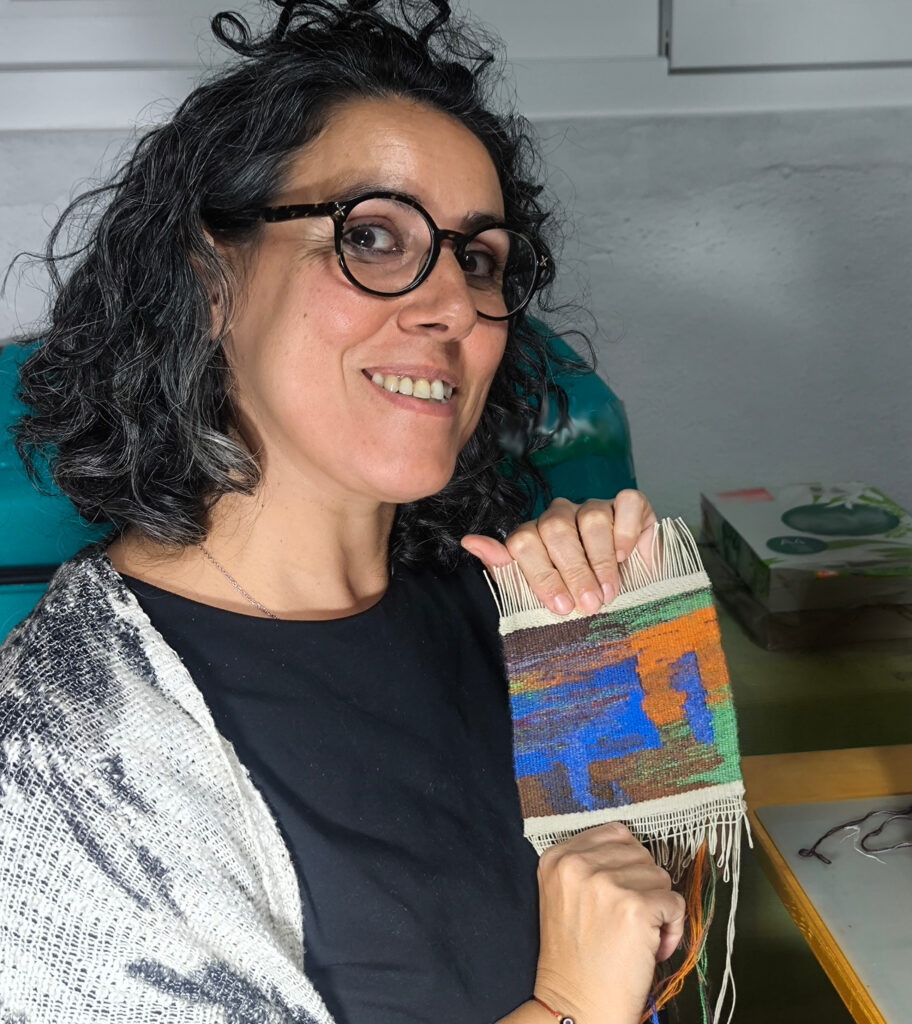 (es) También hay otro epílogo, uno textil, del taller intensivo con las dos Margaridas e Isabel. Si os acordáis, Margarida se llevó a Lisboa su telar con el tapiz que había empezado, con la esperanza de encontrar tiempo en su día a día para terminar este maravilloso tapiz. Como sabíamos que nos volveríamos a ver en dos semanas, no había problema por mi parte, aunque en mi interior sospechaba que esa lucha por encontrar tranquilidad y tiempo en la vida cotidiana de una madre trabajadora estaría condenada al fracaso.