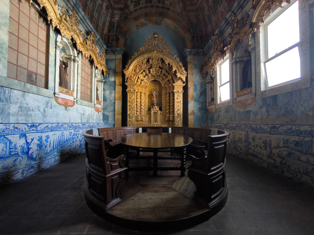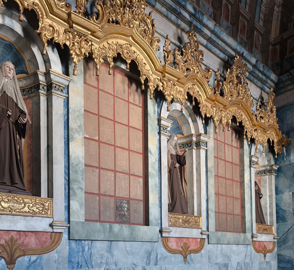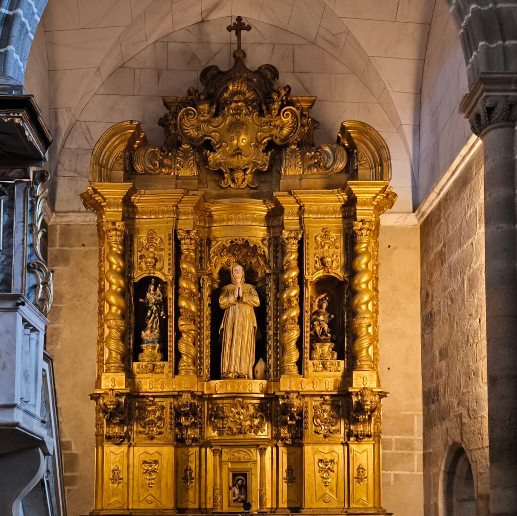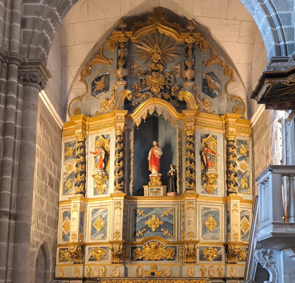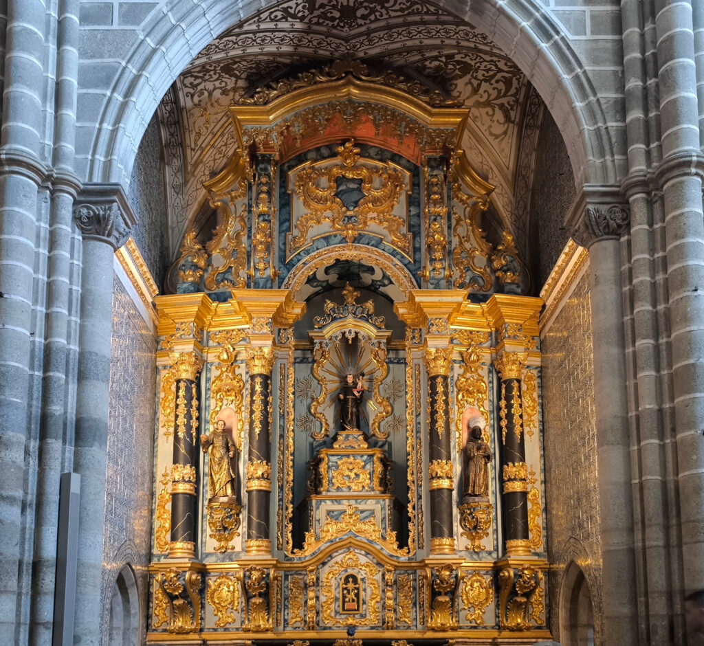 (es) Al igual que la catedral fue lo más destacado de mi primera visita a Évora, en mi segunda visita lo es la iglesia de San Francisco. Entré un poco por casualidad, porque primero pasé por la entrada principal y la fachada, y terminé en una pequeña parte aún conservada del antiguo claustro, junto a la capilla de los huesos. Y esta despertó mi curiosidad y quería verla. Pero no era gratis. Así que, en contra de mi convicción de no apoyar económicamente a la institución EGLISIA, hice mi contribución para poder ver esta particularidad patrimonial.