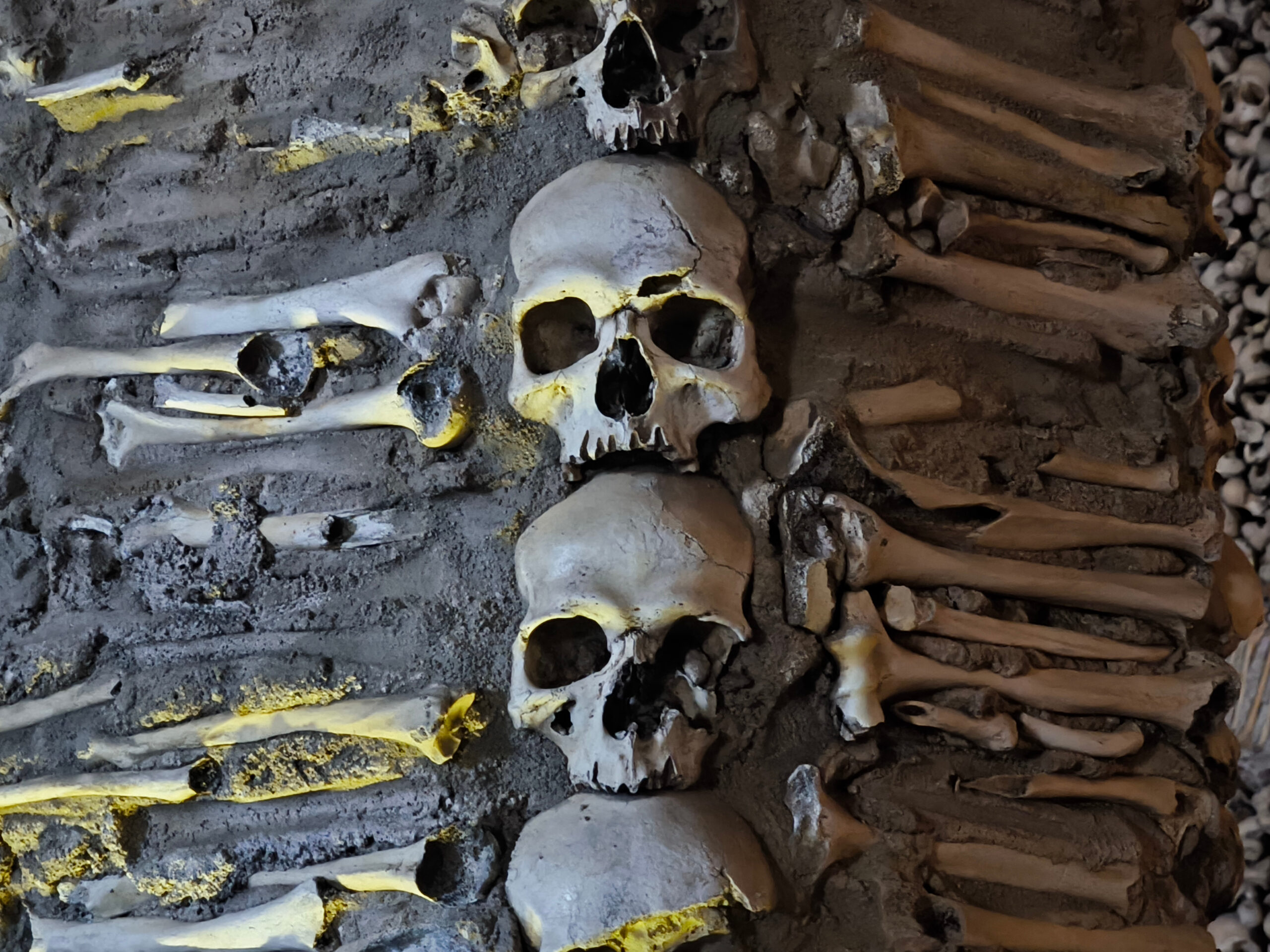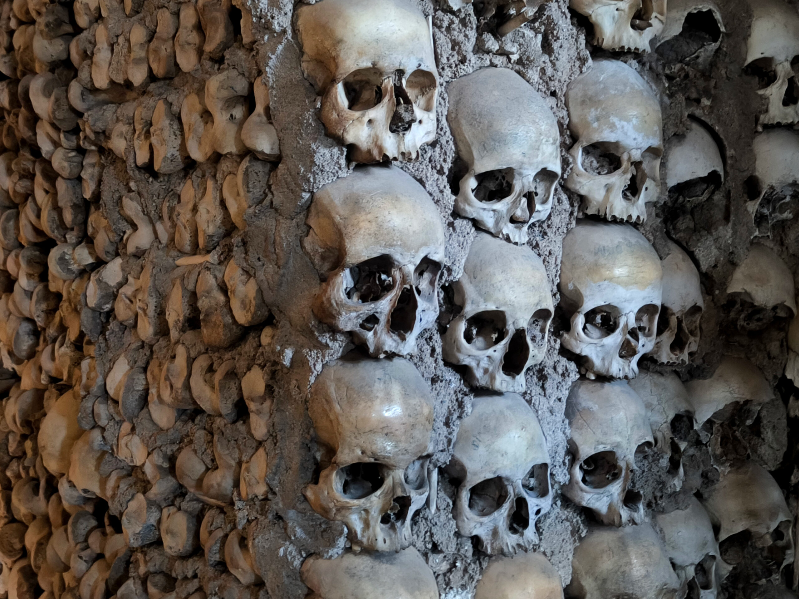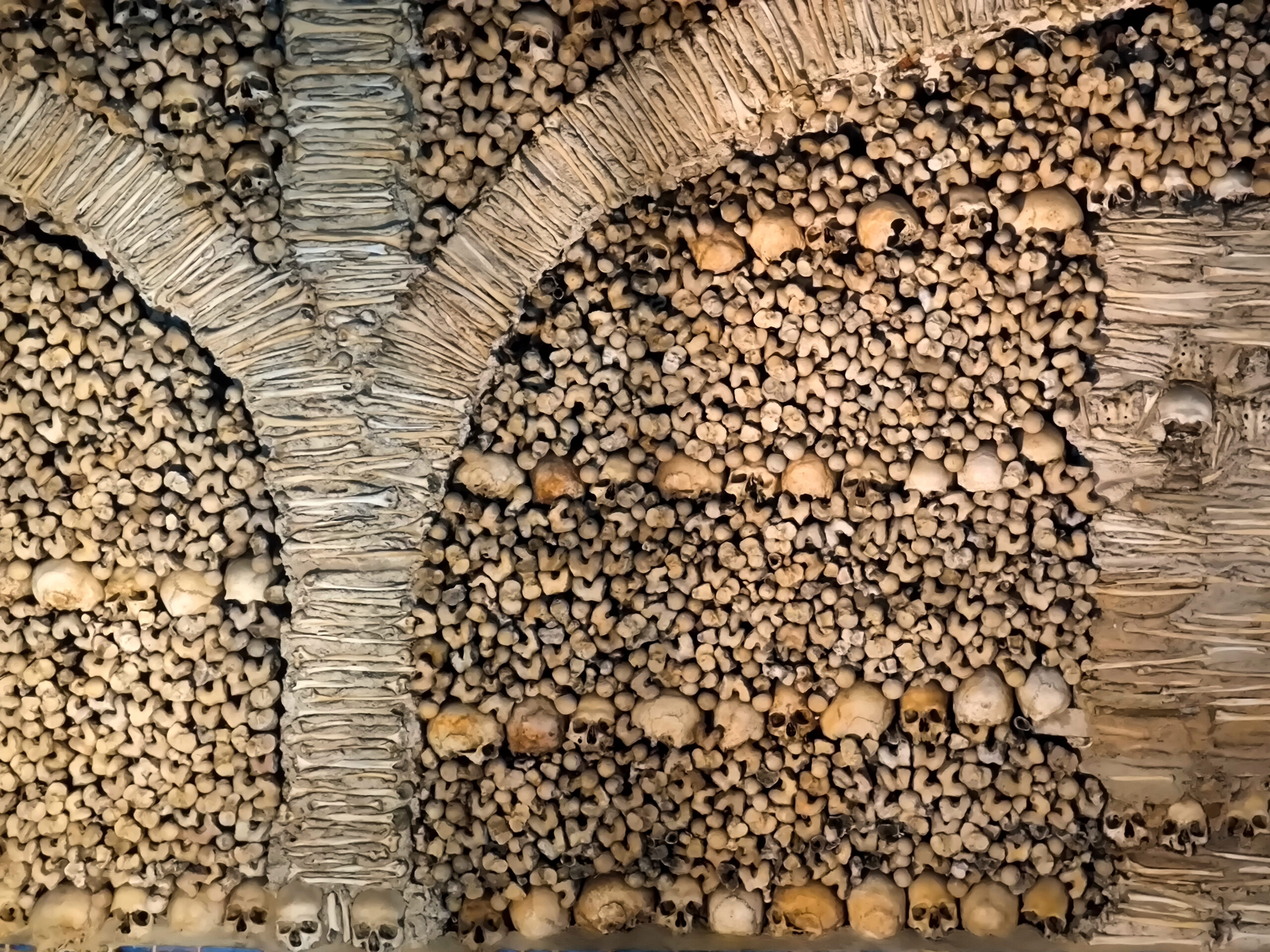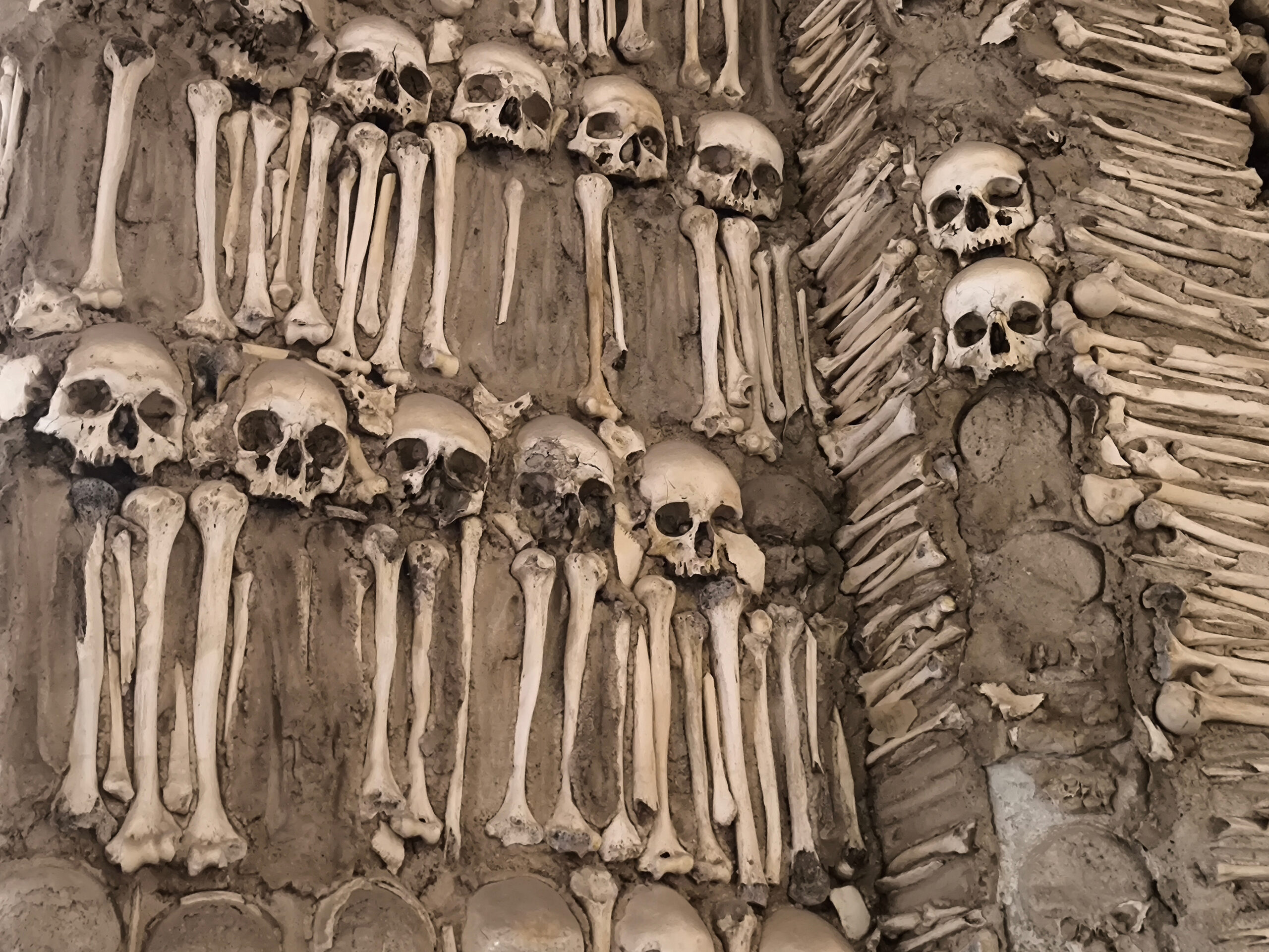 (de) Wiki sagt dazu: Die Capela dos Ossos wurde ursprünglich im 16. Jahrhundert auf Initiative eines Franziskanermönchs errichtet, der im Geiste der Gegenreformation seine Mitbrüder zum Nachdenken über die Vergänglichkeit des menschlichen Lebens und das Geheimnis des Todes anregen wollte. Die Absicht ist eindeutig didaktischer Natur, wie die gereimte Eingangsinschrift zeigt: Nós ossos / que aqui estamos / pelos vossos / esperamos („Wir Knochen, die wir hier sind, warten auf die euren“). Die Kapelle wurde im 18. Jahrhundert vollständig restauriert, als der portugiesische König Johann V. die Kirche San Bernardino alle Ossa in Mailand besuchte, die der in Évora sehr ähnlich ist.
