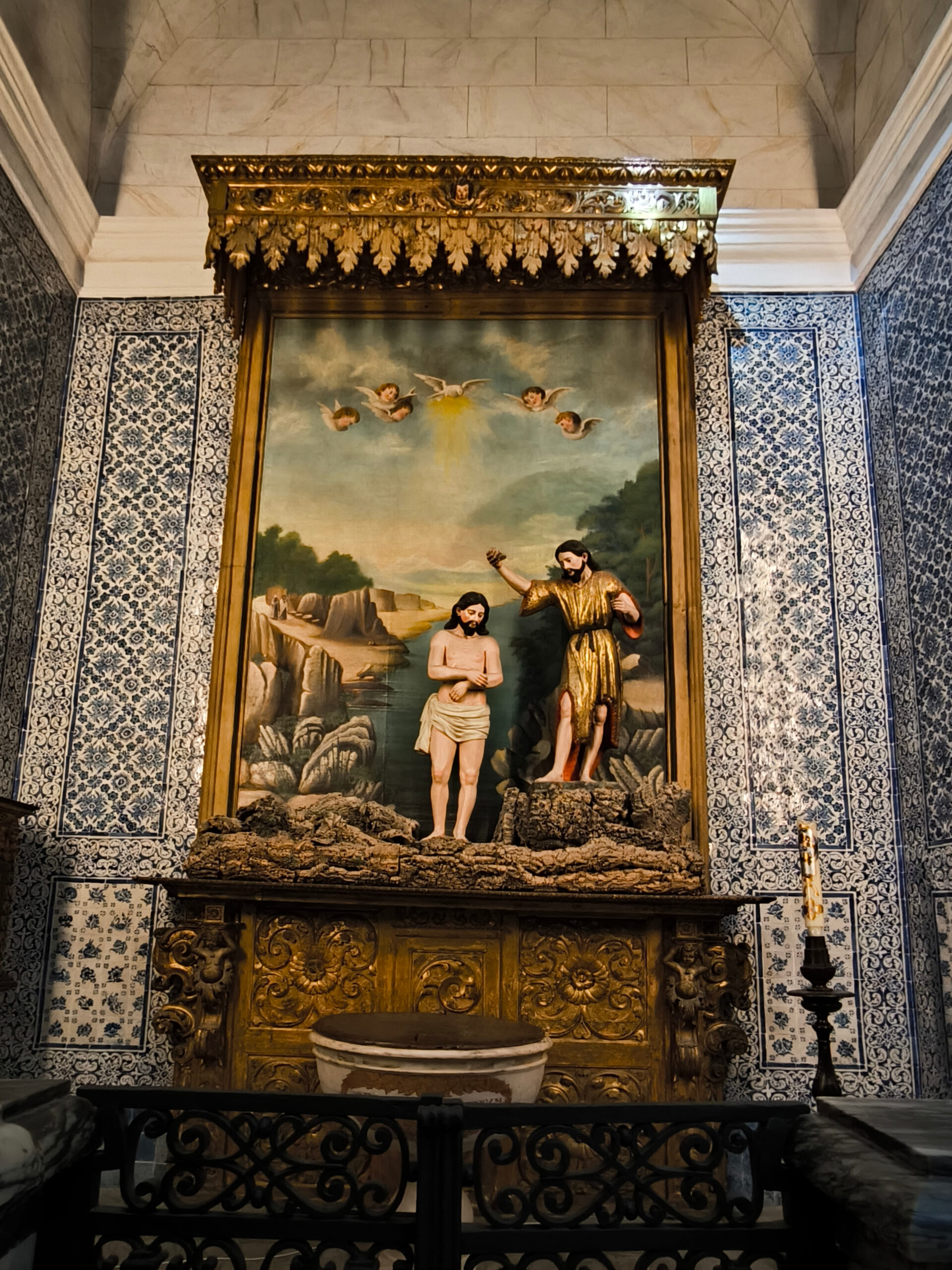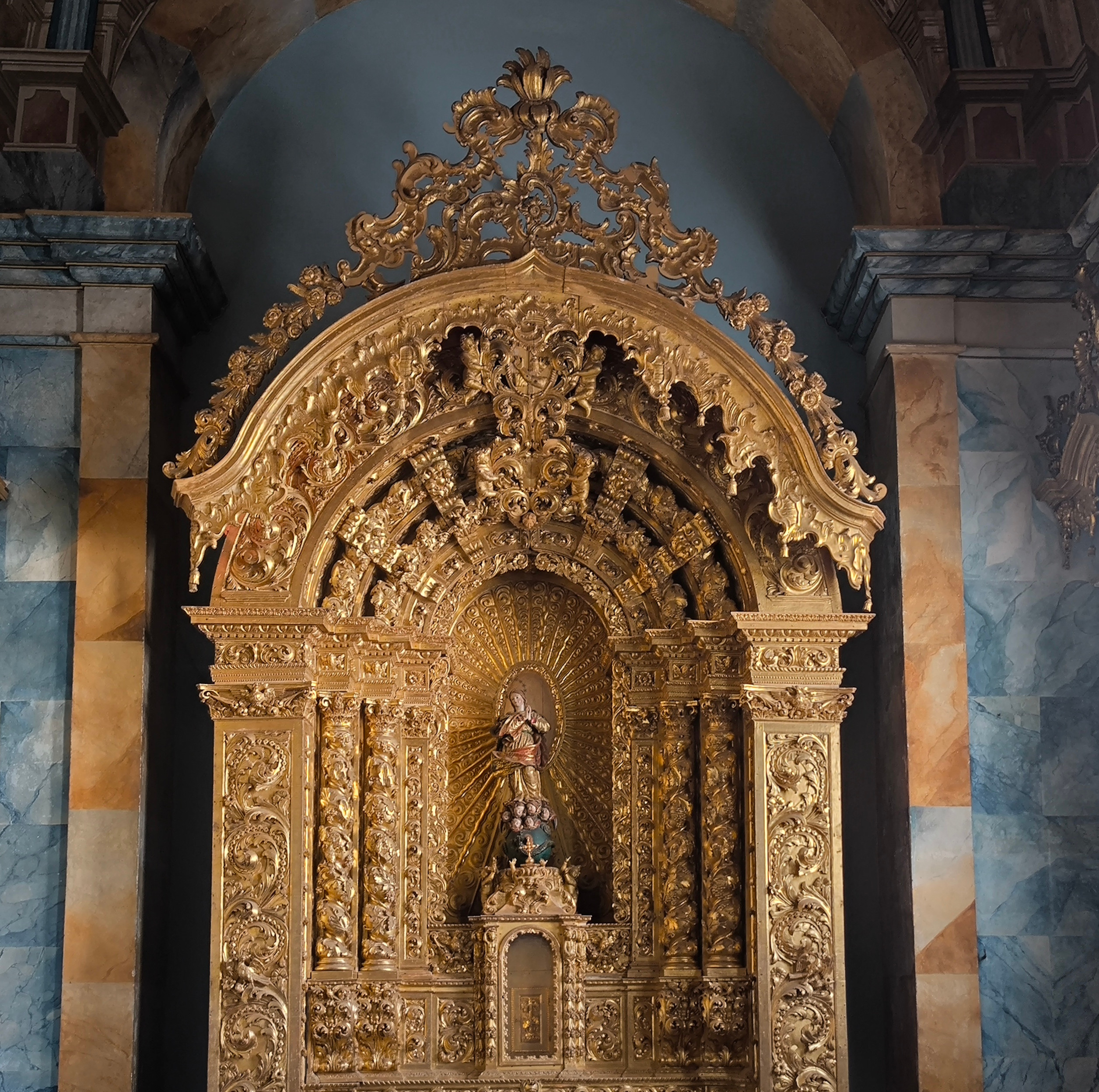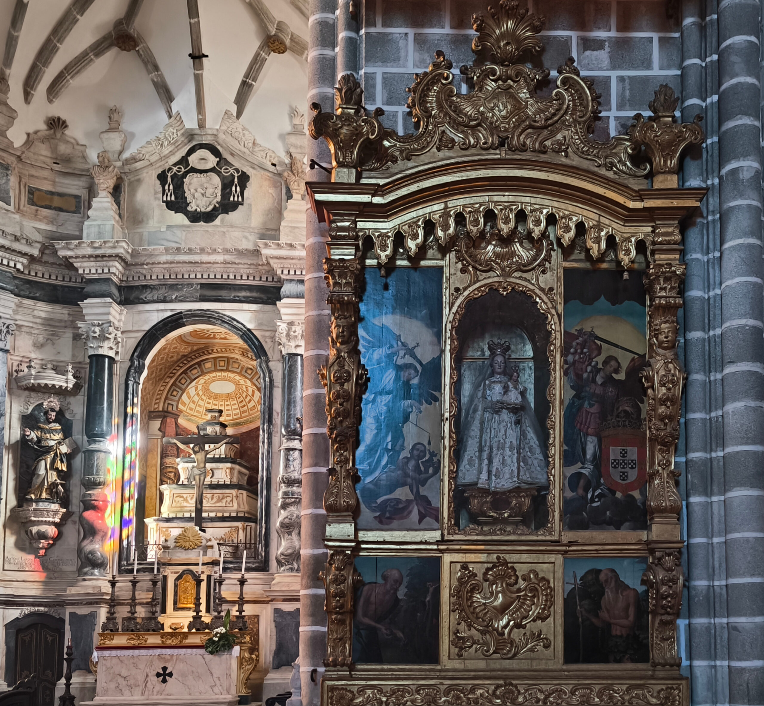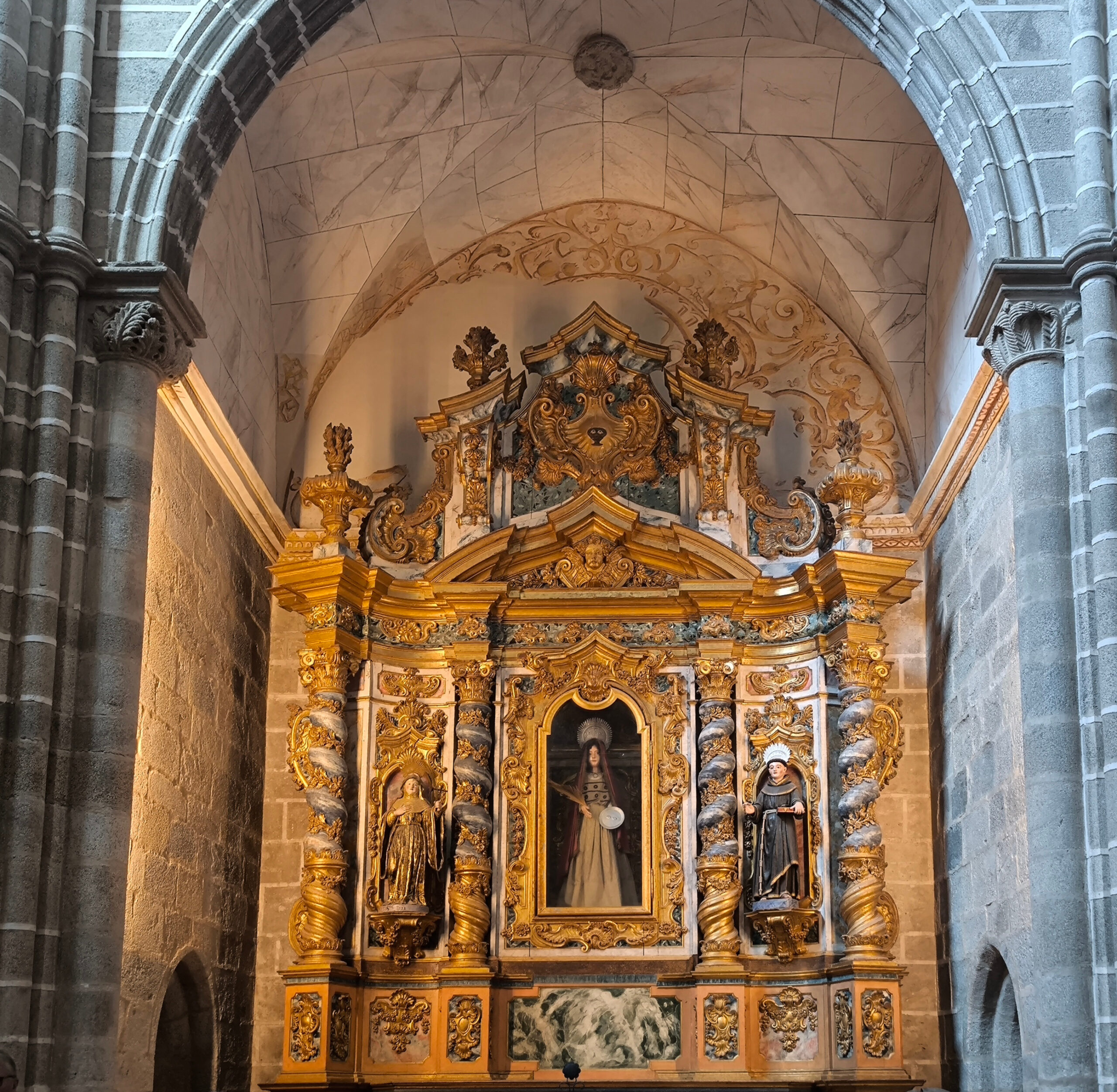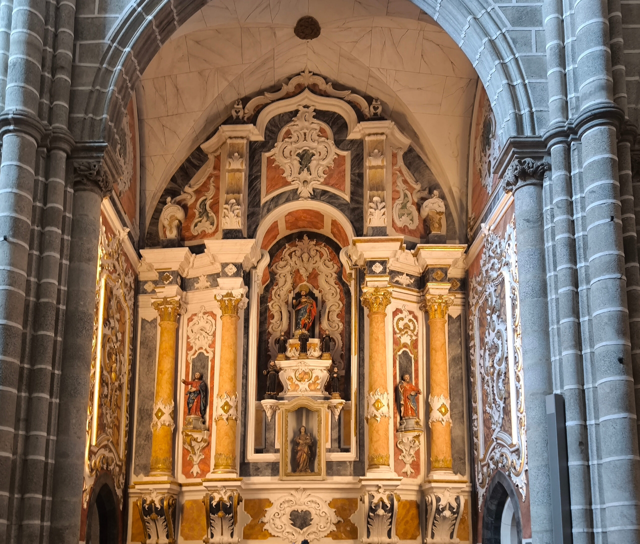 (es) Al igual que la catedral fue lo más destacado de mi primera visita a Évora, en mi segunda visita lo es la iglesia de San Francisco. Entré un poco por casualidad, porque primero pasé por la entrada principal y la fachada, y terminé en una pequeña parte aún conservada del antiguo claustro, junto a la capilla de los huesos. Y esta despertó mi curiosidad y quería verla. Pero no era gratis. Así que, en contra de mi convicción de no apoyar económicamente a la institución EGLISIA, hice mi contribución para poder ver esta particularidad patrimonial.