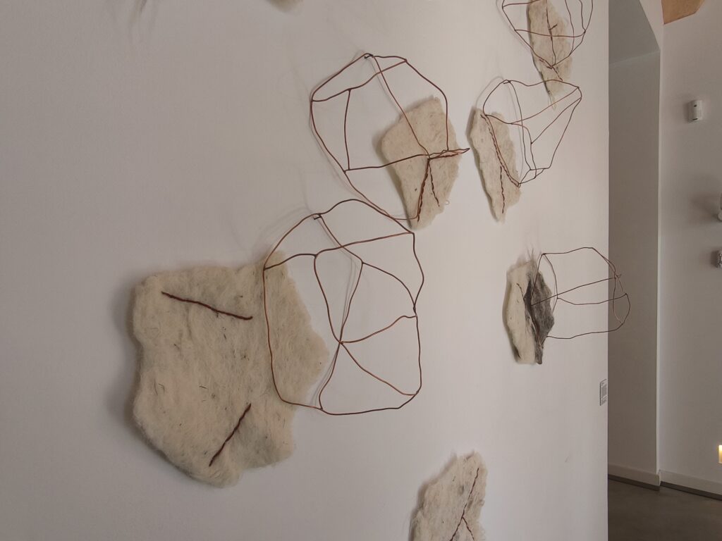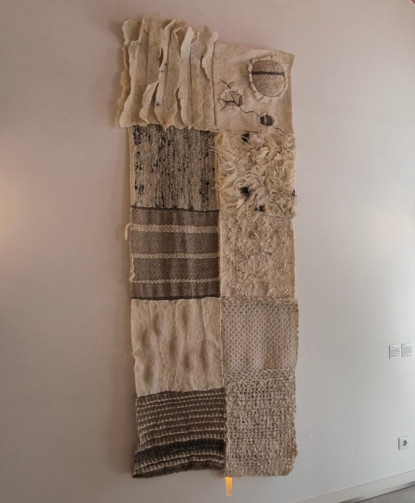 (es) Hace algún tiempo, Margarida había planteado la idea de hacer una excursión a Loulé para visitar la exposición «Alinhados pela mesma lã». Según explica el folleto, esta exposición nació de un gesto colectivo: siete artistas se reunieron para trabajar con un material ancestral, la lana de una raza ovina autóctona, la «oveja churra algaviana», con el fin de escuchar al paisaje y hacer tangible y comprensible el paso del tiempo. Durante varios meses, experimentaron con sus manos, sus cuerpos y sus mentes el ciclo de la lana, desde la esquila hasta el hilado, pasando por la exploración artística y artesanal del material. Esta exposición muestra el resultado de ese viaje: una cartografía sensible de texturas, recuerdos y reinvenciones.