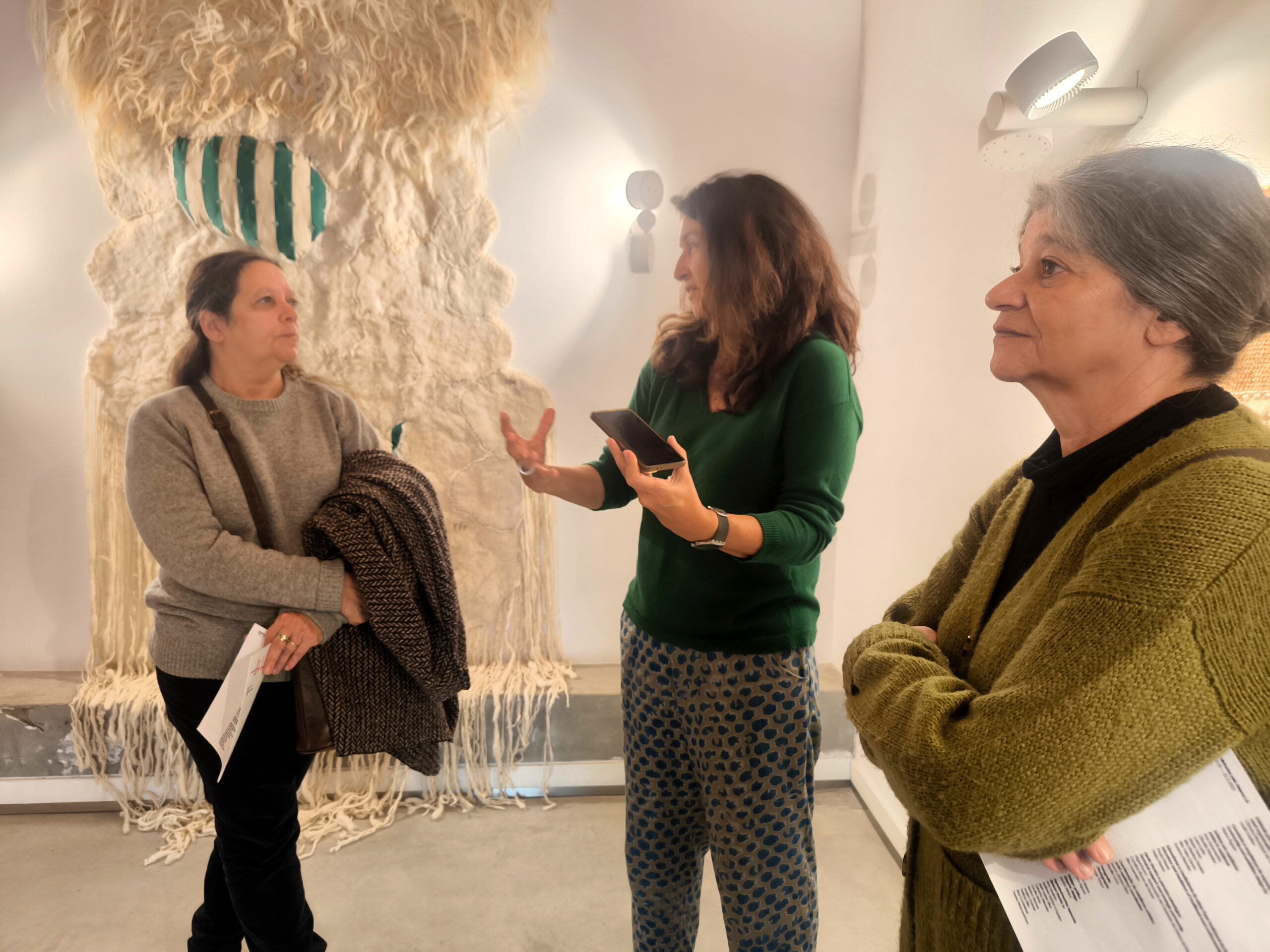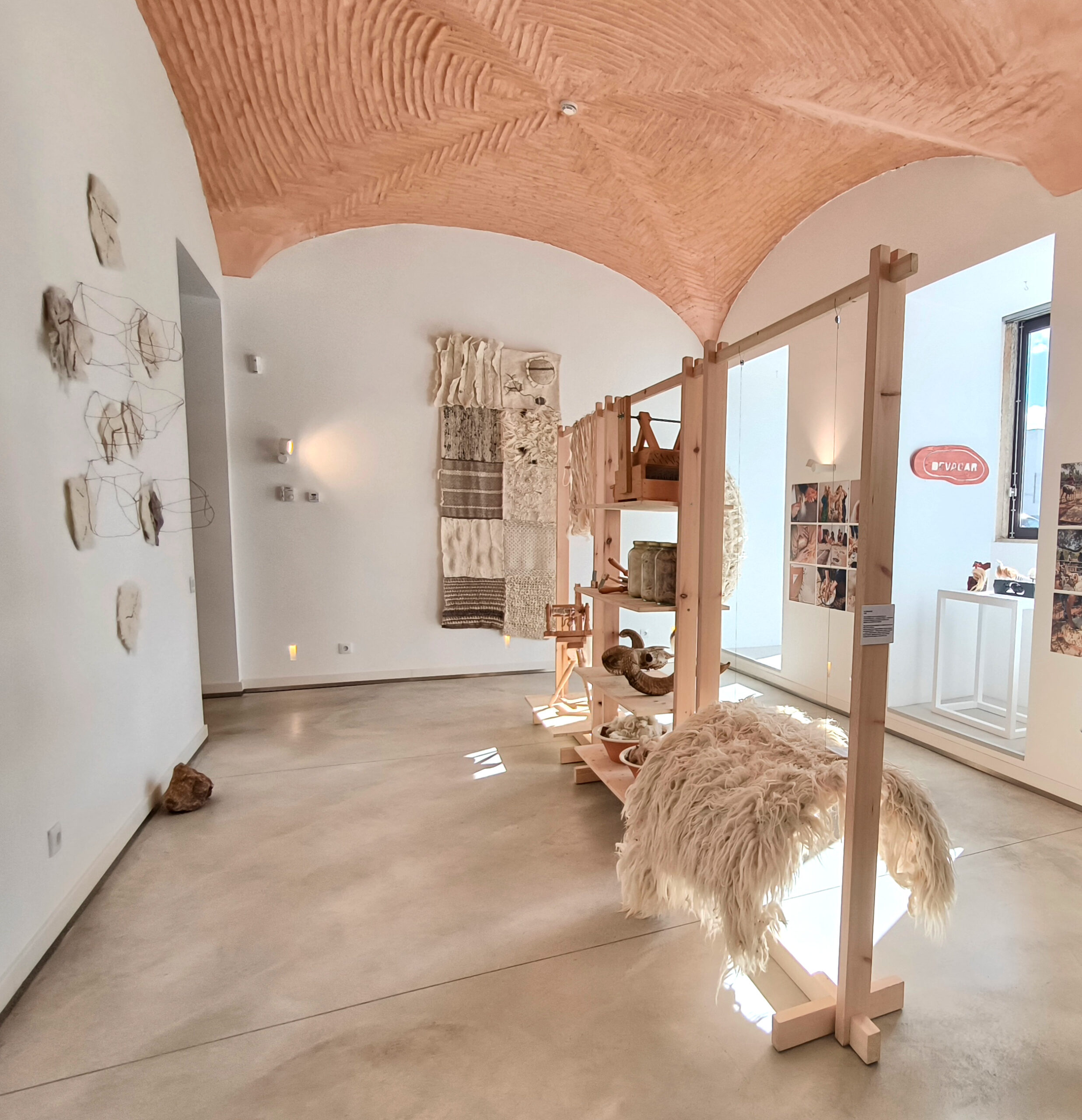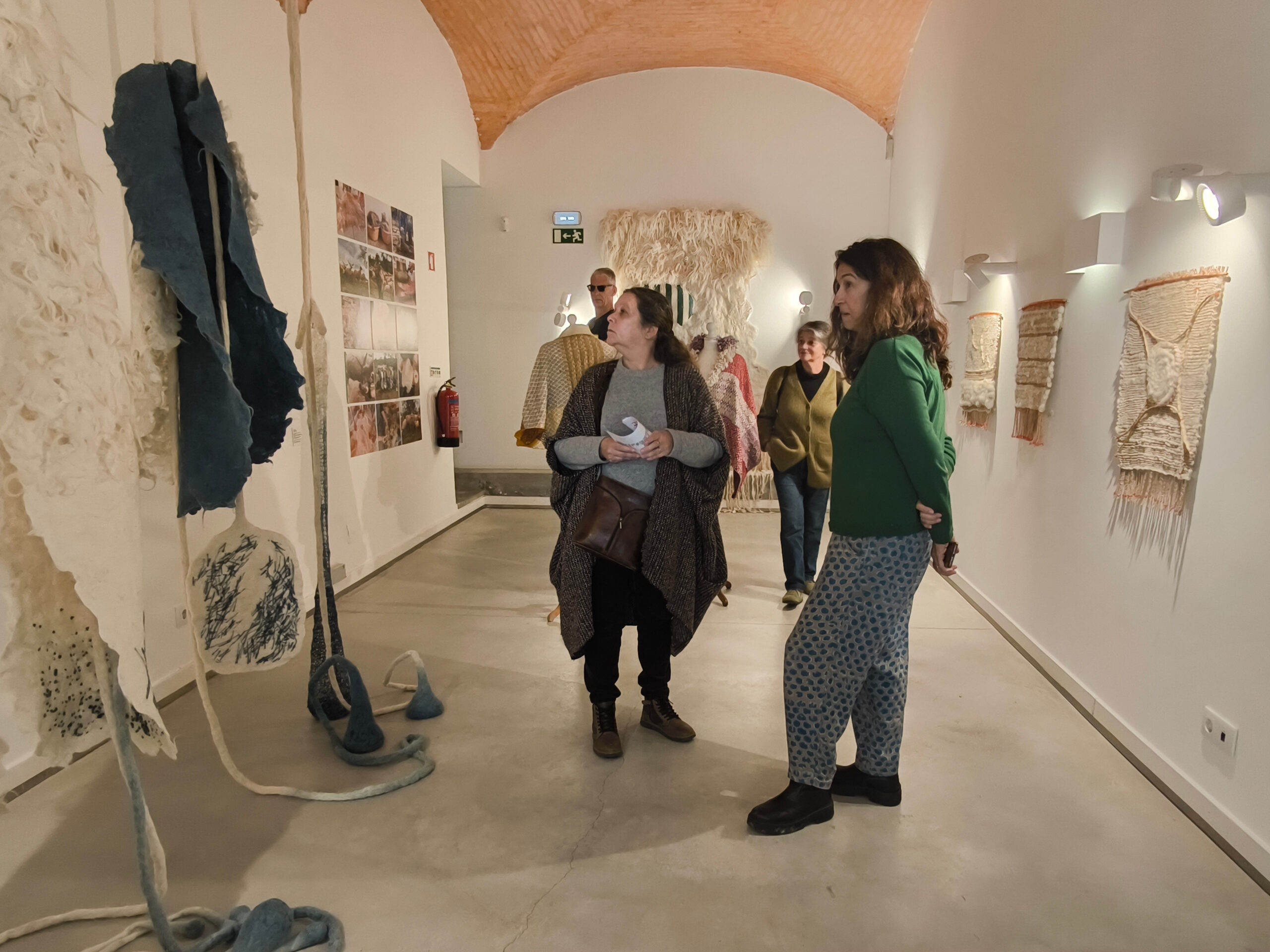 (es) Hace algún tiempo, Margarida había planteado la idea de hacer una excursión a Loulé para visitar la exposición «Alinhados pela mesma lã». Según explica el folleto, esta exposición nació de un gesto colectivo: siete artistas se reunieron para trabajar con un material ancestral, la lana de una raza ovina autóctona, la «oveja churra algaviana», con el fin de escuchar al paisaje y hacer tangible y comprensible el paso del tiempo. Durante varios meses, experimentaron con sus manos, sus cuerpos y sus mentes el ciclo de la lana, desde la esquila hasta el hilado, pasando por la exploración artística y artesanal del material. Esta exposición muestra el resultado de ese viaje: una cartografía sensible de texturas, recuerdos y reinvenciones.