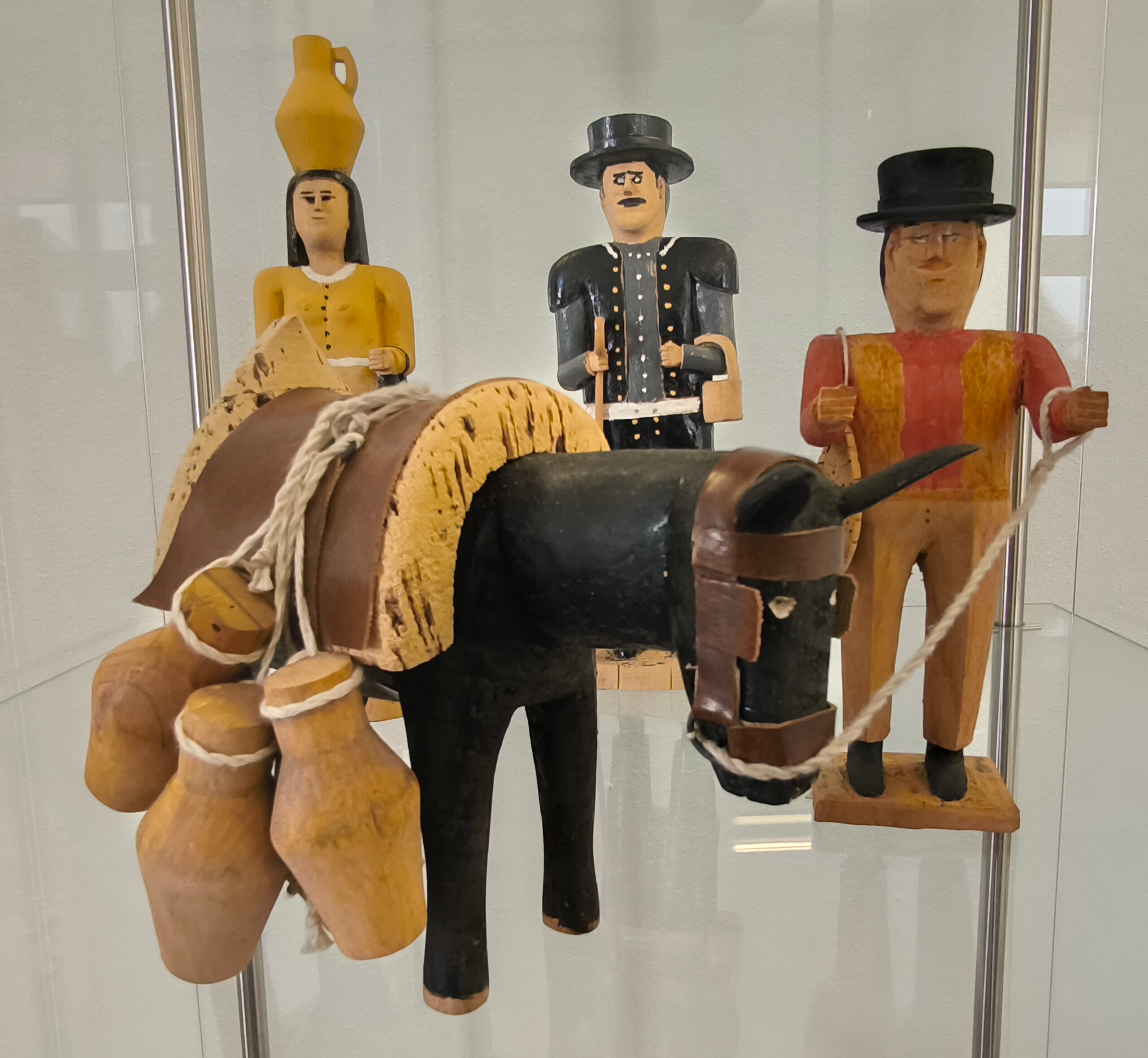 (es) Una sala dedicada a la artesanía, todas esas cosas que uno puede hacer creativamente con corcho, por placer o como pasatiempo. Aquí me cautivaron una vez más las figuras de corcho y madera que recrean situaciones cotidianas. ¡Cuánto me habría encantado comprar una! Pero, al parecer, ya no hay nadie que las haga. Todo el mundo las tiene, nadie las necesita… Y es improbable que un artesano pueda vivir únicamente del turismo en la región, y no parece haber estructuras operativas para la comercialización conjunta ni otras formas de apoyo. Es una pena, pero comprensible. No tengo ni idea de cómo cambiar eso.