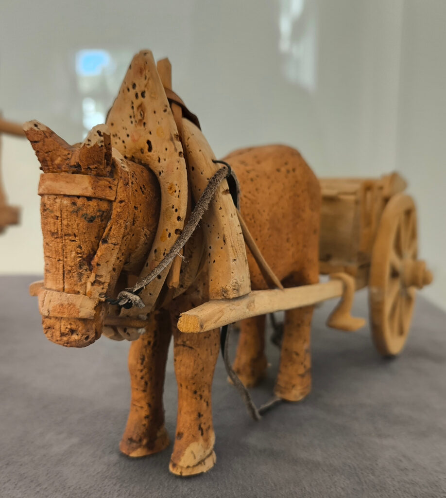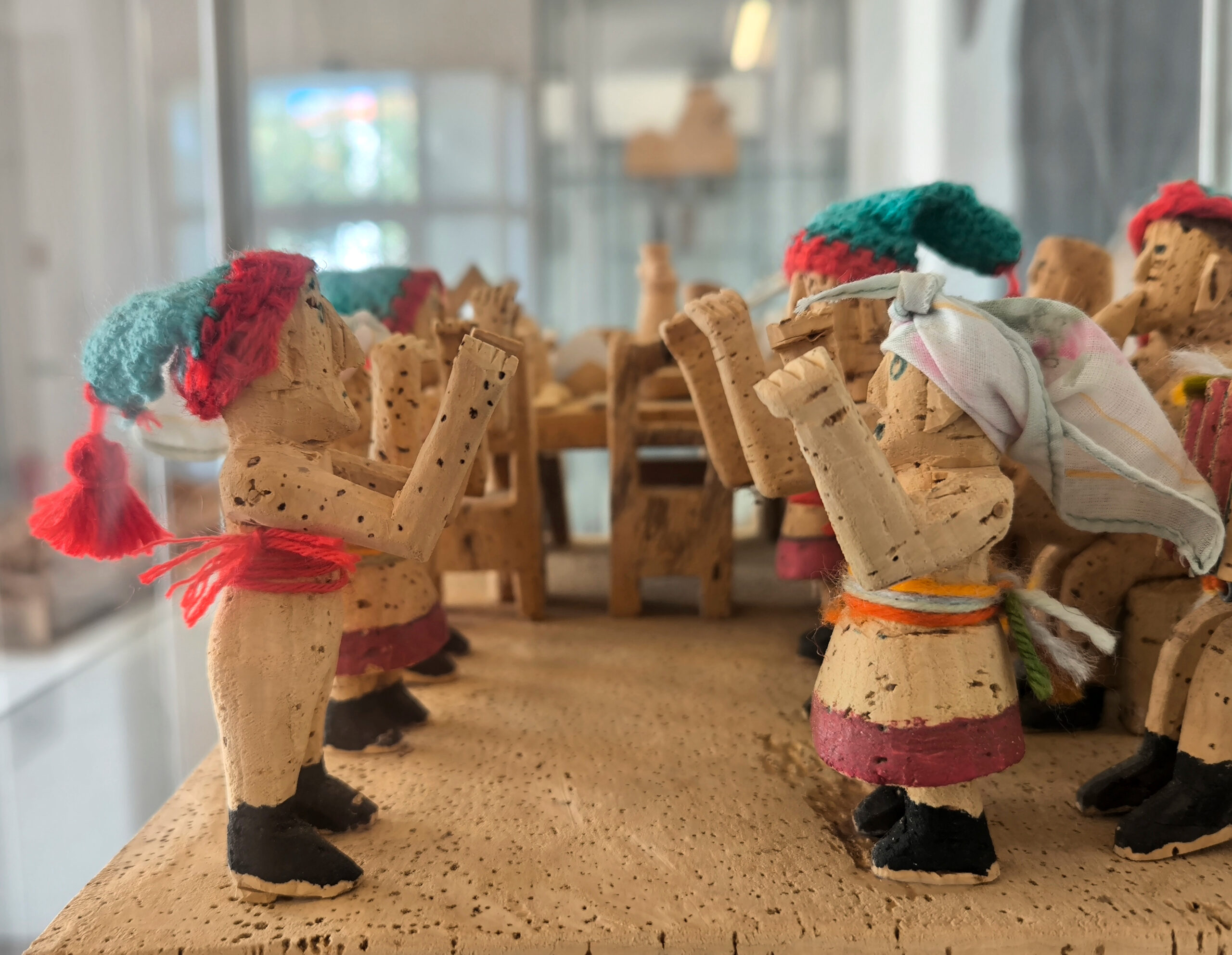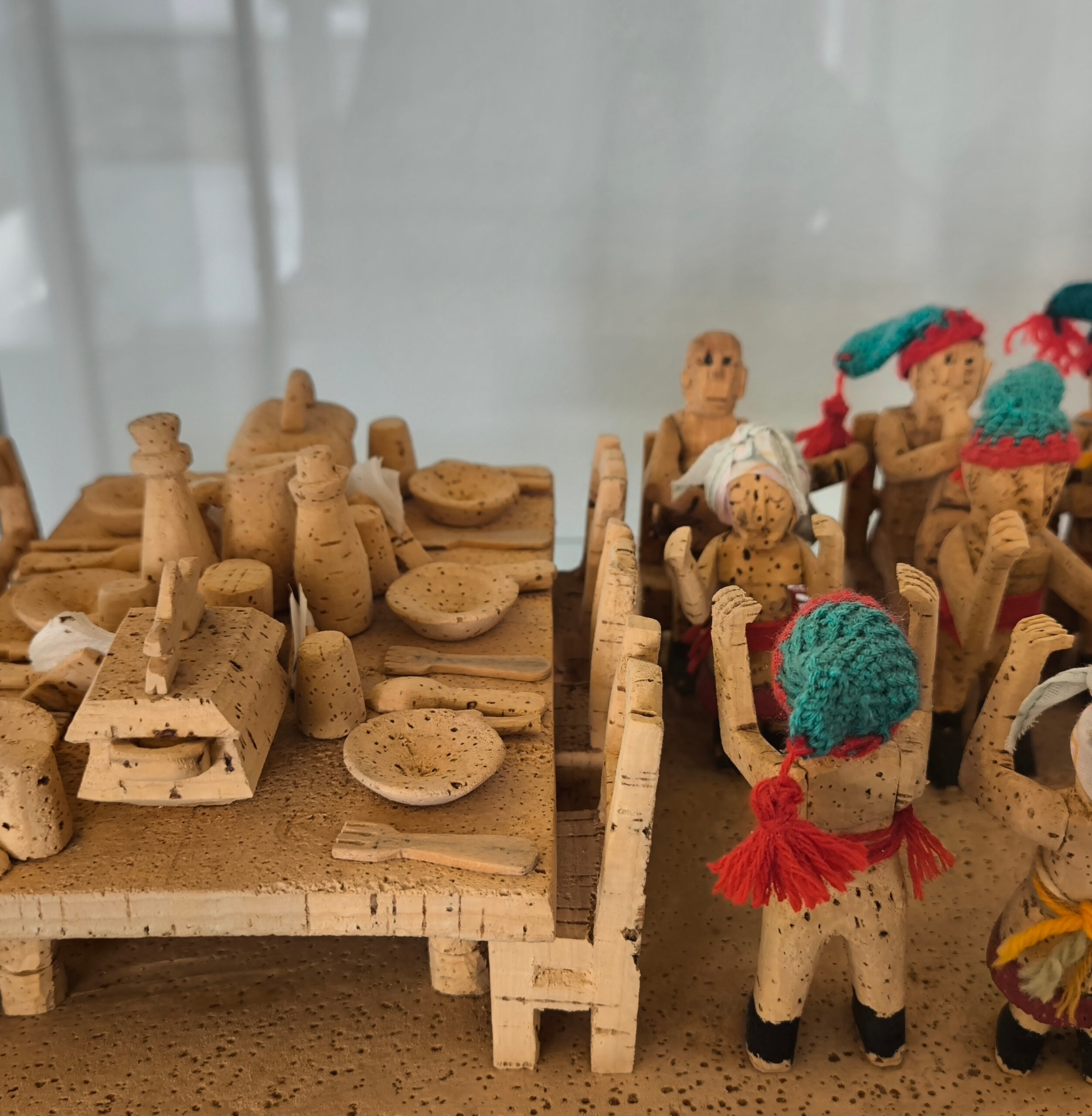 Einen Raum, der dem Kunsthandwerk gewidmet ist, also all dem, was man eher aus Vergnügen oder als Freizeitbeschäftigung kreativ aus Kork herstellen kann. Auch hier war ich einmal mehr begeistert von den Figuren aus Kork oder Holz, mit denen Alltagssituationen nachkreiert wurden. Wie gerne hätte ich solch eine Figur gekauft. Aber es gibt anscheinend niemanden mehr, der sie herstellt. Alle haben, keiner braucht….. Und allein vom Tourismus der in die Region kommt, kann wahrscheinlich kein:e Handwerker:in leben und funktionierende Strukturen gemeinsamer Vermaktung oder sonstiger Förderung scheint es nicht wirklich zu geben. Schade, aber irgendwie auch verständlich. Keine Ahnung, wie man das ändern kann.