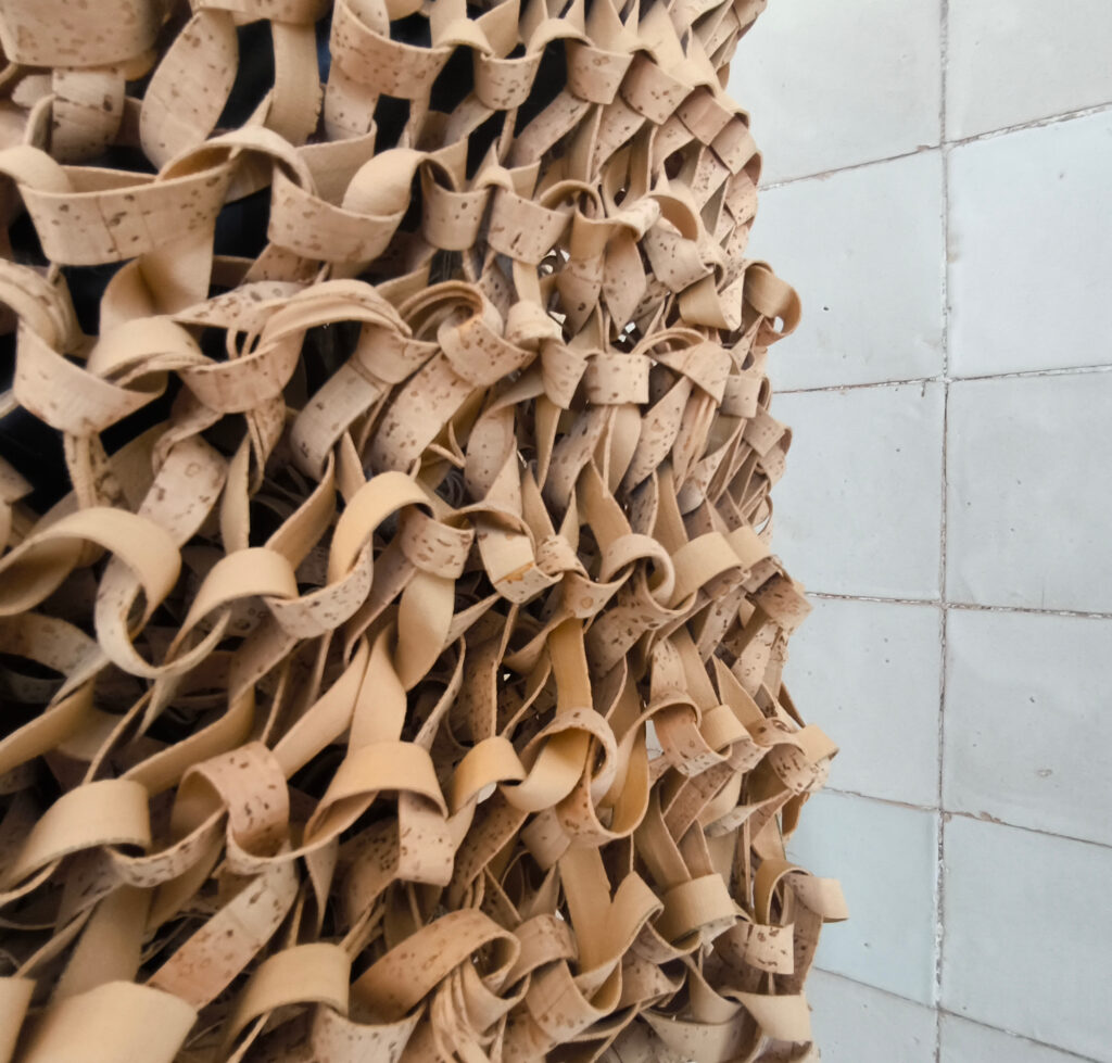 Una sala que muestra el variado uso del corcho…. desde material aislante y los corchos de las botellas que todos conocemos, hasta capas superfinas aplicadas a tejidos que los convierten en impermeables……/ Ein Raum, in dem gezeigt wird, wie vielseitig Korch verwendet werden kann…. von Isoliermaterial über die allbekannten Flaschenkorken, bis hin zu hauchdünnen wasserabweisenden Schichten auf Gewebe…..
