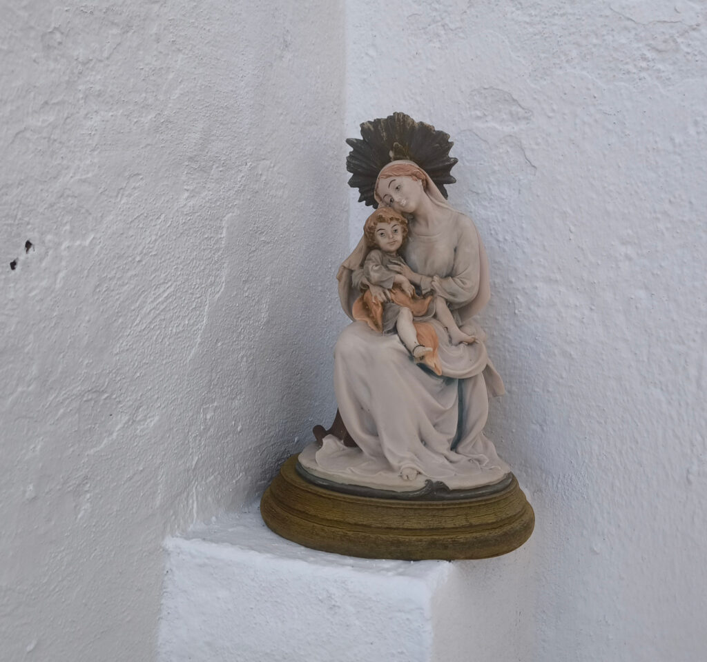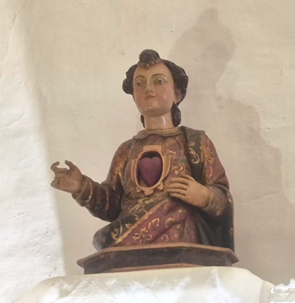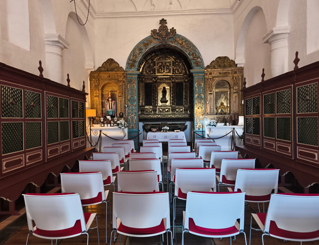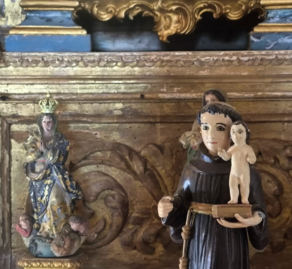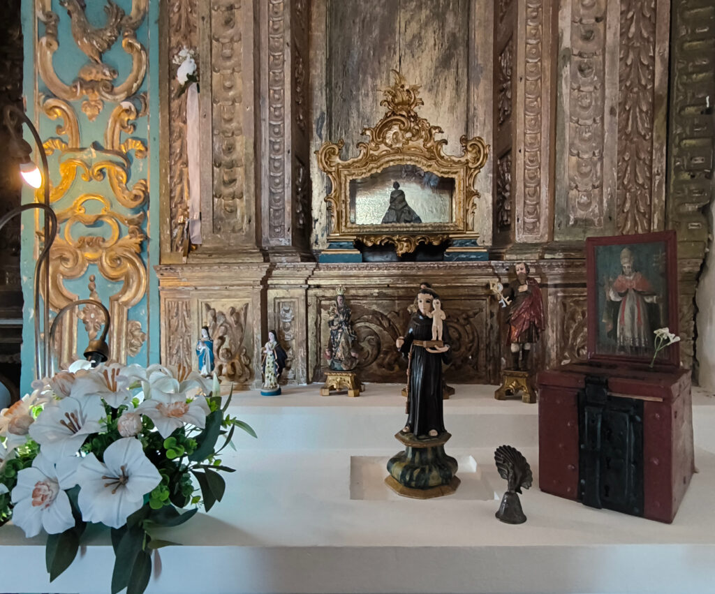 (de) Ich muss gestehen, ich habe wenig auf die Architektur geachtet, weil ich so überwältigt war von der Ausstattung und der Dekoration. Wir hatten zuvor eine Weile mit Joaquín, dem Einsiedler gesprochen, und – während er den Schlüssel holte, um uns die Tür zu öffnen – einen flüchtigen Blick in seine Werkstatt getan, die er sich in einem Flügel der Einsiedlerei eingerichtet hat. Voller Kram, aber wunderbar sortiert. Er scheint ein großer Sammler vor dem Herrn zu sein und alles aufzubewahren, was er für bewahrenswert erachtet. So ganz genau haben sich mir seine Kriterien nicht erschlossen. Aber ich bin mir sicher, dass er überzeugt ist, dass diese Kriterien richtig sind. Darüber kann man sicherlich diskutieren. Oder nicht. Wie über den Geschmack, der ja auch keine wirkliche Diskusion zuläßt. Ich frage mich nur, wie es ist, wenn irgendwann einmal irgendjemand aufgrund anderer Kriterien ein Projekt für diesen Ort und diese Räume erarbeitet und dieses Projekt durchgesetzt werden soll…..