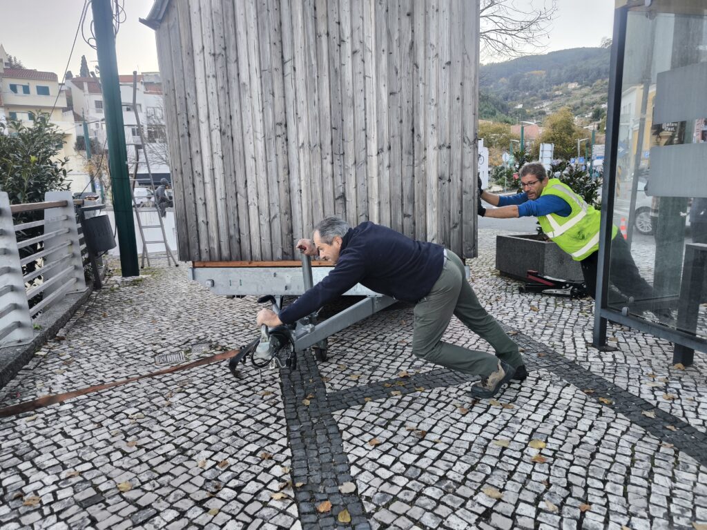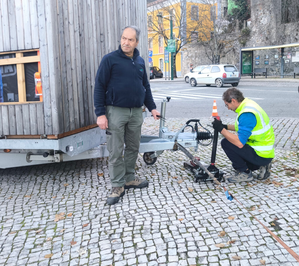 (es) En Monchique nos estaba esperando Ana Rita Mateus, Técnica Superior de Património Cultural, mi contacto directo con la Cámara Municipal, en la parada prevista para el KUKUmobil para ayudar en lo que hiciera falta. Se sumó la vereadora Maria Helena Albano Martiniano, para dar la bienvenida al KUKUmobil y ofrecerme todas las infraestructuras necesarias, y el electricista de la Cámara, para enganchar el KUKUmobil a la red eléctrica y darle luz y calor.