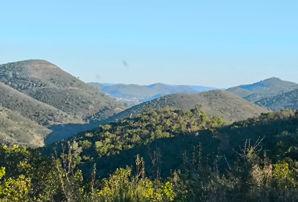(es) Durante tres horas avanzamos tranquilamente por el paisaje. Luego la cosa se puso emocionante, porque empezó la Sierra, y con ella las subidas y bajadas pronunciadas, y el camino sinuoso, bastante estrecho y a veces con una capa de asfalto digamos que „accidentado“ que llevaría al KUKUmobil a Monchique. Paolo tuvo que encargarse de eso. Yo tuve el privilegio de poder mirar por la ventana, admirar los primeros madroños grandes al borde de la carretera, distinguir las huellas de los incendios forestales de los últimos años y disfrutar de la impresionante vista de la Sierra.