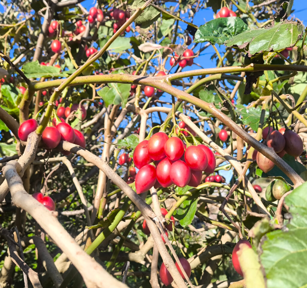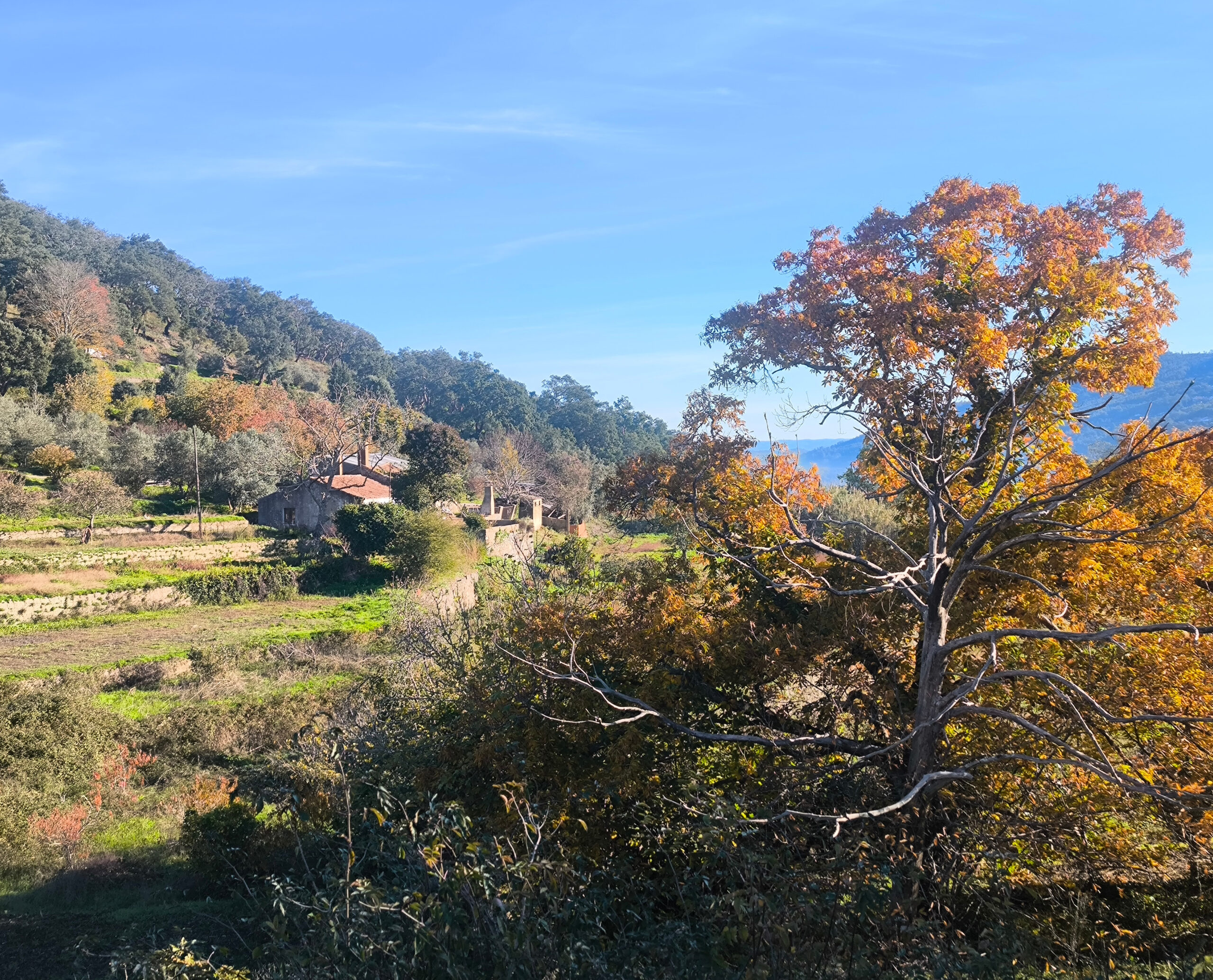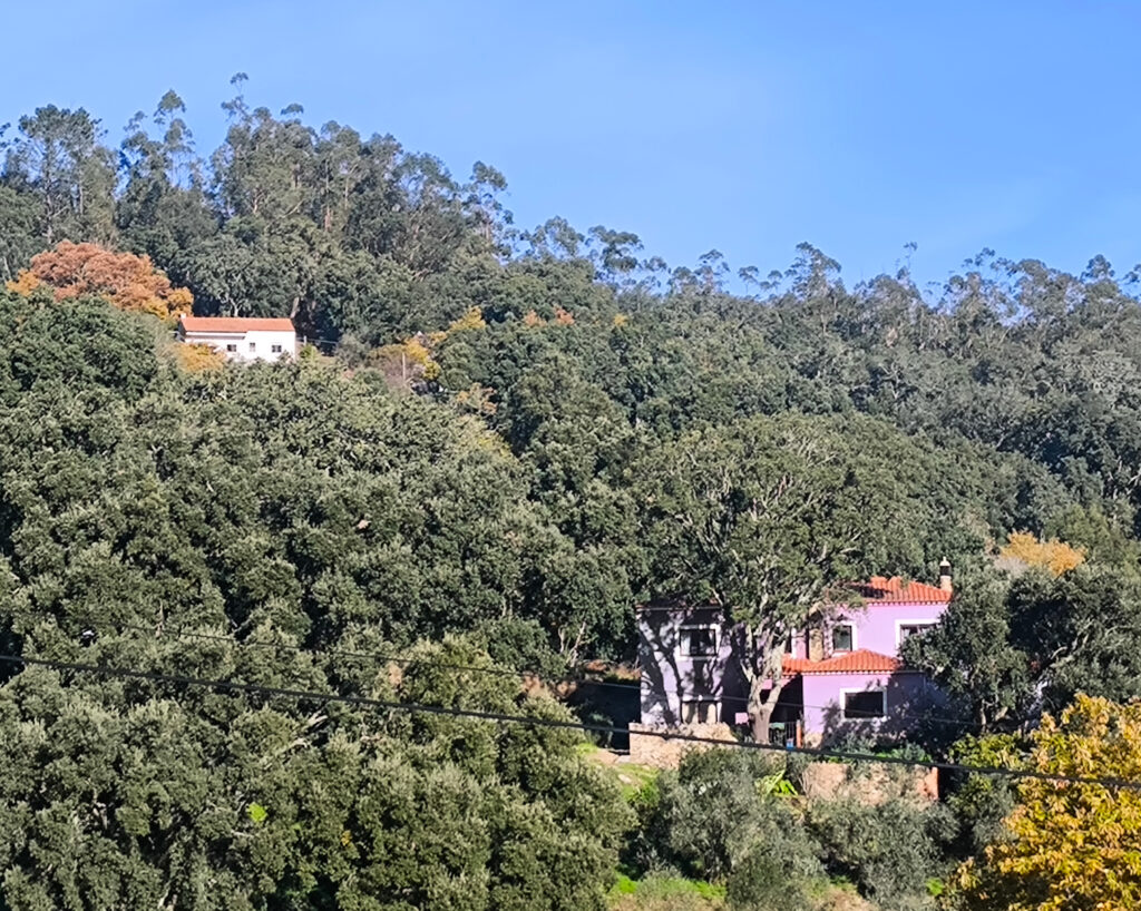 (es) No están en la lista de árboles singuares, pero siempre me impresionan, los alcornoques que también crecen aquí en el Algarve, en buena vecindad con nogales y castaños. Aprendí que su capa de corcho es más porosa que la de los alcornoques del Alentejo, lo que reduce ligeramente su valor de mercado, ya que el corcho es valioso cuando tiene la mayor densidad posible. También aprendí que el alcornoque es relativamente resistente a los incendios forestales (y los alcornoques de aquí podrían contarnos algo al respecto, si pudieran, porque en 2018 la Serra de Monchique sufrió lo que entonces era el mayor incendio forestal de Europa, quemando aproximadamente 27.000 hectáreas), siempre que no hayan sido descortezados recientemente. El estrés asociado a esto los hace vulnerables, y si la corteza recién formada no tiene al menos dos o tre años, aumenta considerablemente la probabilidad de que el árbol muere en un incendio forestal. De lo contrario, pierde sus hojas, pero las regenera al cabo de un tiempo. Por cierto, los alcornoques afectados por el incendio forestal se dejan tranquilos durante dos años. Sólo entonces se eliminará la corteza quemada y un nuevo cíclo puede comenzar.