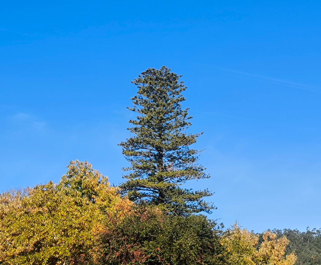(de) Auch meine zweite Wanderung hatte ein Thema: Einzigartige Baumexemplare in und um Monchique. Ihr wisst ja, wie sehr ich Bäume liebe, da konnte ich nicht widerstehen. Startpunkt unserer Wanderung war diesmal die Stadtgalerie „San Antonio“ und unser erster Baum eine der beiden Norfolktannen, die es in Monchique selbst gibt. Die erste steht im Stadtpark und hat eine besondere Geschichte, denn 1941 brach ihre Spitze bei einem Sturm. Seitdem wächst sie mit einer doppelten Spitze weiter. Übrigens, es wird hier immer mal wieder um „invasive Pflanzenarten“ gehen, ihr werdet es weiter unten merken. Das sind all diejenigen Pflanzen- und Tierarten, die aus anderen Gegenden der Welt stammen und durch ihre schnelle Verbreitung die einheimische Flora und Fauna verdrängen. Hier die EU-Liste, die ich auf der NABU-Seite gefunden habe…..
