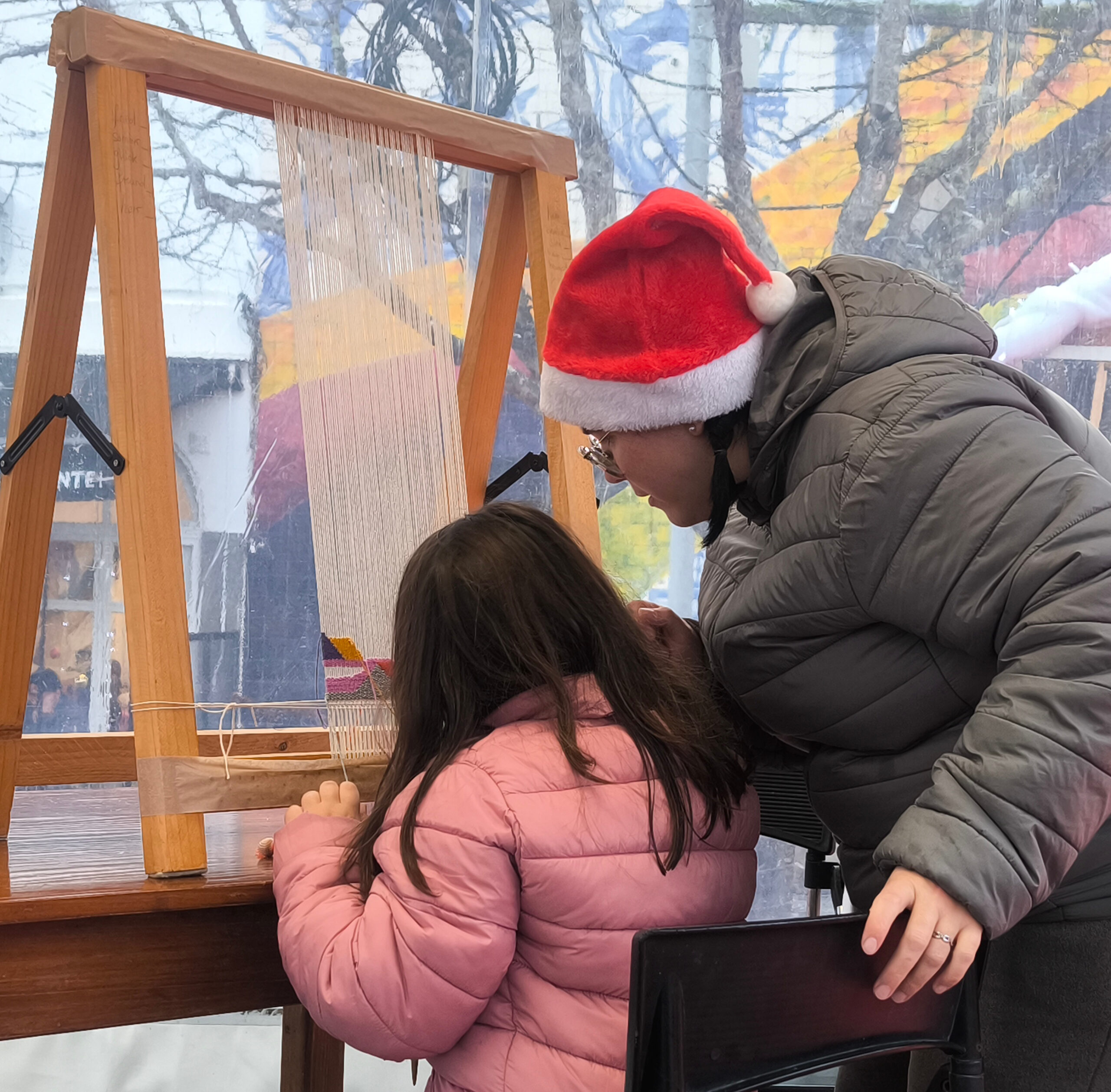 (es) Aunque el mercado navideño ya se ha desmontado, quería dar las GRACIAS a todos los que se atrevieron a entrar en la carpa para coger una canilla y probar a tejer con hilos de colores, especialmente a Dinis, Diana, Marina y Aurora.