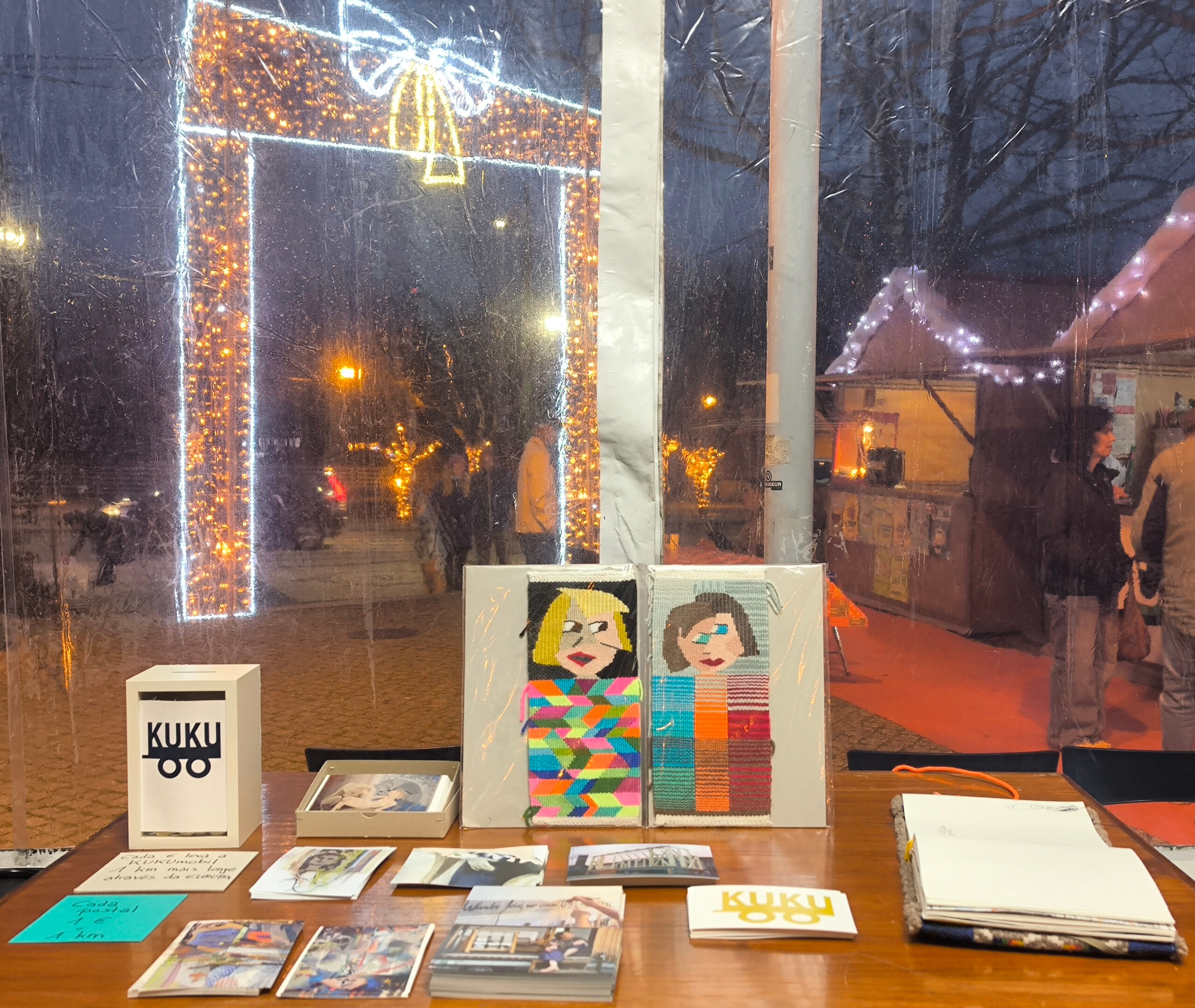 (de) Inzwischen ist der Weihnachtsmarkt zwar schon abgebaut, aber ich wollte mich trotzdem kurz bei allen bedanken, die sich in das Zelt gewagt haben, um selbst einmal eine Gobelinpinne in die Hand zu nehmen und mit bunten Fäden Formen zu weben, allen vorn Dinis, Diana, Marina und Aurora.