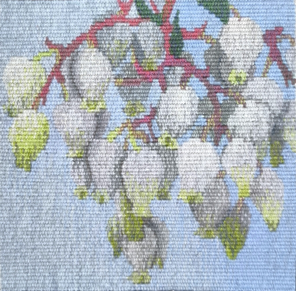 (es) No sé si podré tejer en los próximos días, así que es posible que este sea mi último tapiz de 2025. ¿Habéis echado un vistazo a la página web de KUKUmobil? Ya hay un total de 122. Victor las ha reordenado en la galería para que los nuevos aparezcan siempre en la parte superior y no tengáis que desplazaros hasta abajo. Y hay hashtags para agruparlos y ahora también puntos rojos para los tapices que ya están en casa de otras personas, y puntos morados para los tapices-esbozos que actualmente forman el núcleo de mi exposición POP-UP.