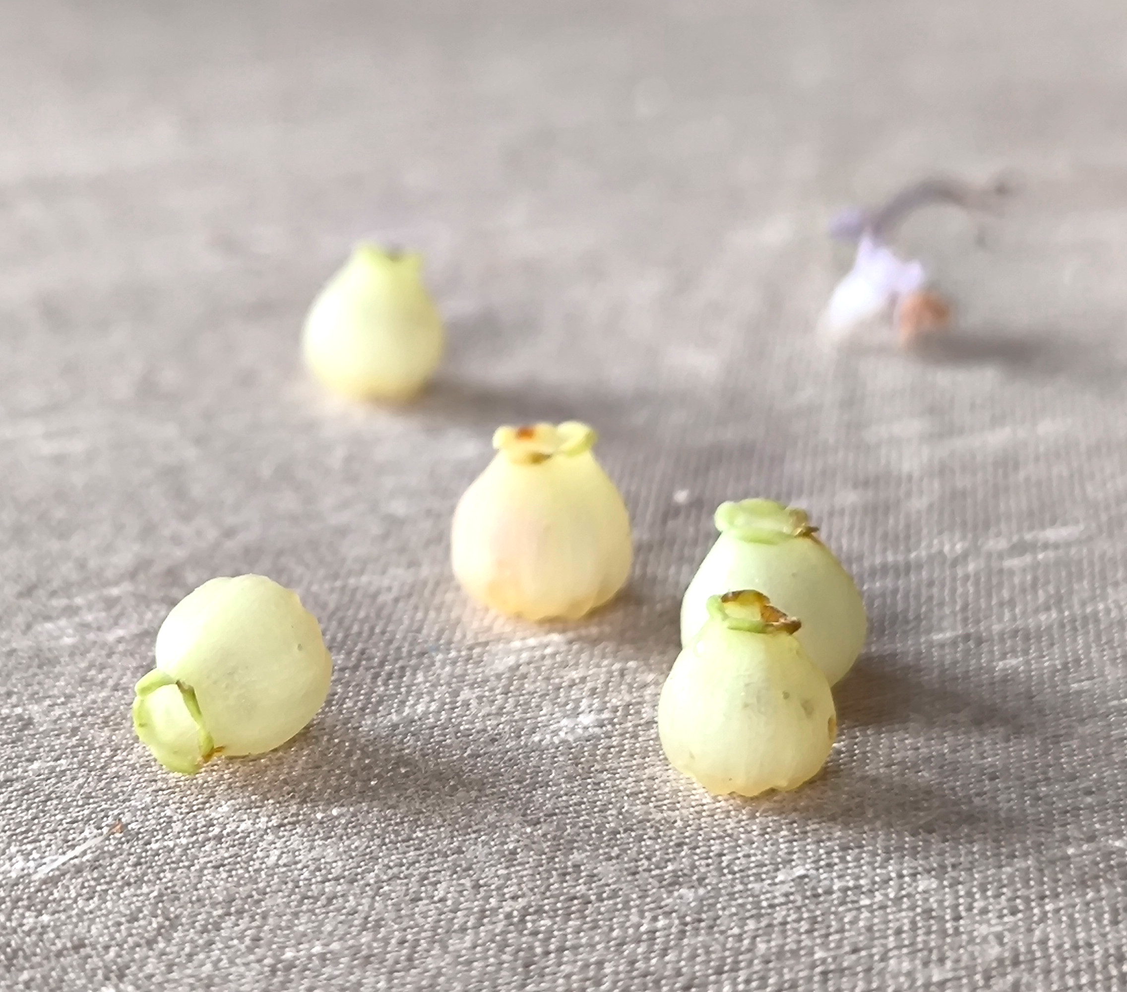 Era EL momento para el último laberinto de este año. Así que desarmé el ramo con tanto amor y cuidado como cuando lo armé, y cuidadosamente arranqué las flores del madroño, las hojas del eucalipto y del olivo, las bayas de las ramas, que ni siquiera sé cómo se llaman, y he tomado la mesa como medida para colocar allí mi material de manera que se creara un pequeño laberinto univiario.