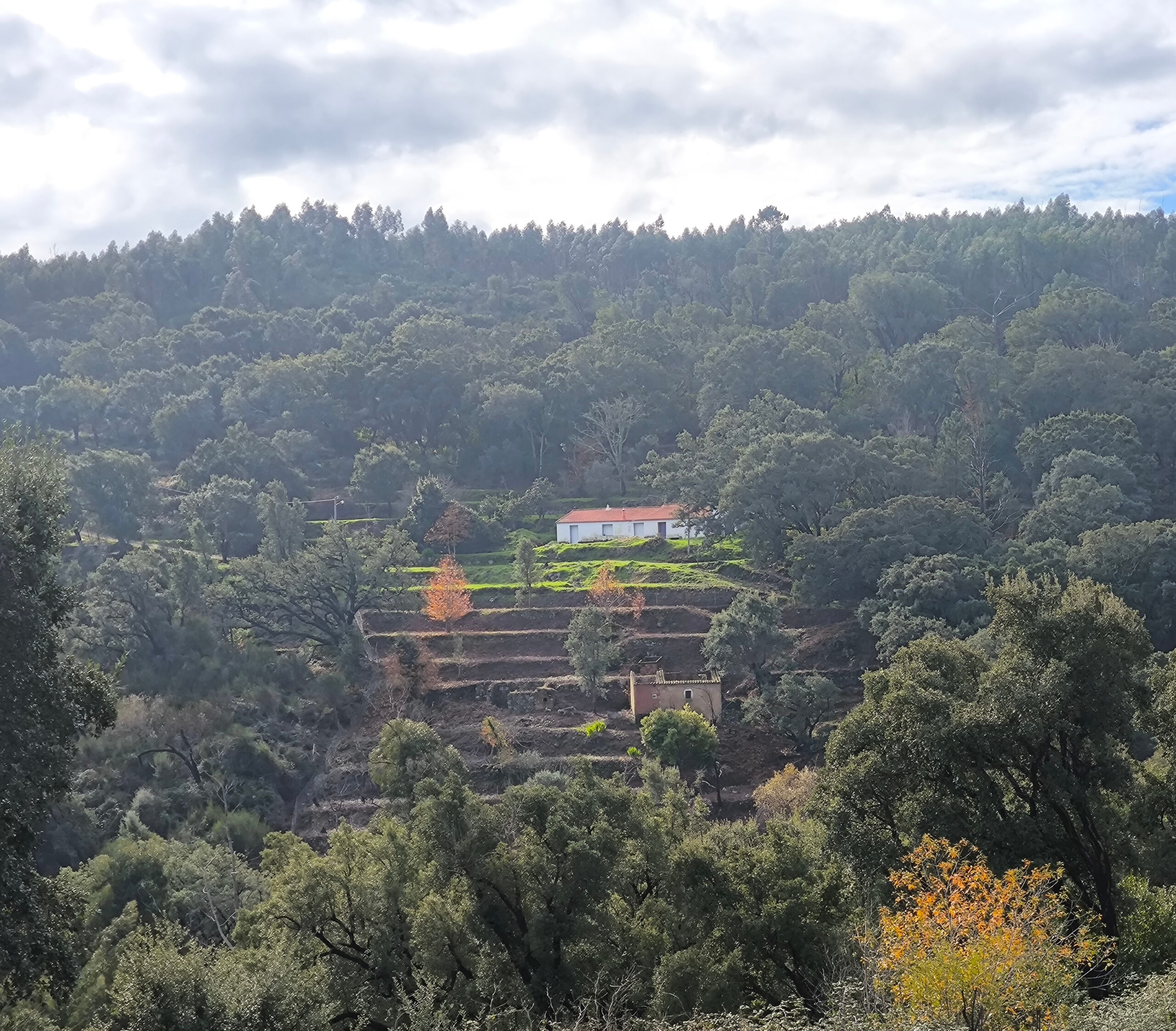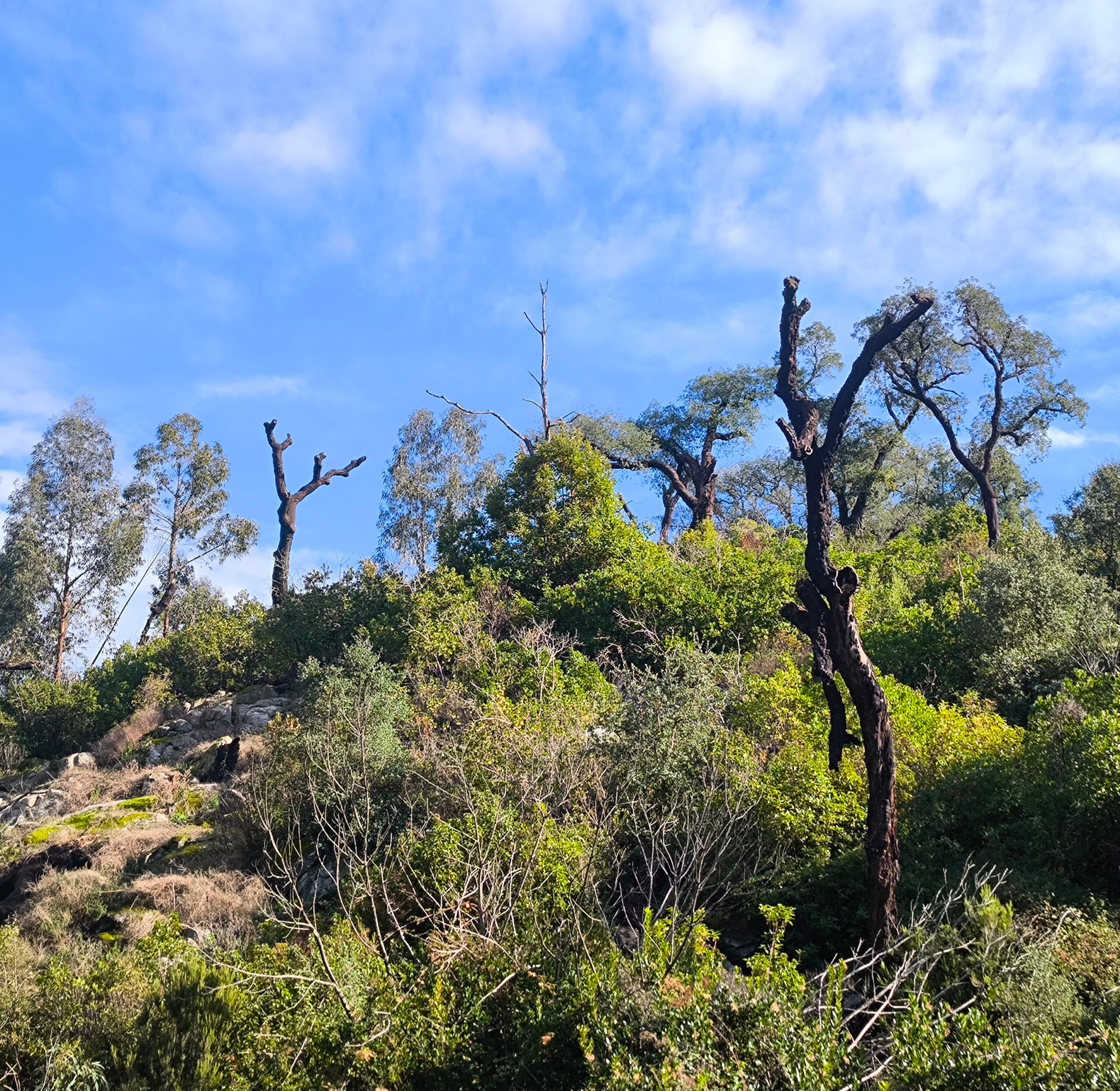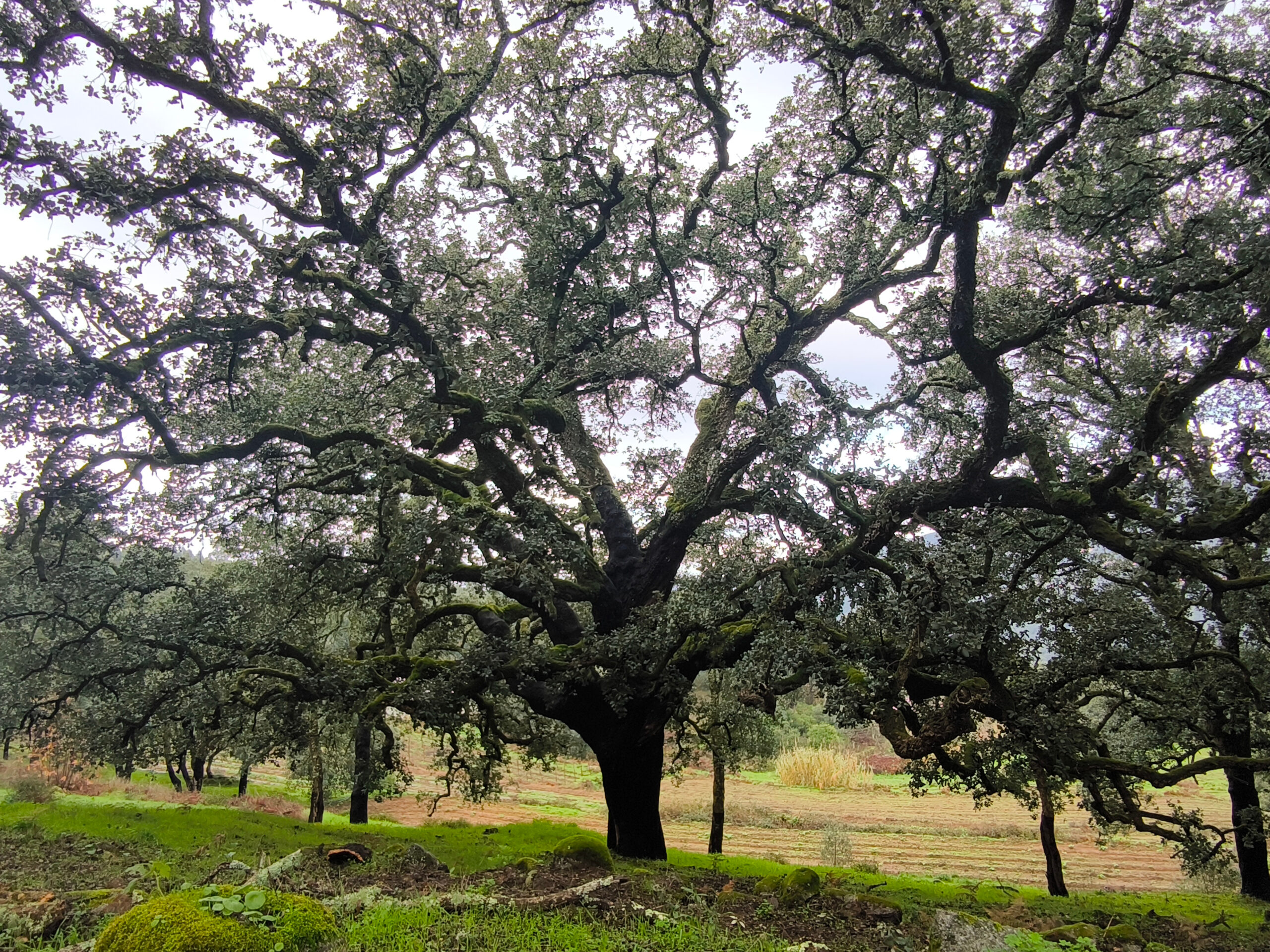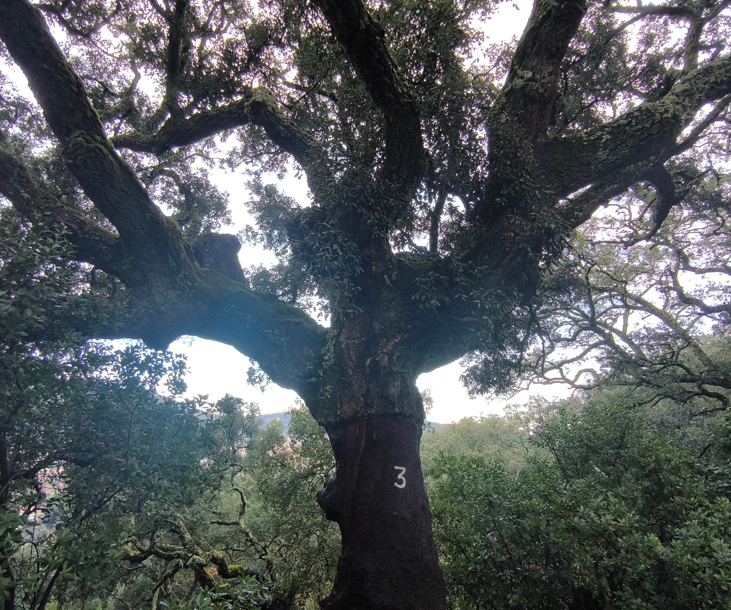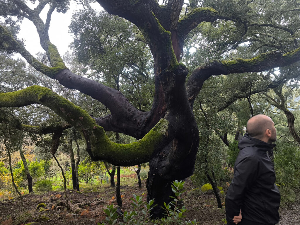 (de) Der Aufstieg ist nicht besonders lang, ungefähr 3 km. Dafür aber extrem interessant, weil es durch einen Wald voller alter, und sehr fotogener Korkeichenexemplar führt. Ich kann mich einfach nicht satt sehen. Jeder Baum hat Persönlichkeit. Wie schon bei den alten Kastanien, denen ich in den galicischen Wäldern begegnet bin, muss ich an die Ents aus dem Herrn der Ringe denken. Dass sie als Hüter des Waldes und Überlebende kostbare Erfahrungen für die Waldgemeinschaft aufbewahren, scheint mir naheliegend.