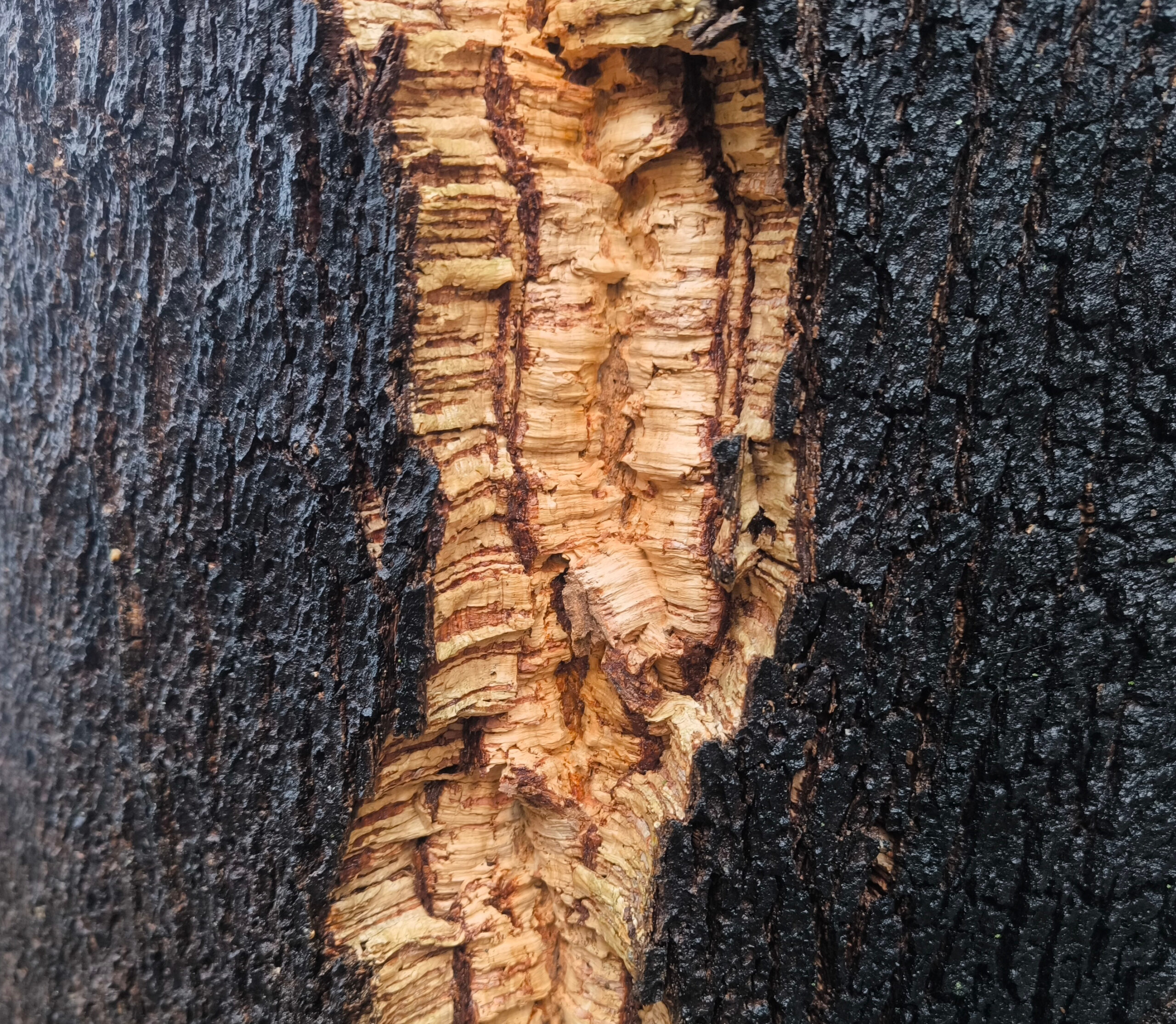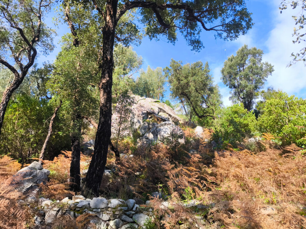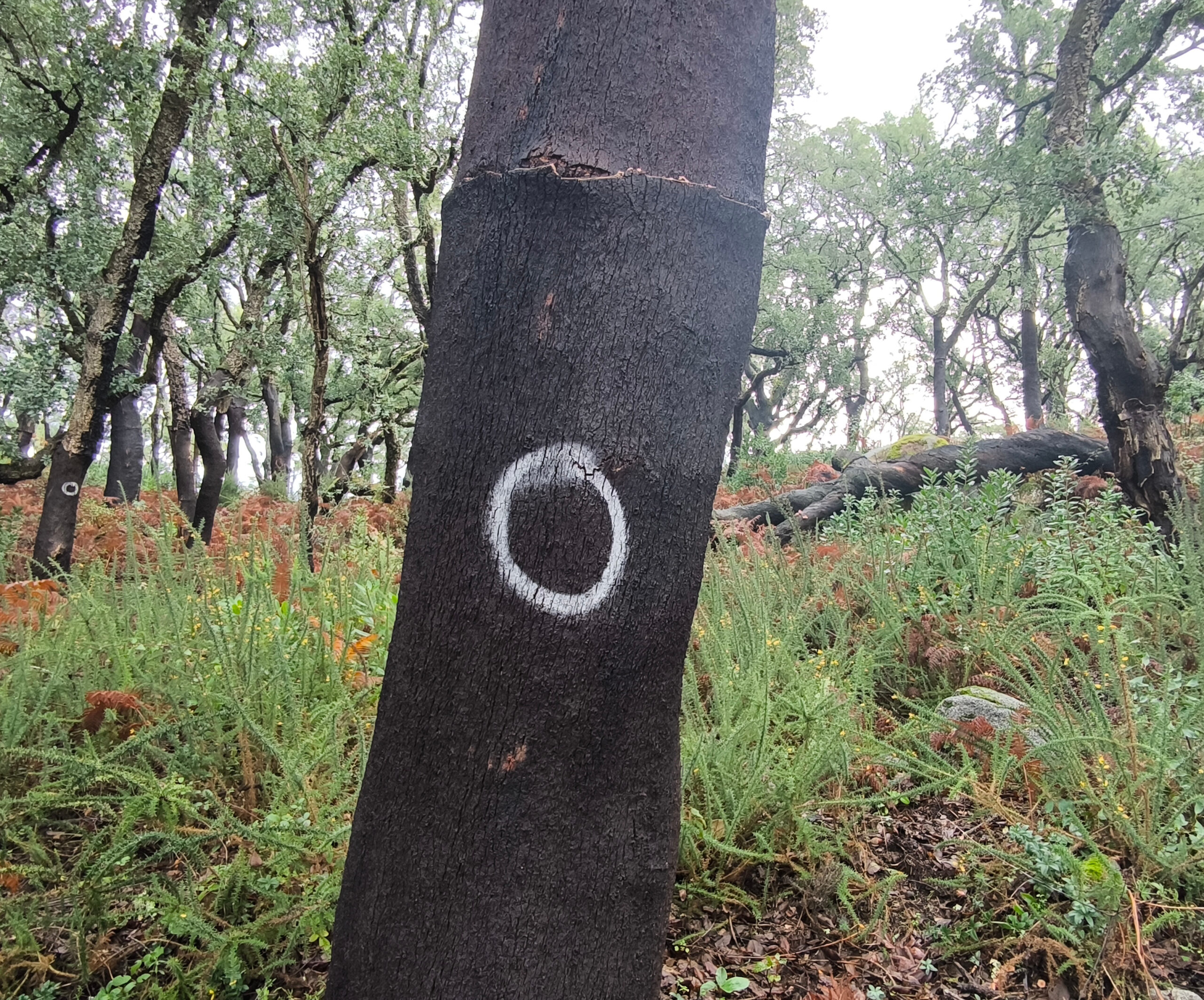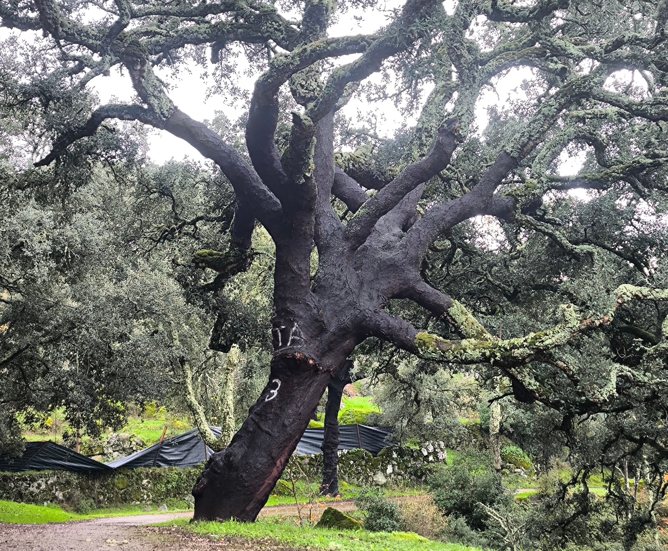 (es) La subida no es especialmente larga, unos 3 km. Sin embargo, es muy interesante, ya que atraviesa un bosque lleno de viejos y muy fotogénicos ejemplares de alcornoques. No me canso de contemplarlos. Cada árbol tiene su propia personalidad. Al igual que con los viejos castaños que encontré en los bosques gallegos, me recuerdan a los Ents de El Señor de los Anillos. Me parece tan obvio que, como guardianes del bosque y supervivientes, conservan experiencias valiosas para la comunidad forestal.
