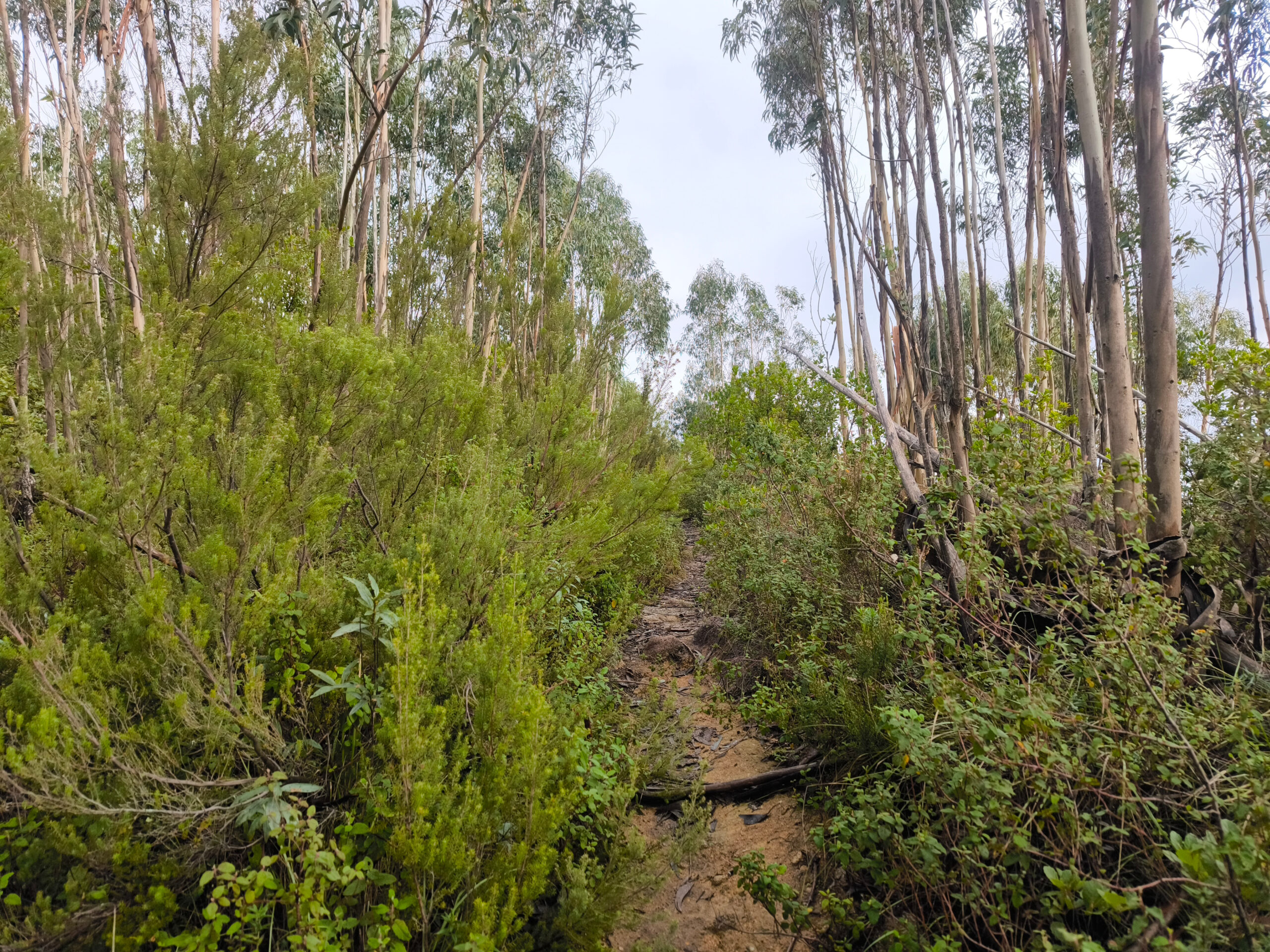 (de) Weiter oben kommen dann Eukalyptuswälder dazu. Jetzt nicht so prickelnd, aber sie sind nun mal da und reichen fast bis an die Spitz der Picota.
