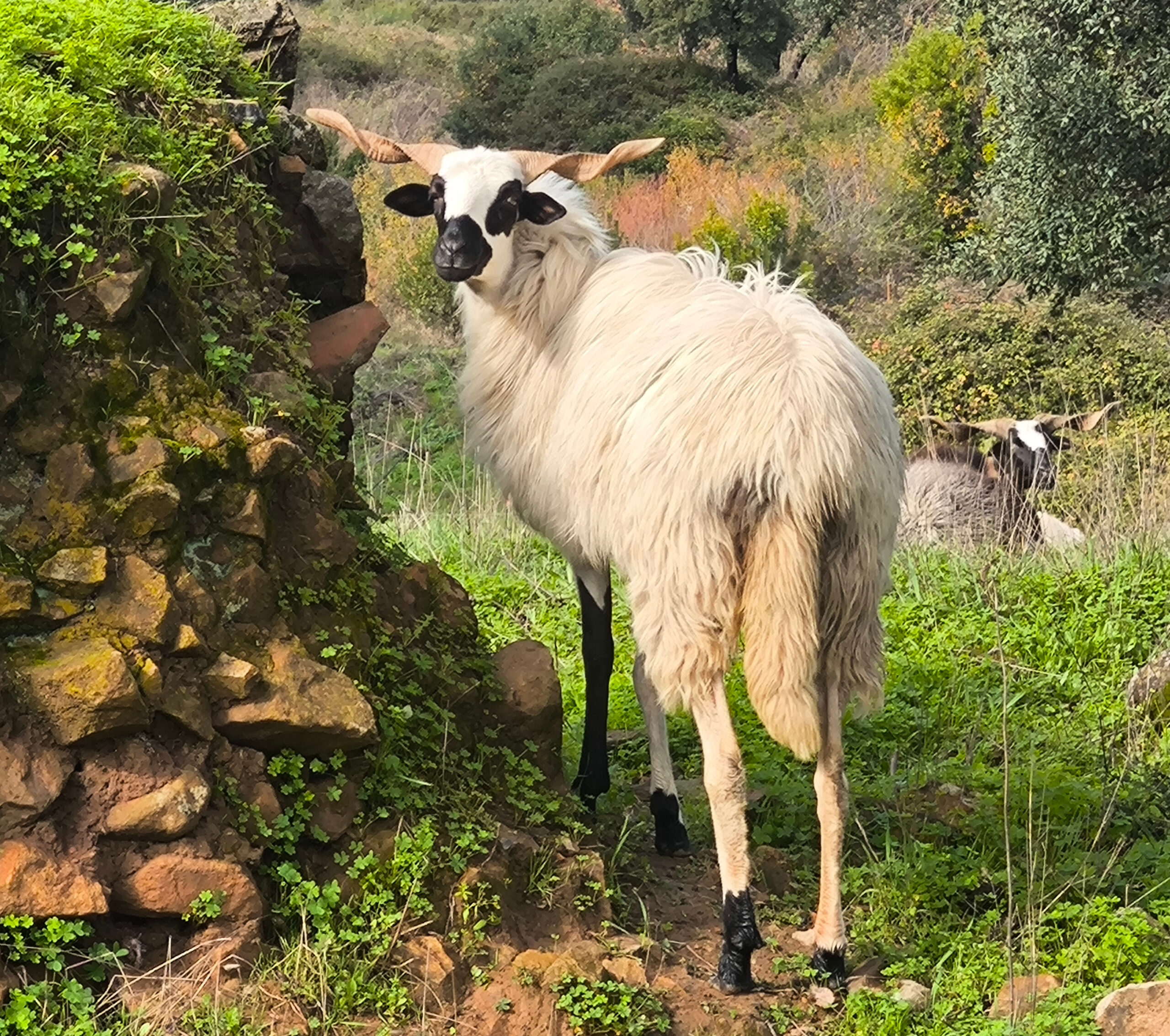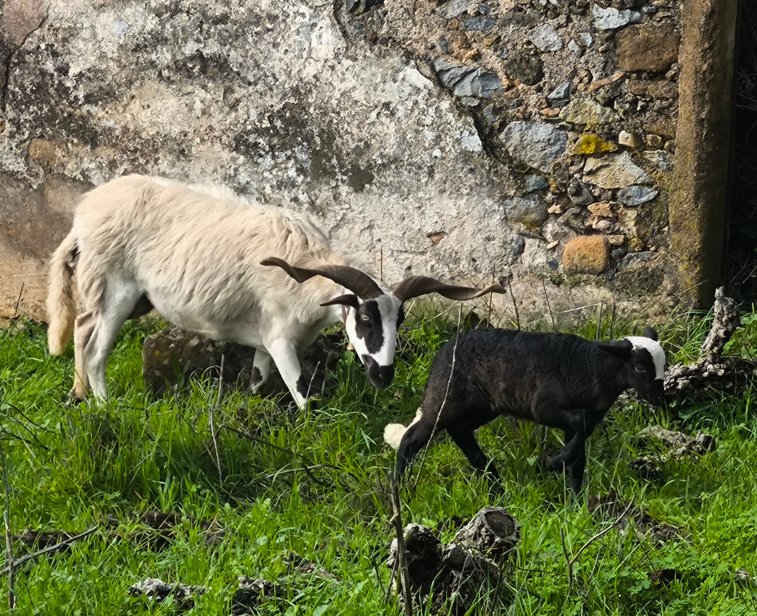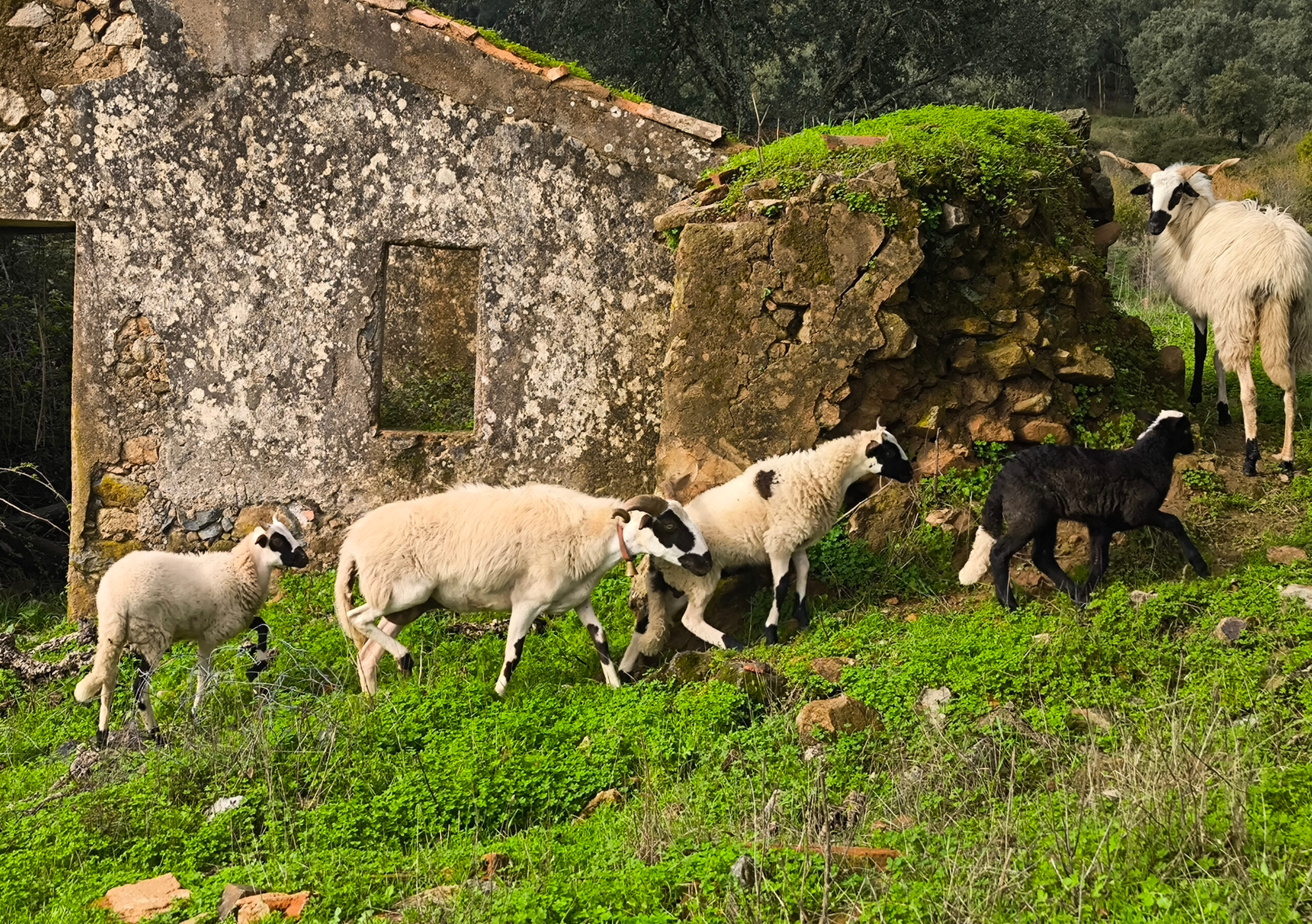 (es) … un encuentro especial: un pequeño rebaño de las típicas ovejas del Algarve. Había oído hablar de esta raza ovina autóctona en la exposición sobre la lana en Loulé, a la que había ido junto con Carlos, Isabel y Margarida, pero aún no la había visto «en vivo» y me acerqué para asegurarme…