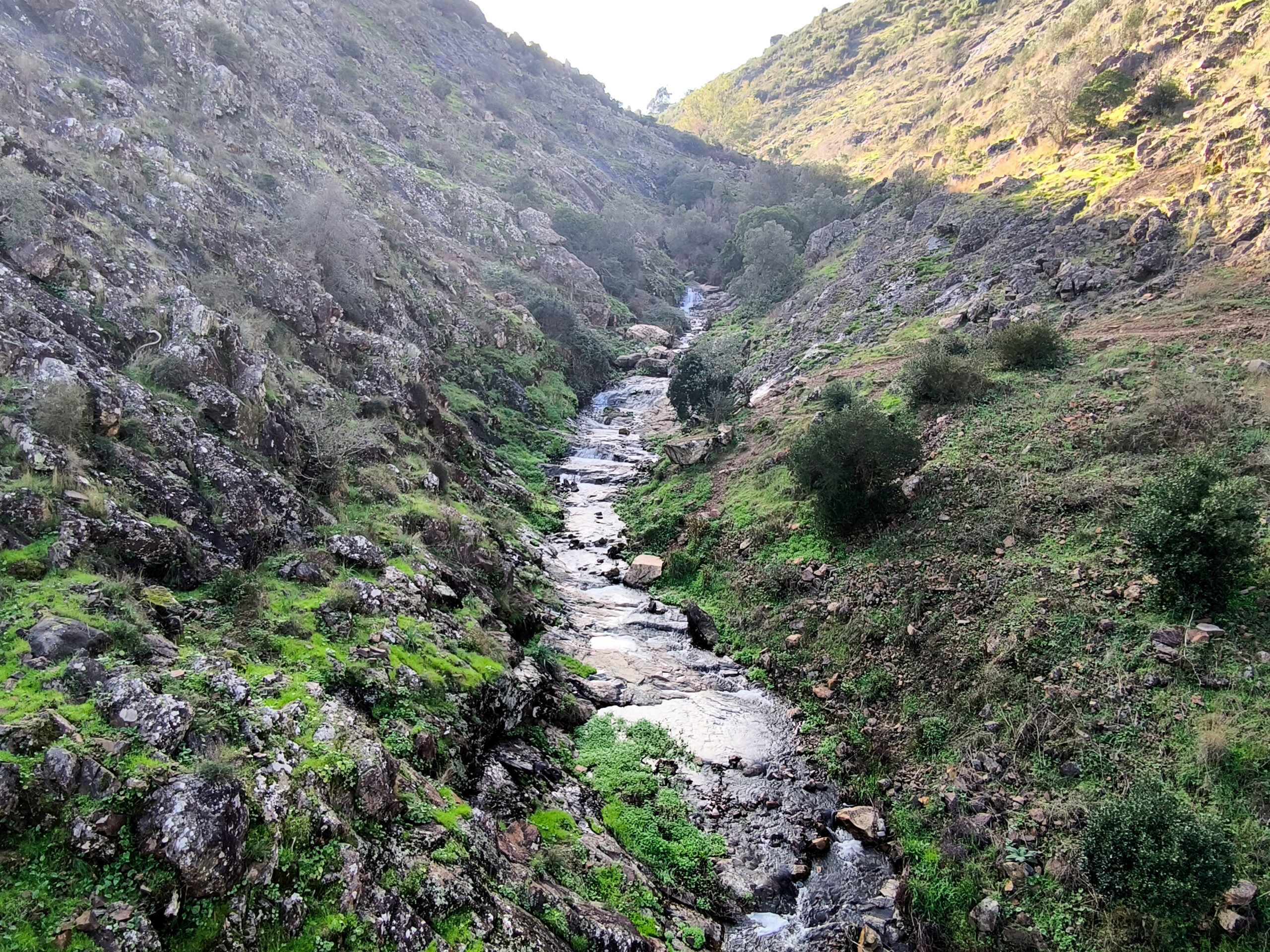 (es) Y desde allí regresamos a paso ligero a Monchique. No es que nos hubiéramos entretenido muuuucho, pero se nos acababa el tiempo y queríamos estar de vuelta en el pueblo antes de que anocheciera. El cruce del río nos vino como anillo al dedo 🙁 ……. Nos quedamos un rato indecisos delante de él, pensando si volver atrás podría ser una opción. Si la subida hasta la carretera no hubiera sido tan empinada, quizá habría estado de acuerdo. Así, me pareció menos laborioso quitarme los zapatos y vadear el río. ¡¡¡Al estilo Kneipp!!!