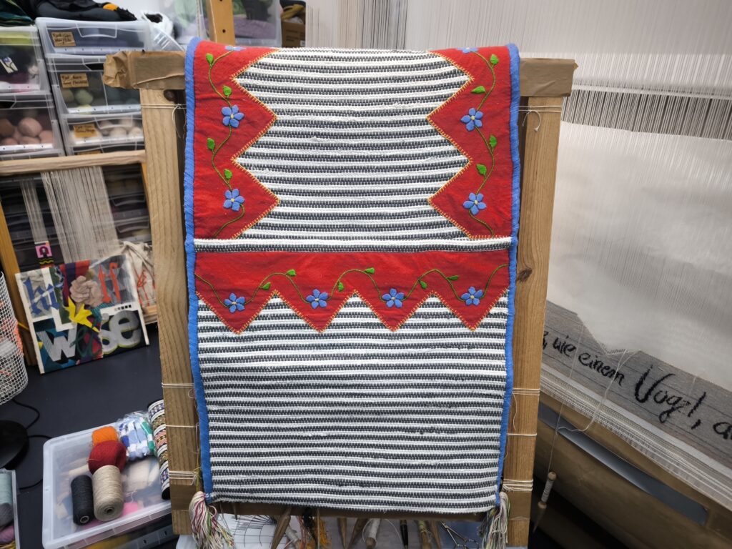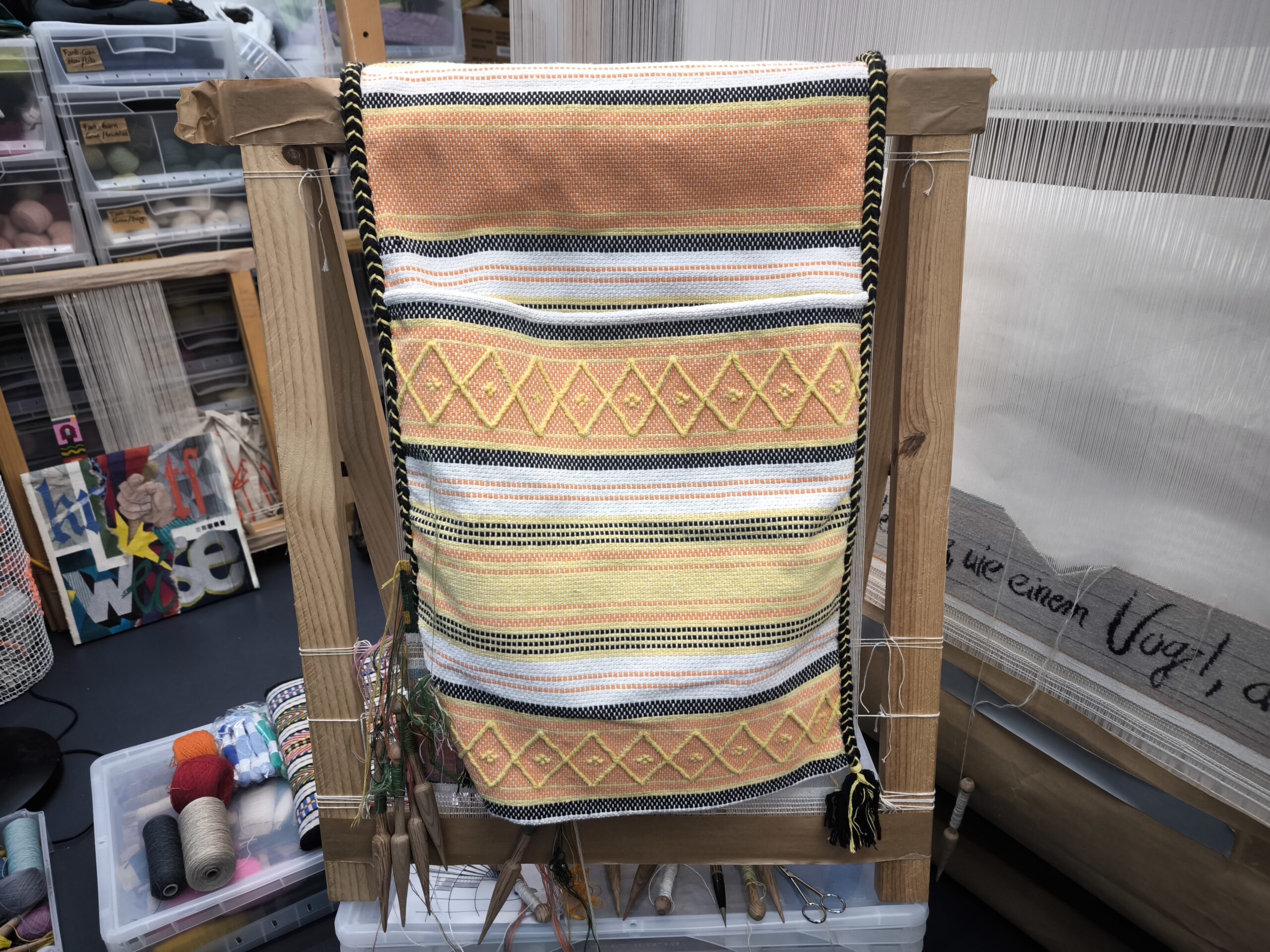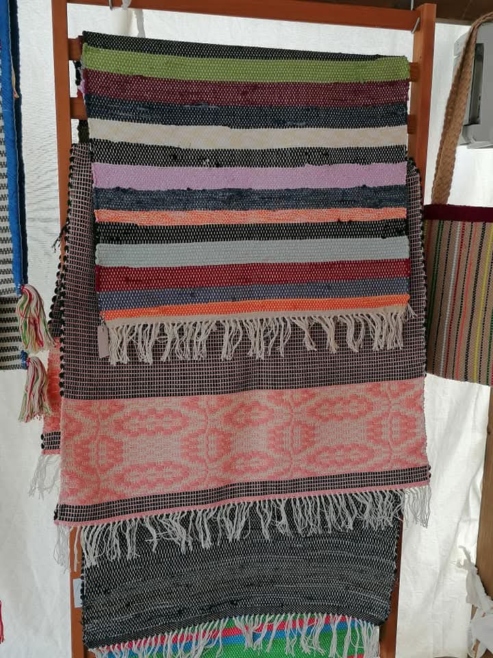 (de) Sie webt, wenn ihre Arbeit als Krankenschwester es zuläßt. Und sie hat mir einige ihrer Arbeiten gezeigt. In einer der Mühlen, die hier in der Umgebung zu besichtigen sind, hingen einige alte gewebte Satteltaschen. Ich hab vor kurzem erst gelernt, dass die Strasse, die Alferce mit Monchique verbindet, erst 1951 gebaut wurde. Das ist noch gar nicht soooo lange her. Vorher war der Esel eins der Haupttransportmittel. Also eigentlich kein Wunder, dass es in jedem Haushalt Satteltaschen gab… und sicherlich gibt? Bestimmt hat es schon eine Ausstellung dazu gegeben. Jedenfalls liebe ich sie. Und Suzel hat einige sehr schöne gemacht, auf die ich ein Auge geworfen habe…….