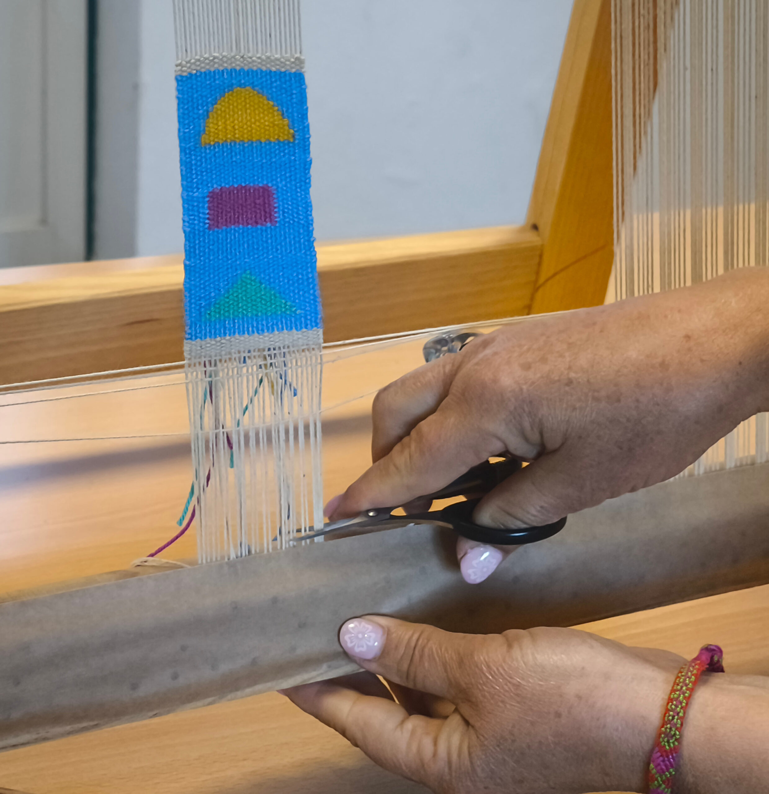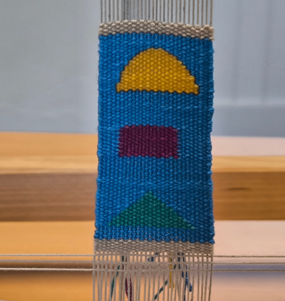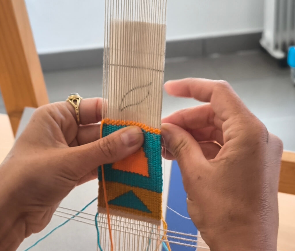 (es) Es un primer pequeño paso, una toma de contacto, una inmersión en el mundo del telar, el control de la tensión y la relajación, la práctica del trabajo bilateral, la atención y la concentración……