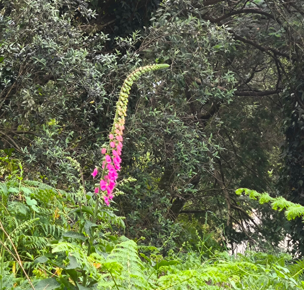 Me alegré muchísimo al ver la primera dedalera que descubrí ayer, y aún más al ver la Rosa-Albardeira, que no se encuentra a menudo por aquí, al igual que el rododendro, el que crece de forma silvestre, no el de las macetas, que me hace compañía fuera del KUKUmobil. El rododendro es uno de los habitantes del bosque laurisilva, que hoy en día solo se encuentra en los archipiélagos que pertenecen a Macaronesia, especialmente en los archipiélagos portugueses de las Azores y Madeira, en las Islas Canarias españolas, así como en pequeños y raros enclaves de la costa de Mauritania… y, muy pequeño pero bonito, en Monchique, justo antes de la cima del Foia. El rododendro de mi foto se „escapó“. Crece en la ladera oeste de la Picota.