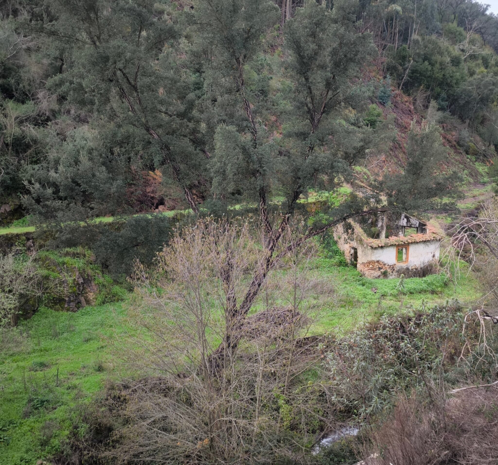 Belohnt wird man dafür mit drei Wasserläufe hintereinander und der dritte war der Cerca, der direkt neben der dort entlangführenden Strasse, auf der der Wanderweg entlangführt, über einen hohen Felsen als Wasserfall „do Chilrao“ ca. 15 Meter in die Tiefe fällt. Der Cerca schlängelt sich übrigens von hier aus bins nach Aljezur, wo er im Meer mündet.