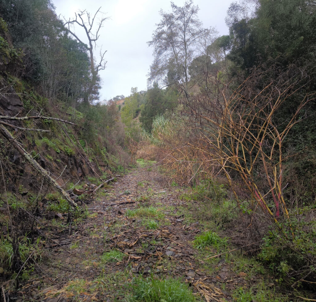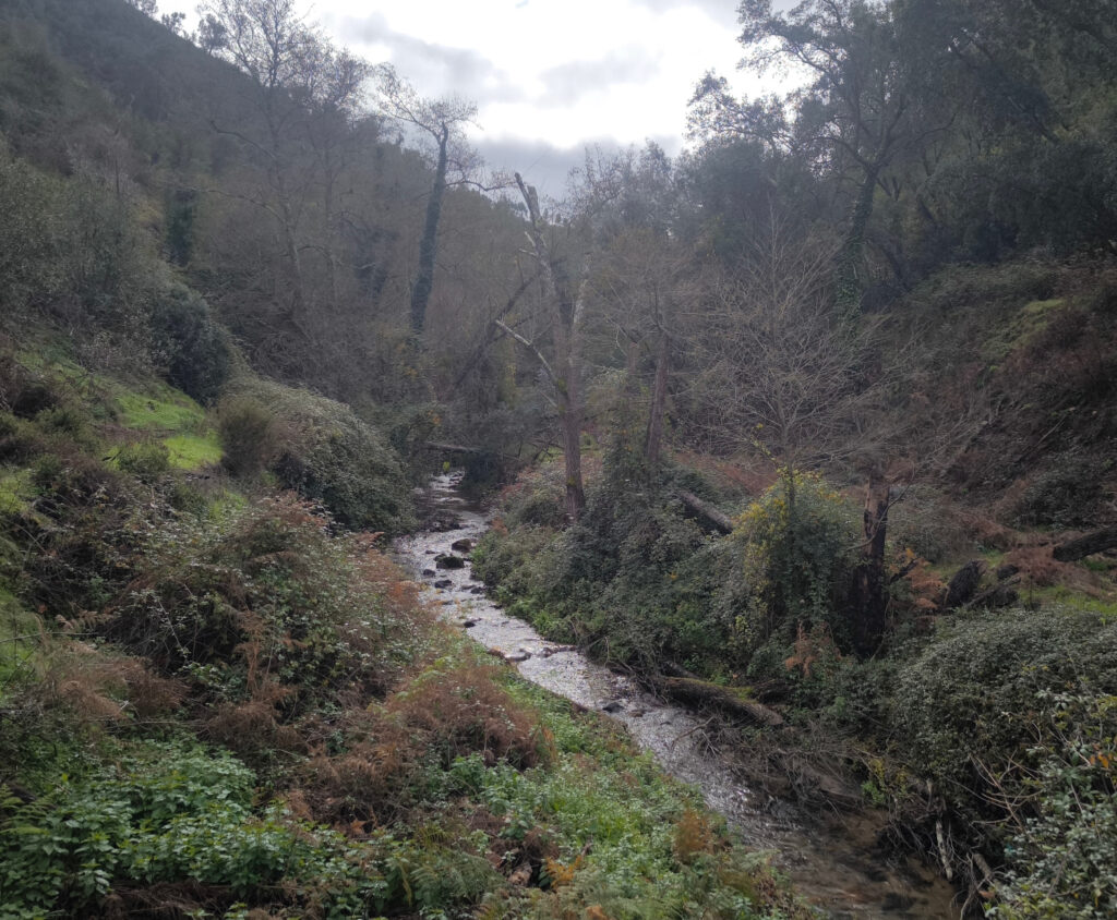 (de) A lo largo de toda la ruta me esperaba una alegre sucesión de cascadas, alcornoques aislados entre un ejército de eucaliptos, antiguos cultivos en terrazas e impresionantes vistas… y, de vez en cuando, la entrada a una cueva. Es un mundo tan ajeno para mí que solo eché un vistazo rápido. Por completar la información. En una búsqueda rápida no he encontrado información sobre si existe algún club, asociación o similar que explore estas cuevas con más detalle. Tampoco sé qué profundidad tienen. Quizás tan solo sirvan de refugio a algún animal. Mi sed de riesgo y mi curiosidad no son lo suficientemente grandes como para seguir investigando. Por poder se puede, pero tampóco hay que meter las narices en todas partes.